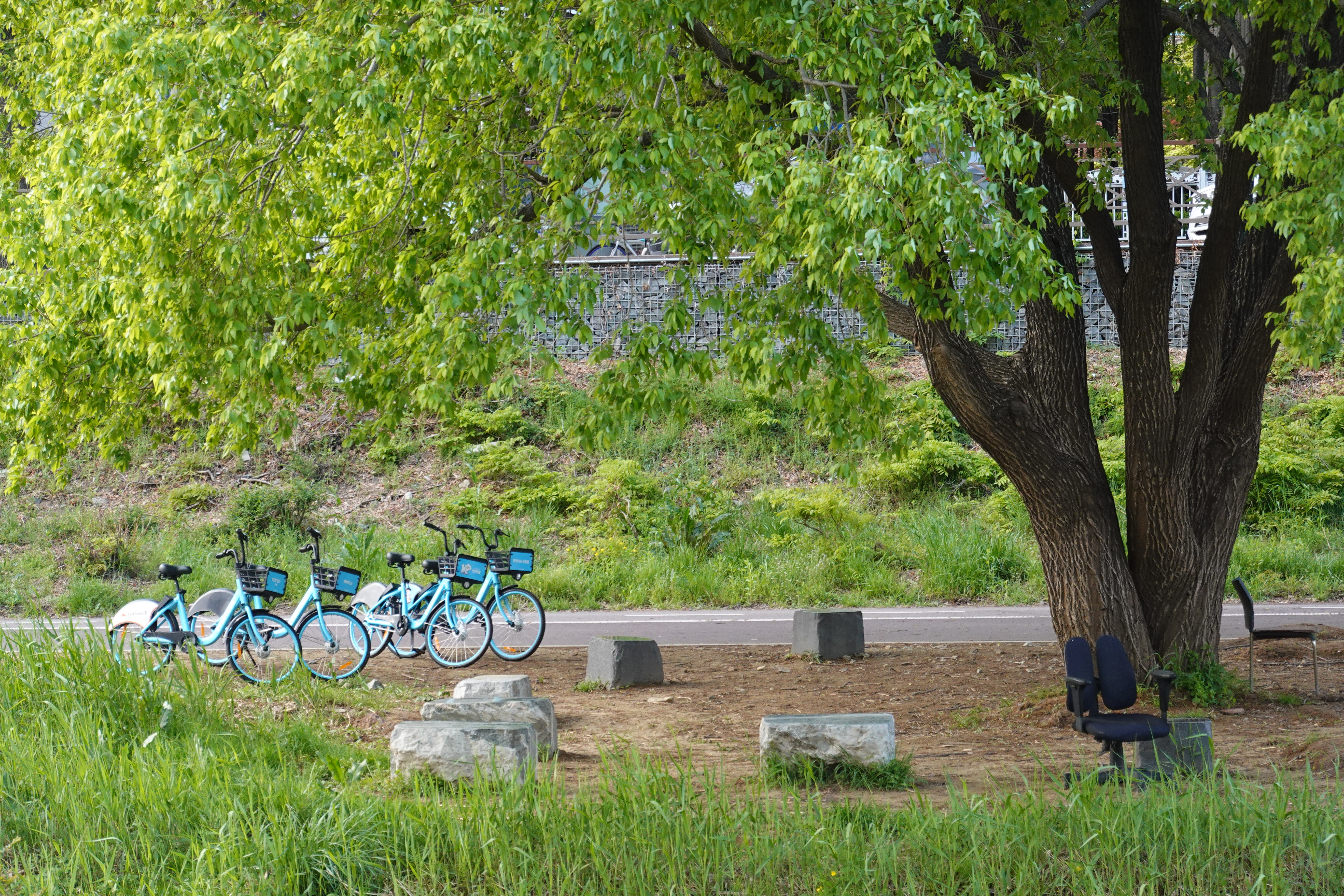 2023.04.18/ #도시기록 #나무들 #안양 #학의천/ 지난해 여름 엄청난 물난리를견뎌내고, 이후 치수대책을 이유로 천변에서 잘 자라온 굵은 나무들이 베어지고, 짤려져 사라졌음에도 살아남은 학의천 나무들. 삭막해져 버린 하천에 푸릇푸릇 청량감을 만들어주고, 점점 무더워지는 날씨에 시원한 바람과 그늘을 줄것이기에 너무 고맙고 귀한 존재들입니다.