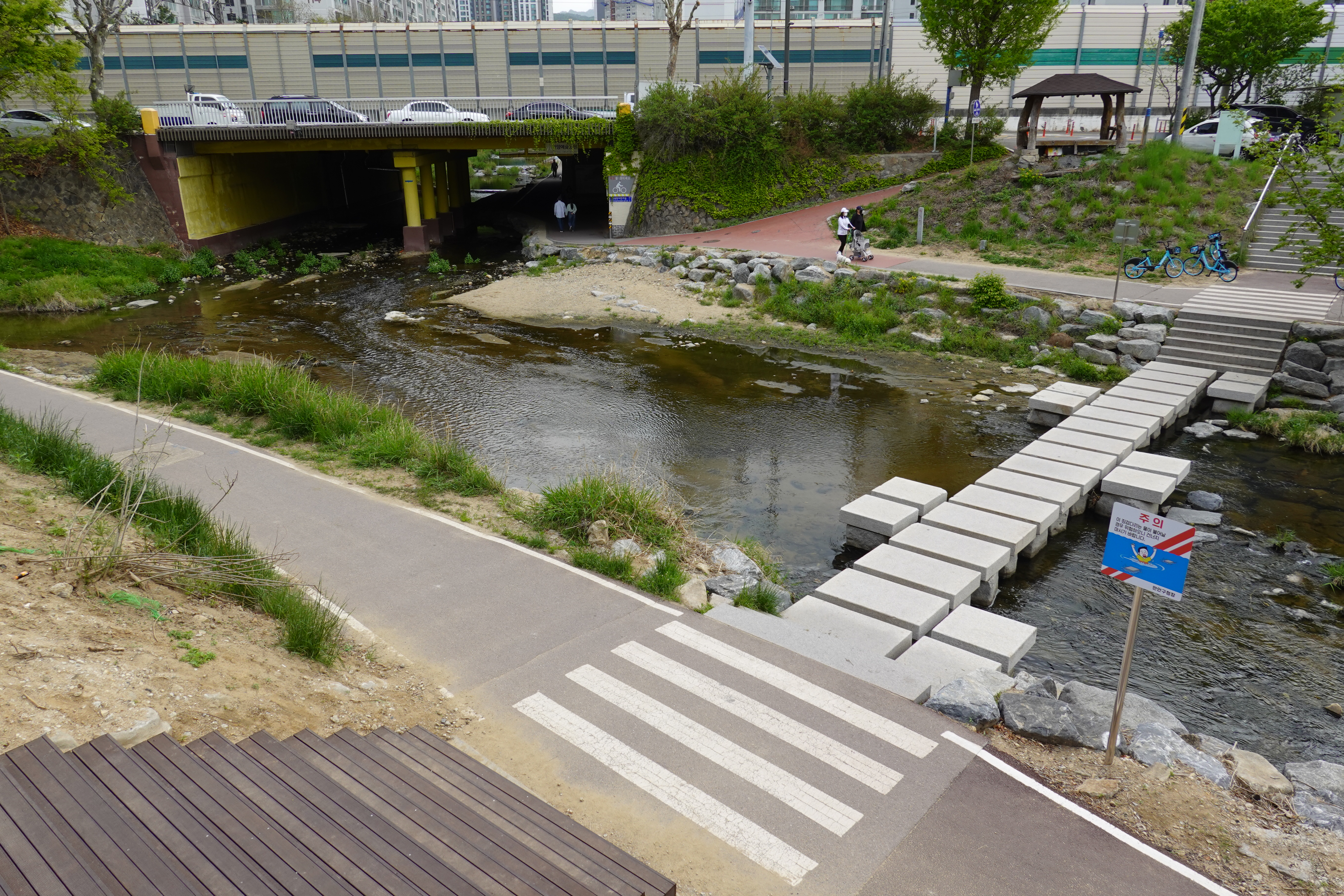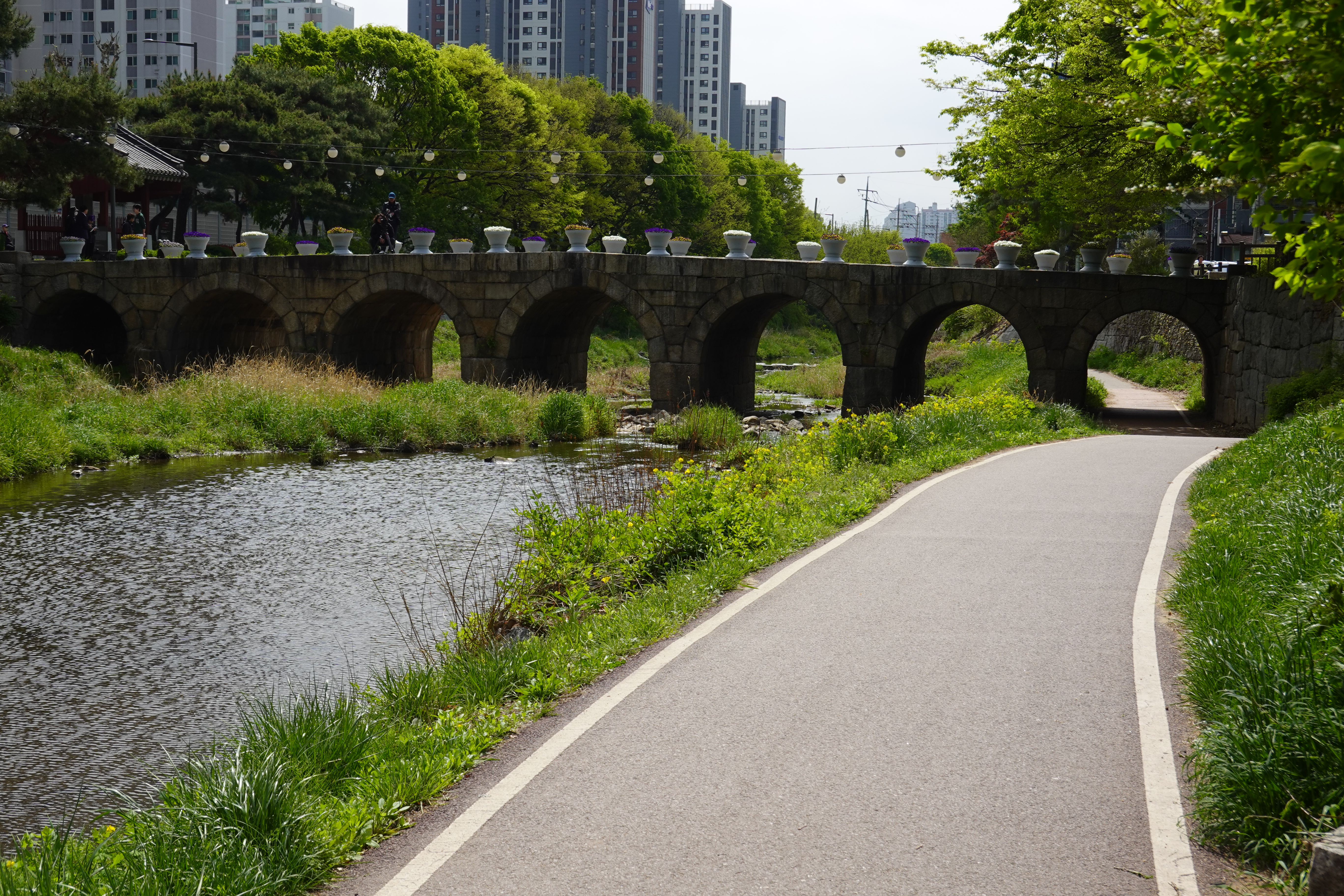 2022.04.21/ #도시기록 #석수2동 #안양 #옛안양영화촬영소 #무림아파트 #현대아파트 #만안교 #삼막천/ 만안교와 옛 안양영화촬영소가 있던 곳. 도시재생사업과 하천 산책로 정비로 골목 텃밭과 골목마술관 등 예쁜 골목과 걷기 좋은 나무데크길이 생긴곳, 교통 편리하고, 문화재와 하천이 있으며 조용하고 아늑한 살기 좋은 동네로 대규모 아파트단지 부럽지 않다.