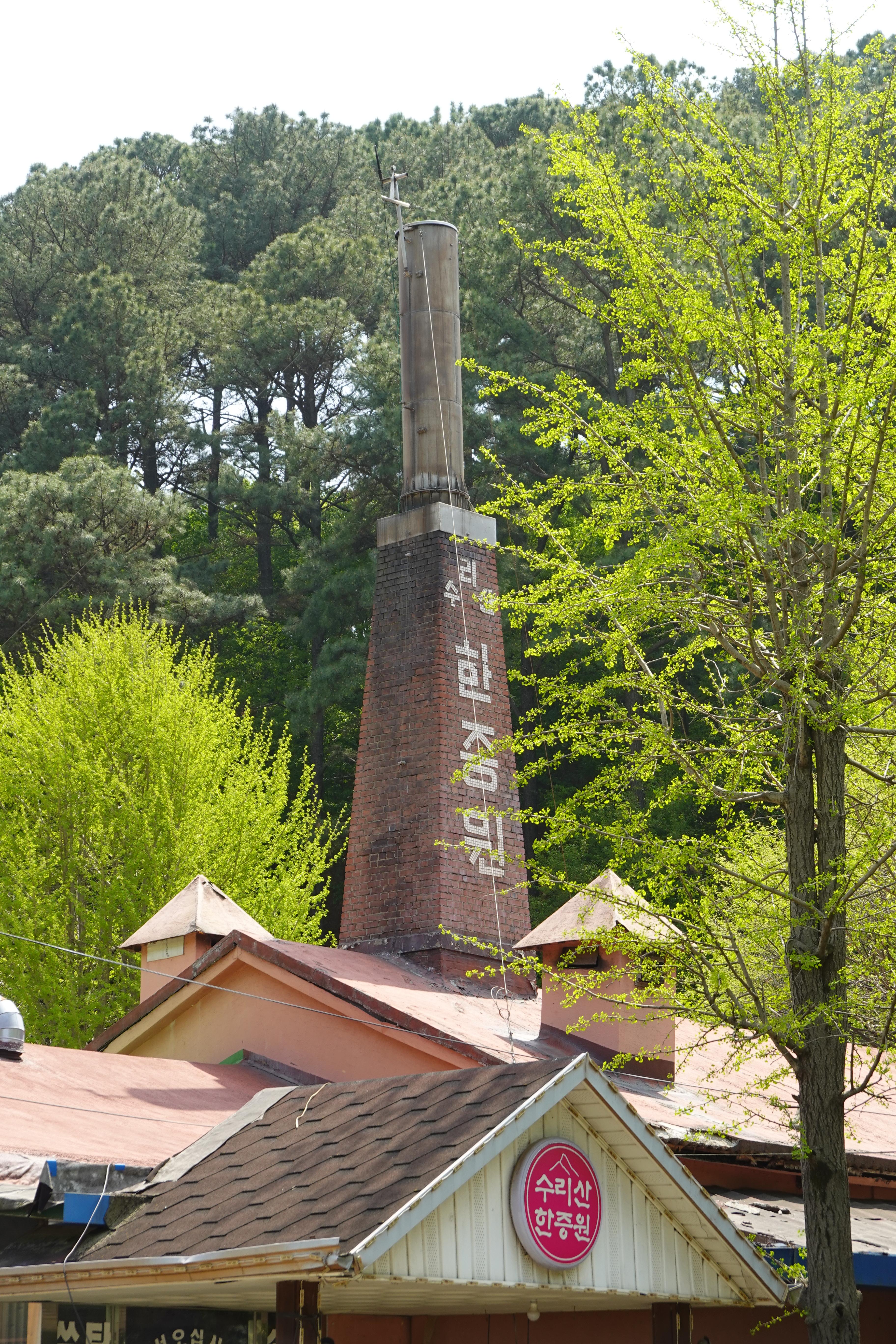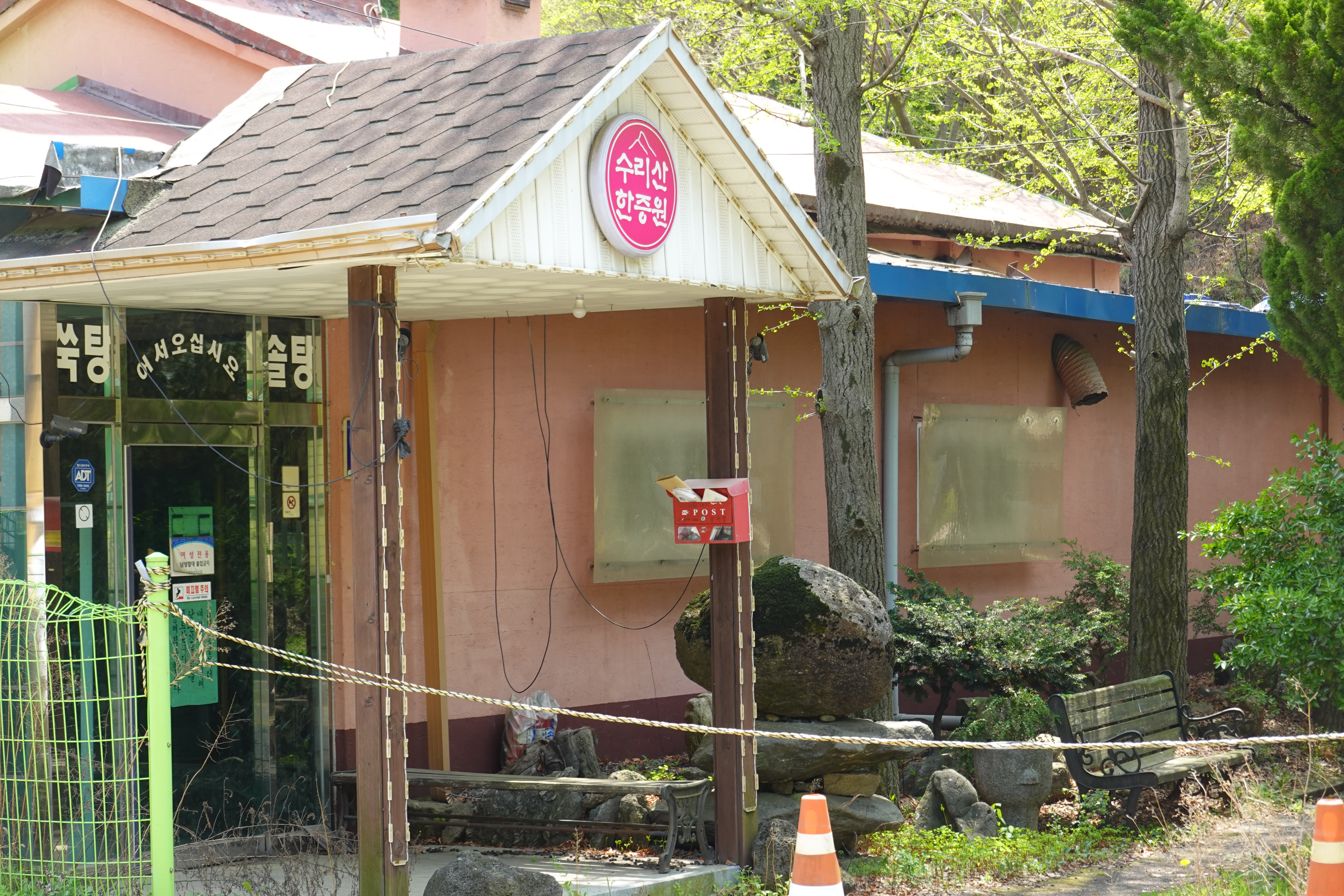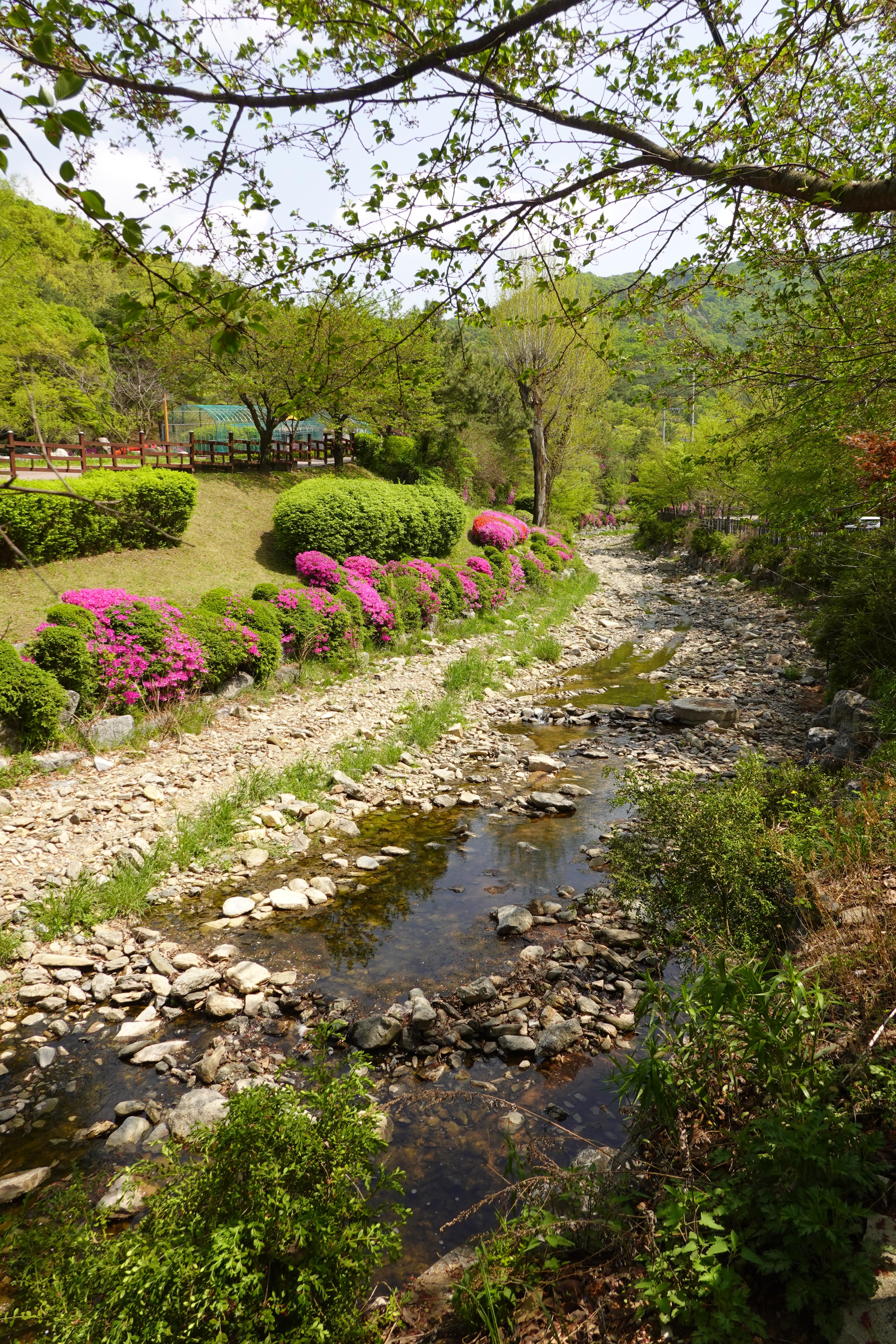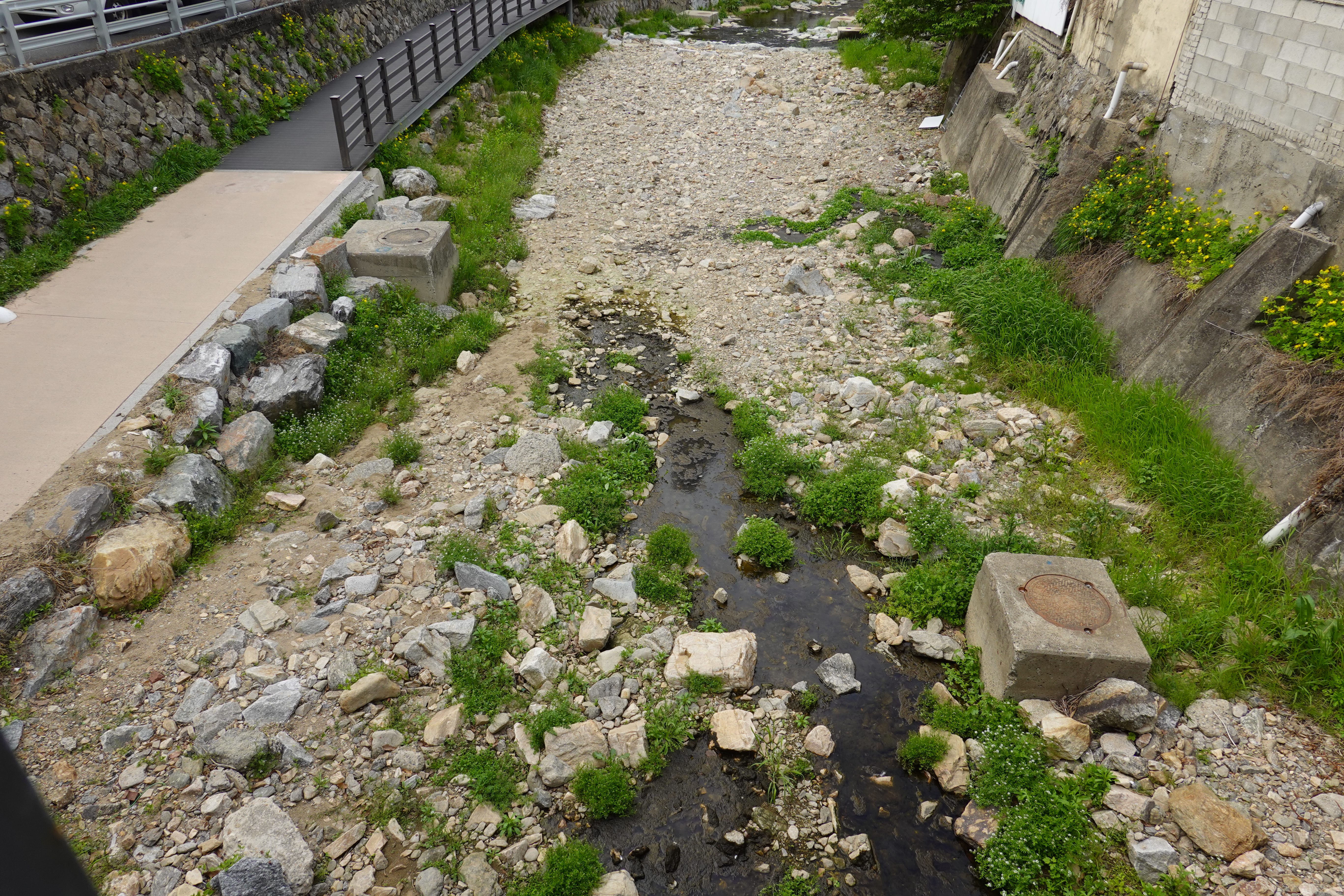 2023.04.21/ #도시기록 #수암천 #수리산 / 병목안과 담배촌의 풍경. 물이흐른다. 새마을교 아래는 물이 하천 바닥 암반으로 빠져버려 천 바닥에 물 흐름이 보이지 않는다. 서울 근교에서 가장 오래된 여성전용 수리산 한증막이 문을 닫았다.