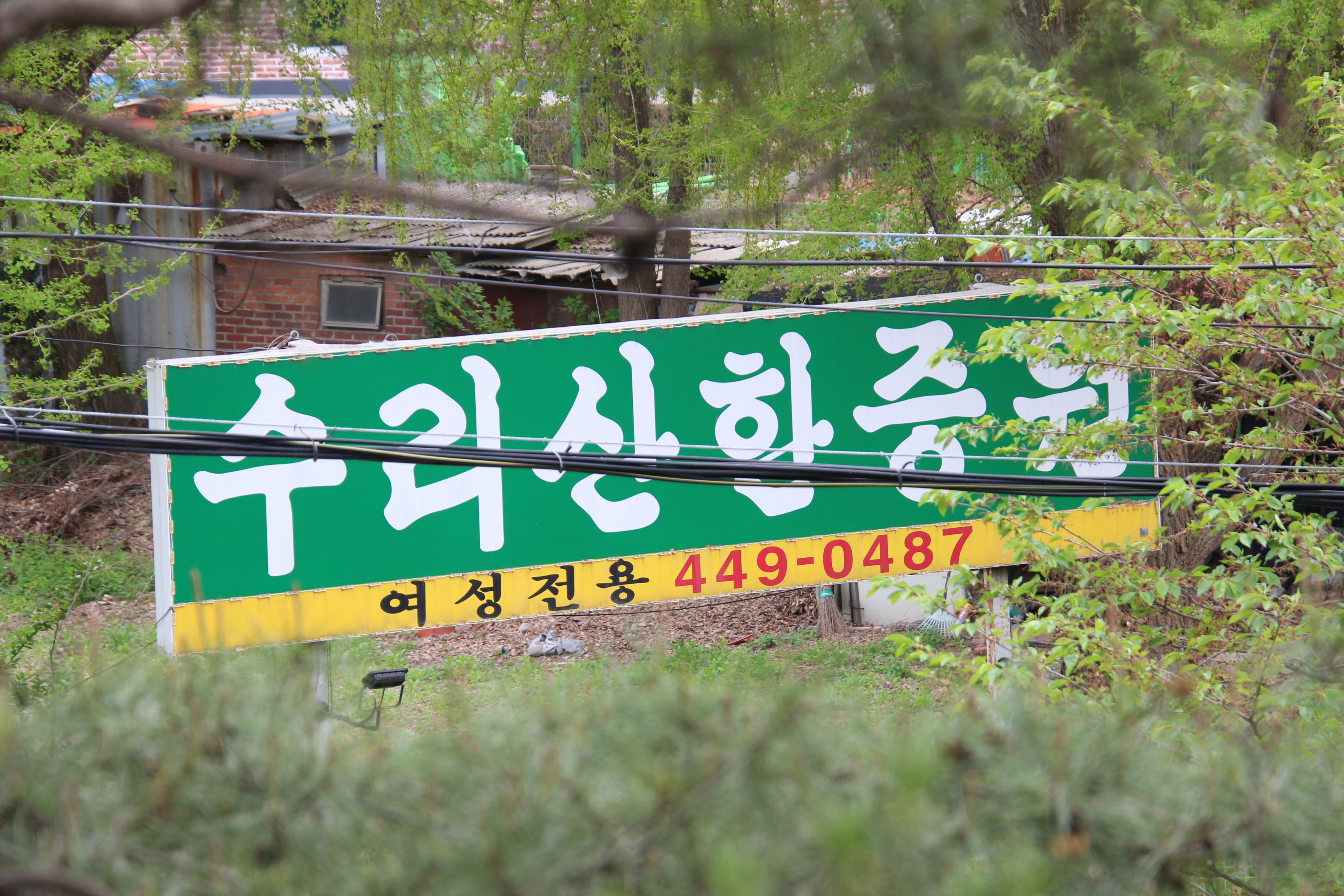 2023.04.21/ #도시기록 #수암천 #수리산 / 병목안과 담배촌의 풍경. 물이흐른다. 새마을교 아래는 물이 하천 바닥 암반으로 빠져버려 천 바닥에 물 흐름이 보이지 않는다. 서울 근교에서 가장 오래된 여성전용 수리산 한증막이 문을 닫았다.