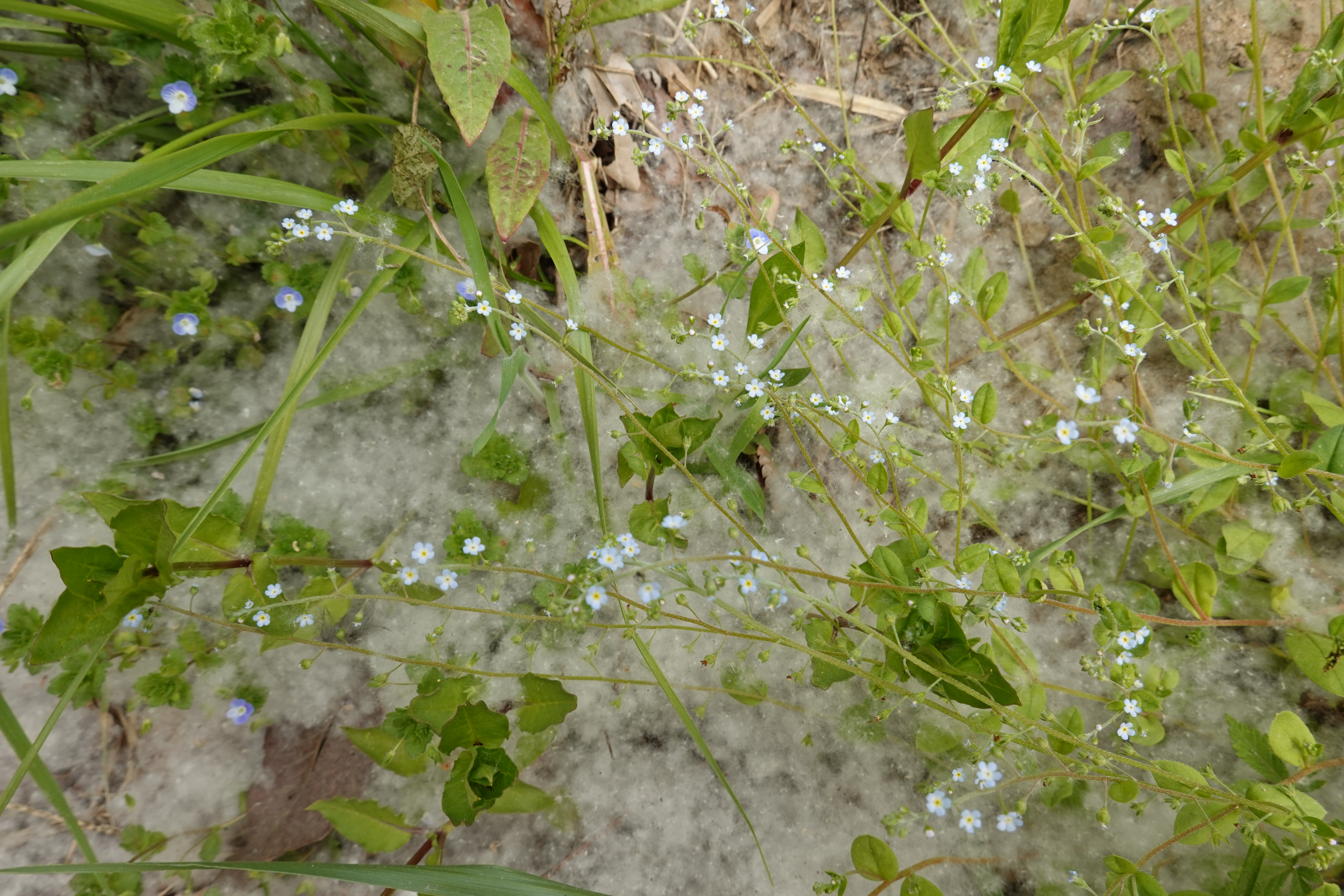 2023.04.23/ #도시기록 #꽃가루 #솜털 #학의천 #안양천/ 하천 산책로를 걷다보면 솜털같은 하얀 꽃가루들을 보게된다. 대부분 천변에심어진 버드나무에서 날라온 것들이다. 버드나무는 물이 있는 곳이면 씨앗이 날아와 뿌리를 내리고 숲을 이룬다. 씨앗은 버들강아지가 익으면 겉에 솜털이 생긴다. 이것이 씨앗과 함께 바람을 타고 날아가 땅에 떨어져 뿌리를 내리게 된다. 봄철에 대량으로 날아다니는 버드나무 솜털 때문에 문제가 되기도 한다. 꽃가루 알레르기 때문이다.