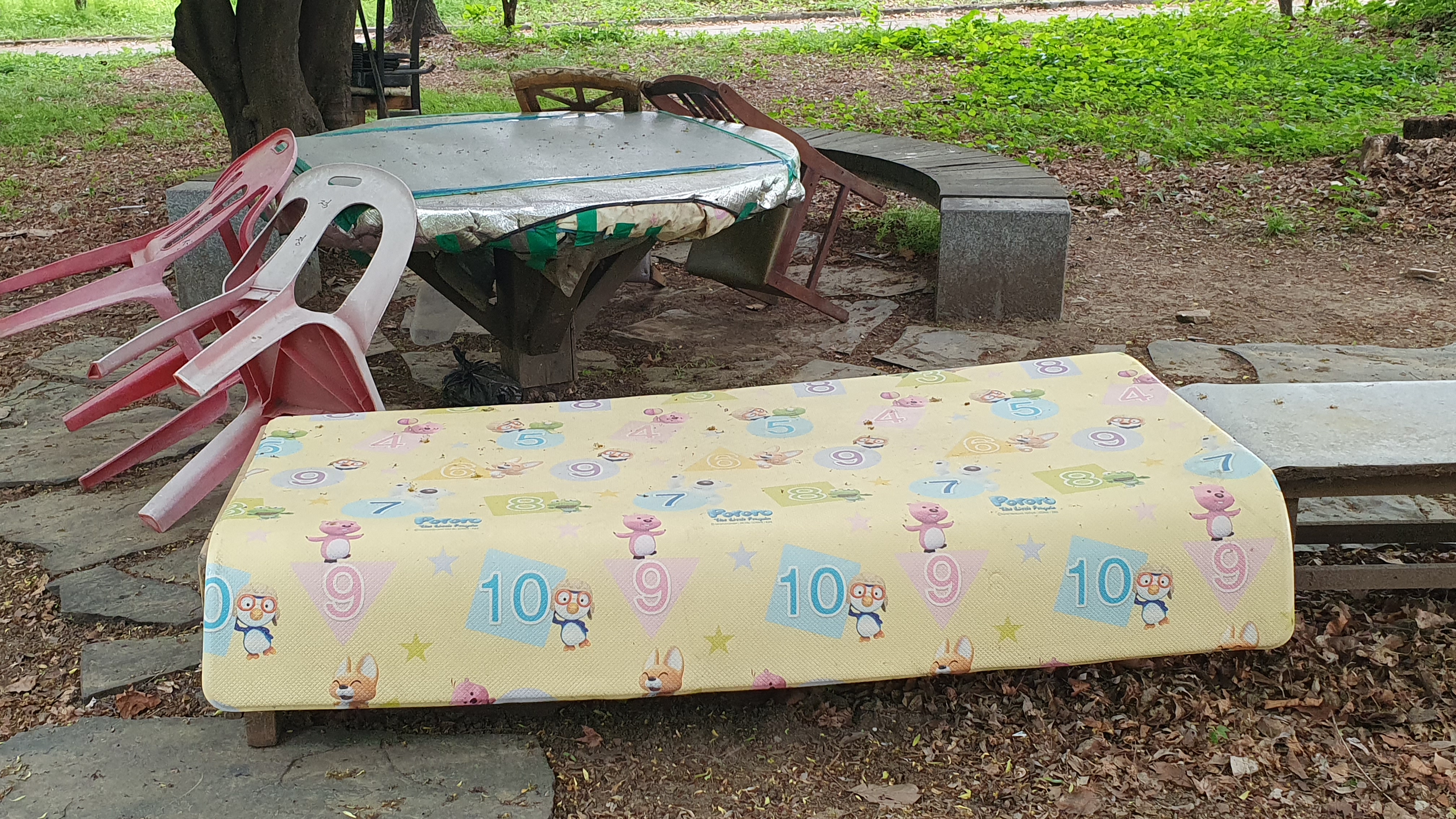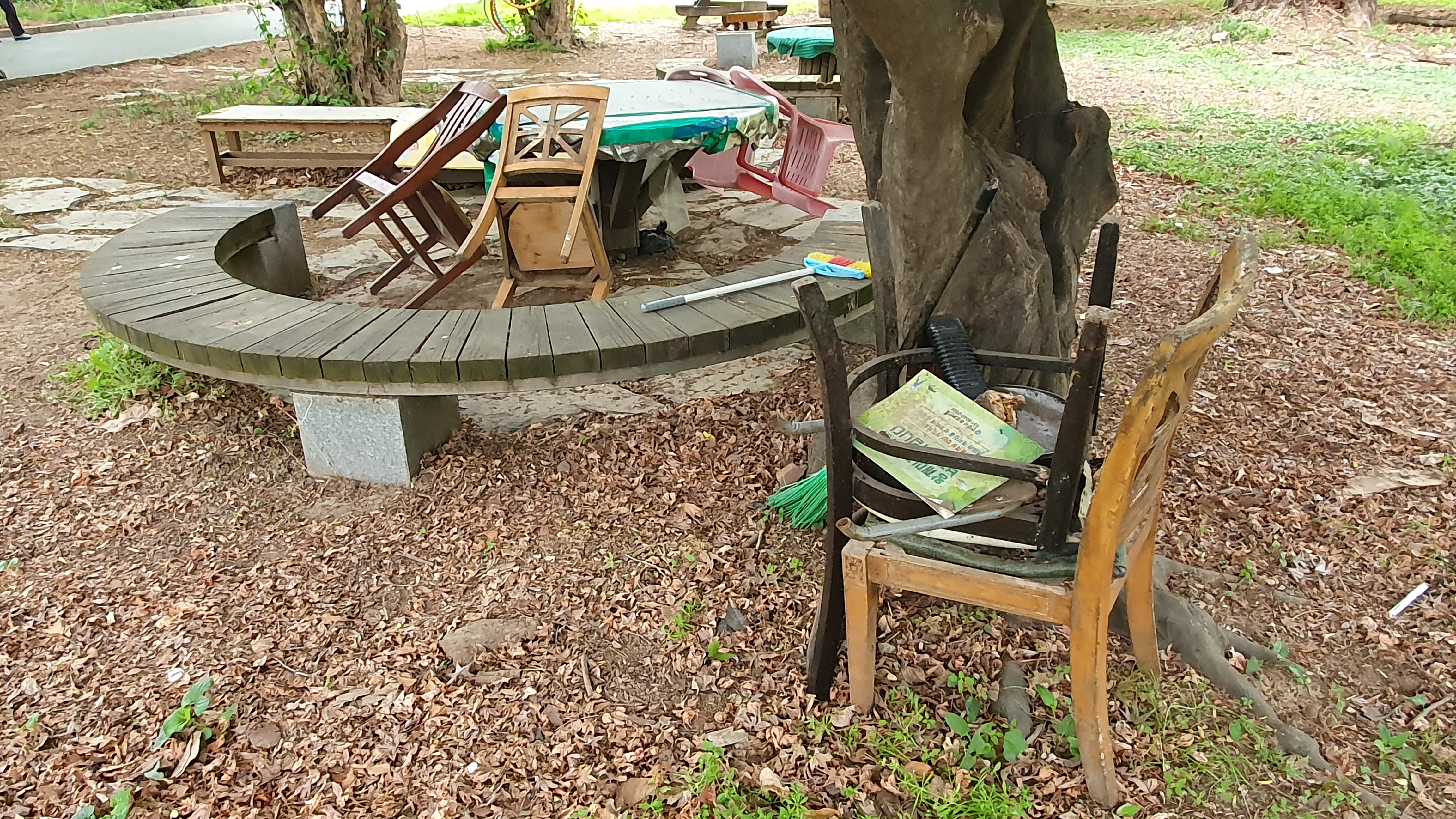 2023.04.28/ #도시기록 #에공 #안양6동 #옛검역원터 #도심정원 #폐기물/ 안양6동 엣검역원내 정원을 동네주민들을 비롯 시민들이 많이 이용하지만 관리 부재속에 온갖 폐기물과 애완견 배설물 등으로 몸살을 앓고 있다. 검역원내 정원을 한바퀴 돌아보면 동네주민들이 하나둘 갖다 놓은 의자, 바둑판과 장기판, 훌라후프. 장판 등 온갖 잡동사니들이 쌓여 보기 흉할 정도로 지저분한것을 볼수 있다. 또한 시와구청에서 내건 현수막은 글씨를 알아보기 힘들 정도로 천이 바랬음음에 그대로 방치된채 걸려 있다. 특히 시민들이 함께온 애완견들을 산책시키면서 산책로에 응가하는 배설물은 대부분 치우지만 정원안 수풀속에 응가한 배설물의 경우 치우지 않고 방치하기에 미관과 냄새 등 공중위생을 해칠 뿐만 아니라, 날씨가 더워지면서 파리 등 해충과 악취가 발생할경우 불쾌감은매우 클것으로 보인다.