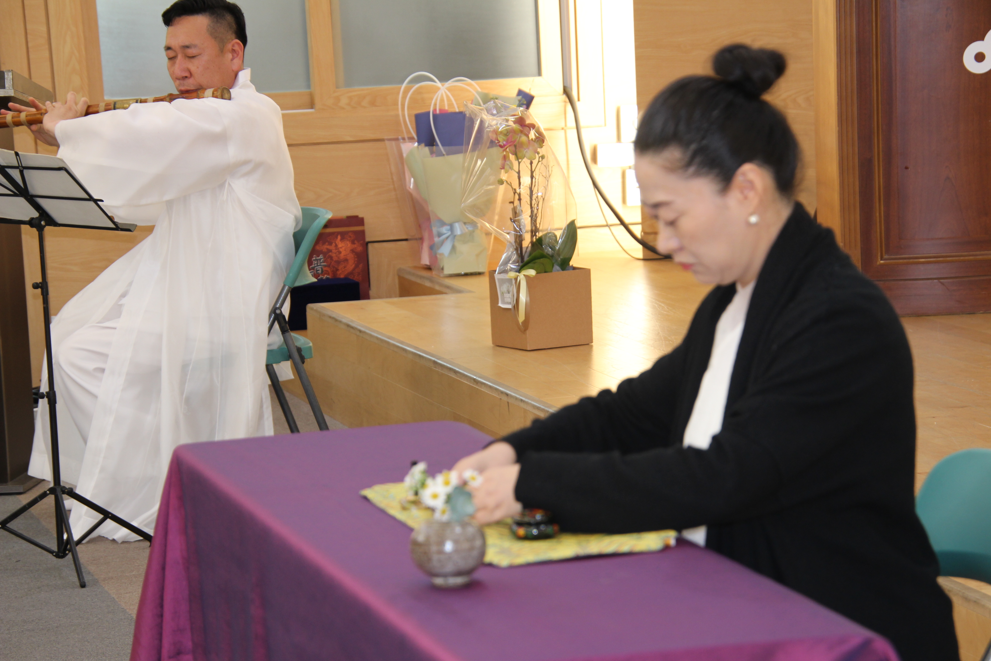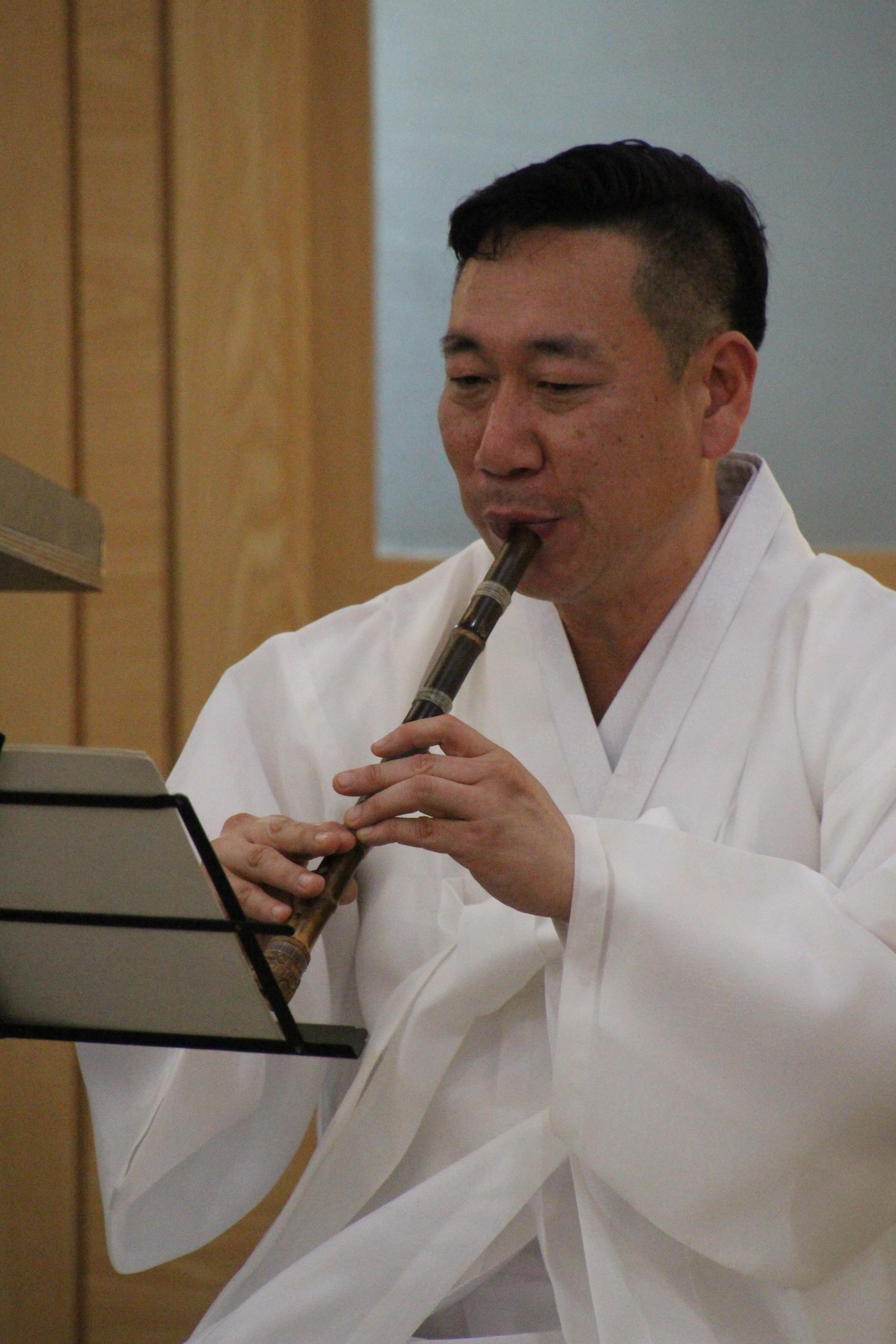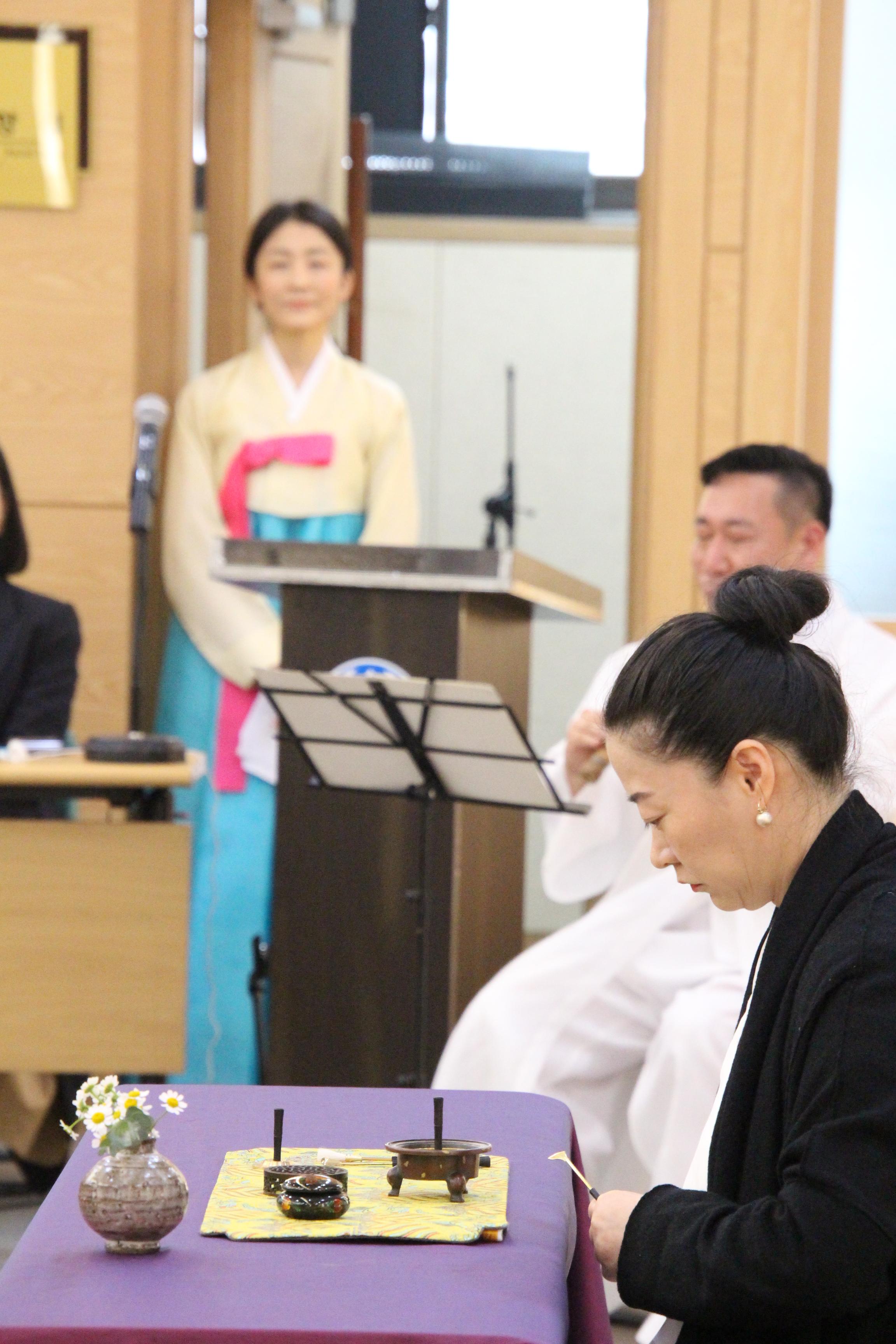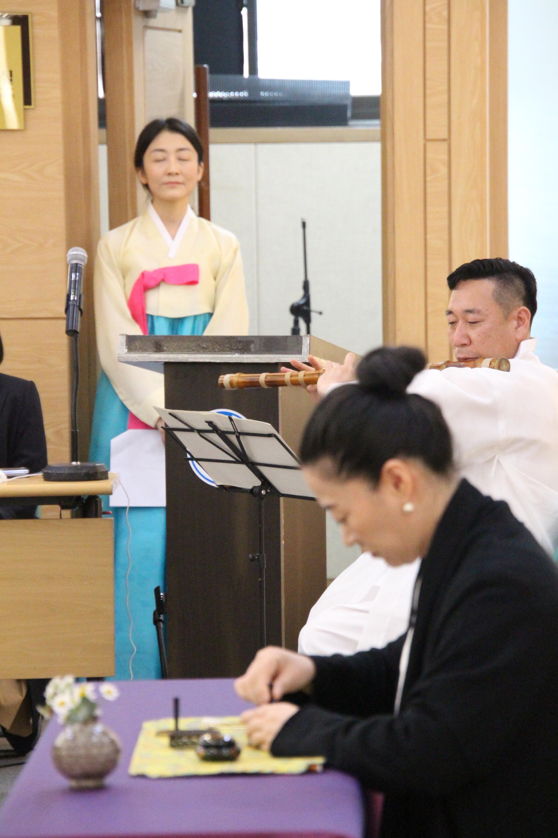 사진은 문화마당의 기념공연 <풍류 중국 '향도'를 보다>로 국악인 김성태님의 대금연주와 후뤼윤 교수(중국)의 향도(행사장을 감싸고 도는 향의 연기)를 맛볼수 있었다.