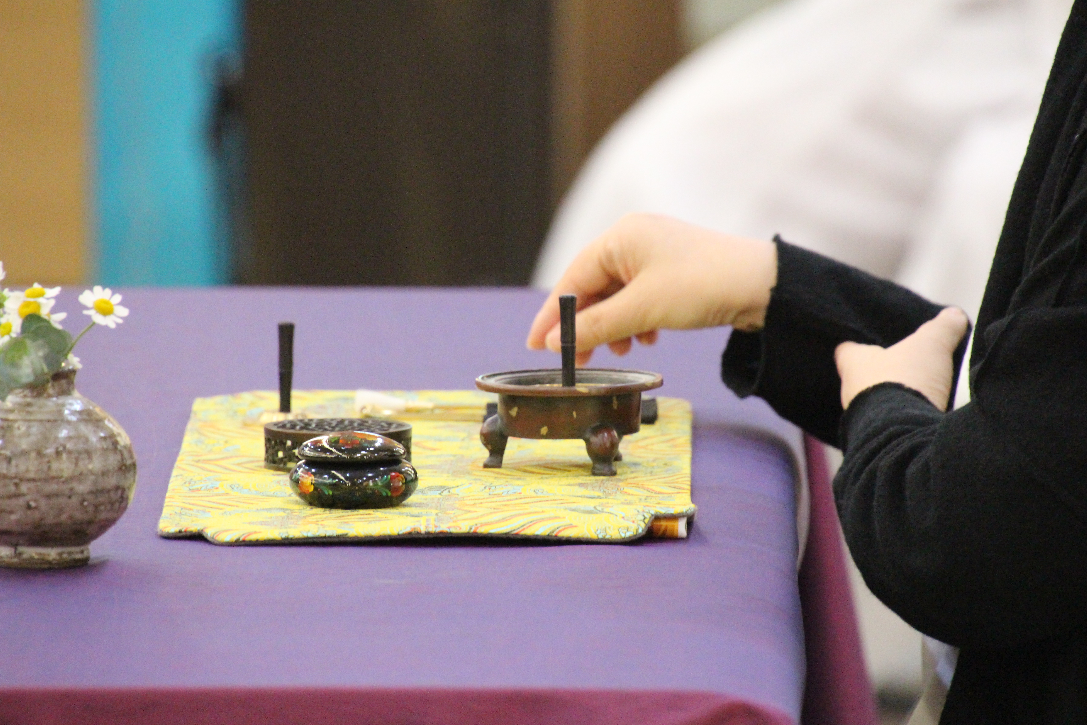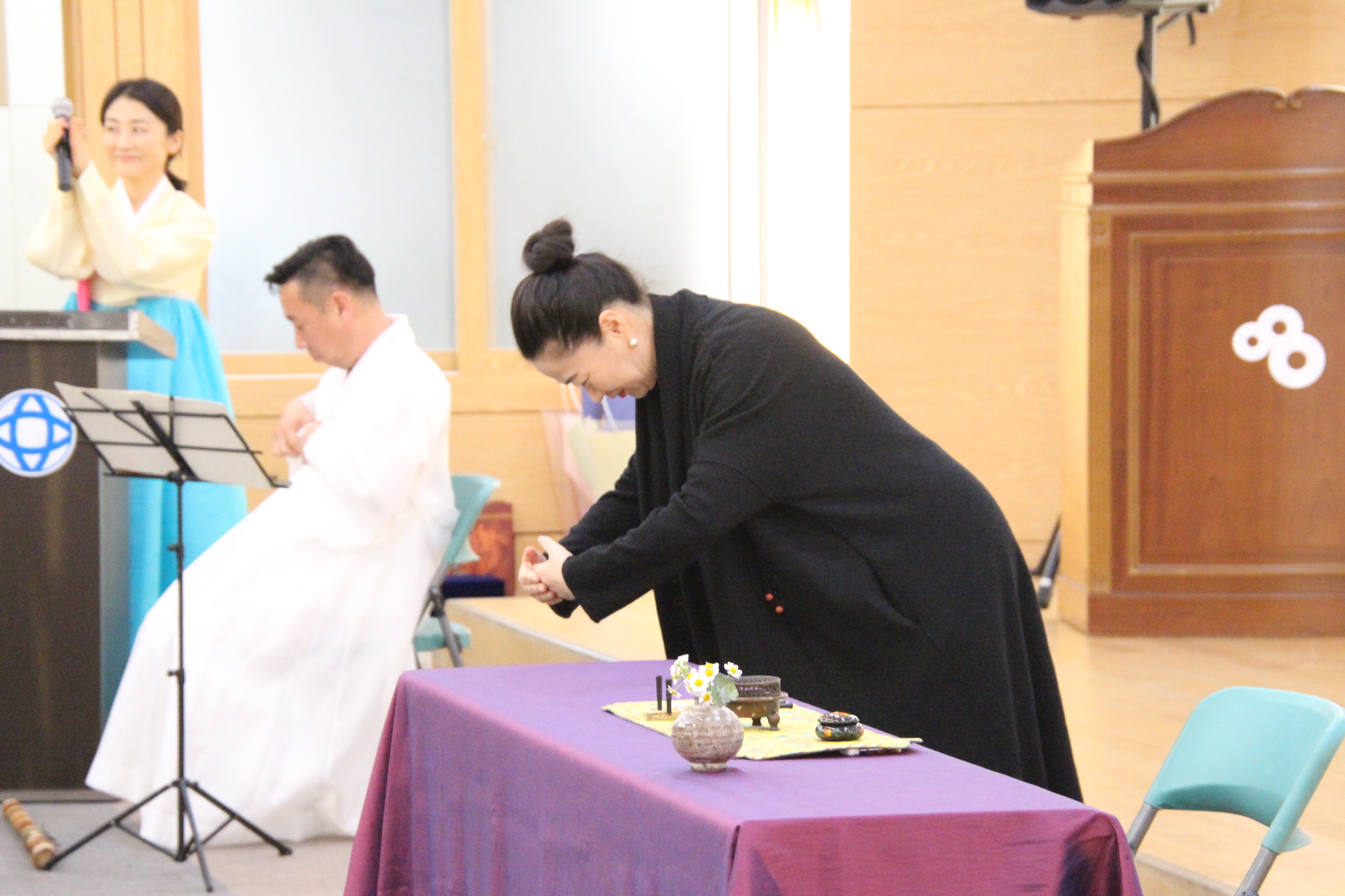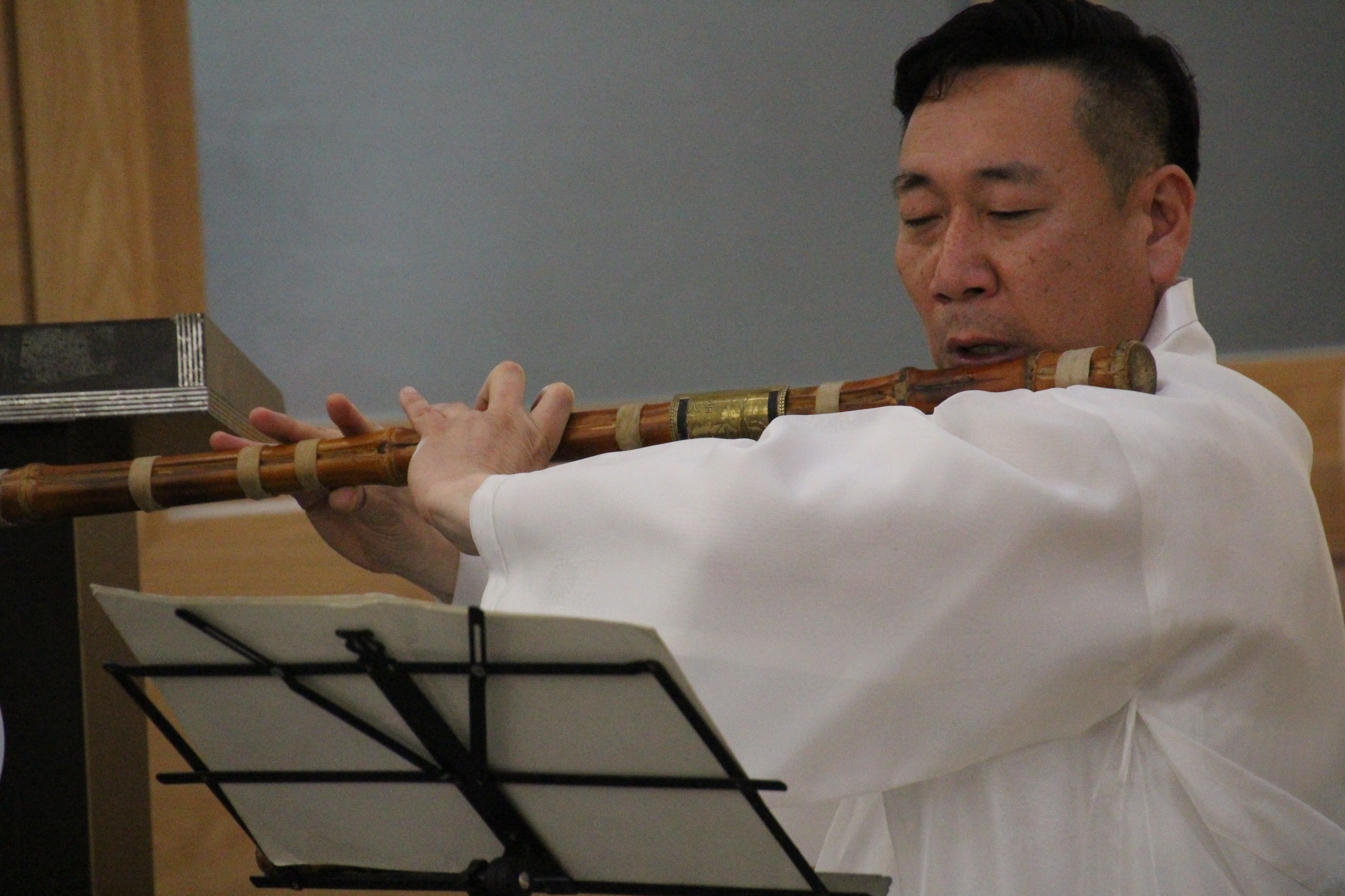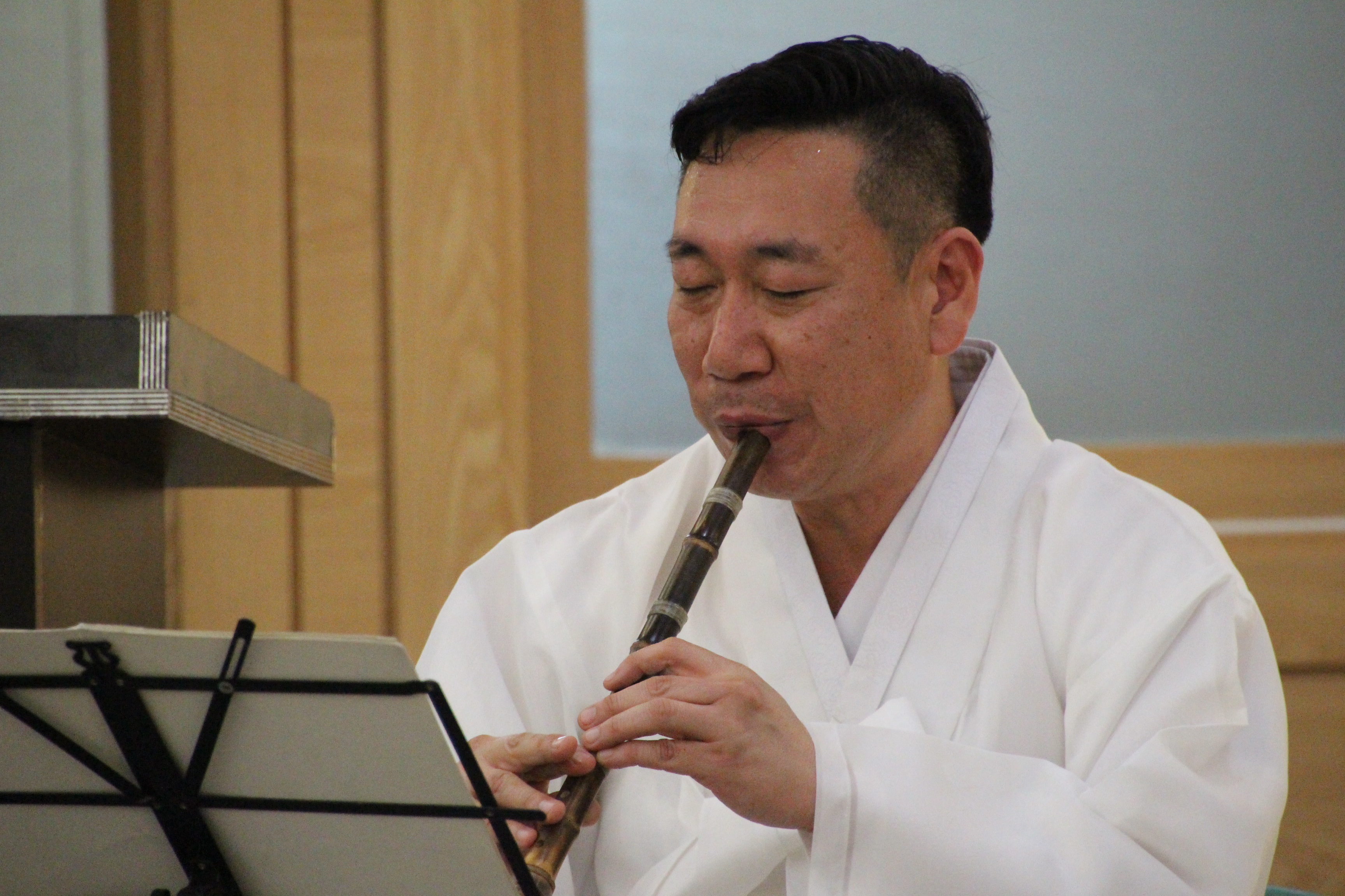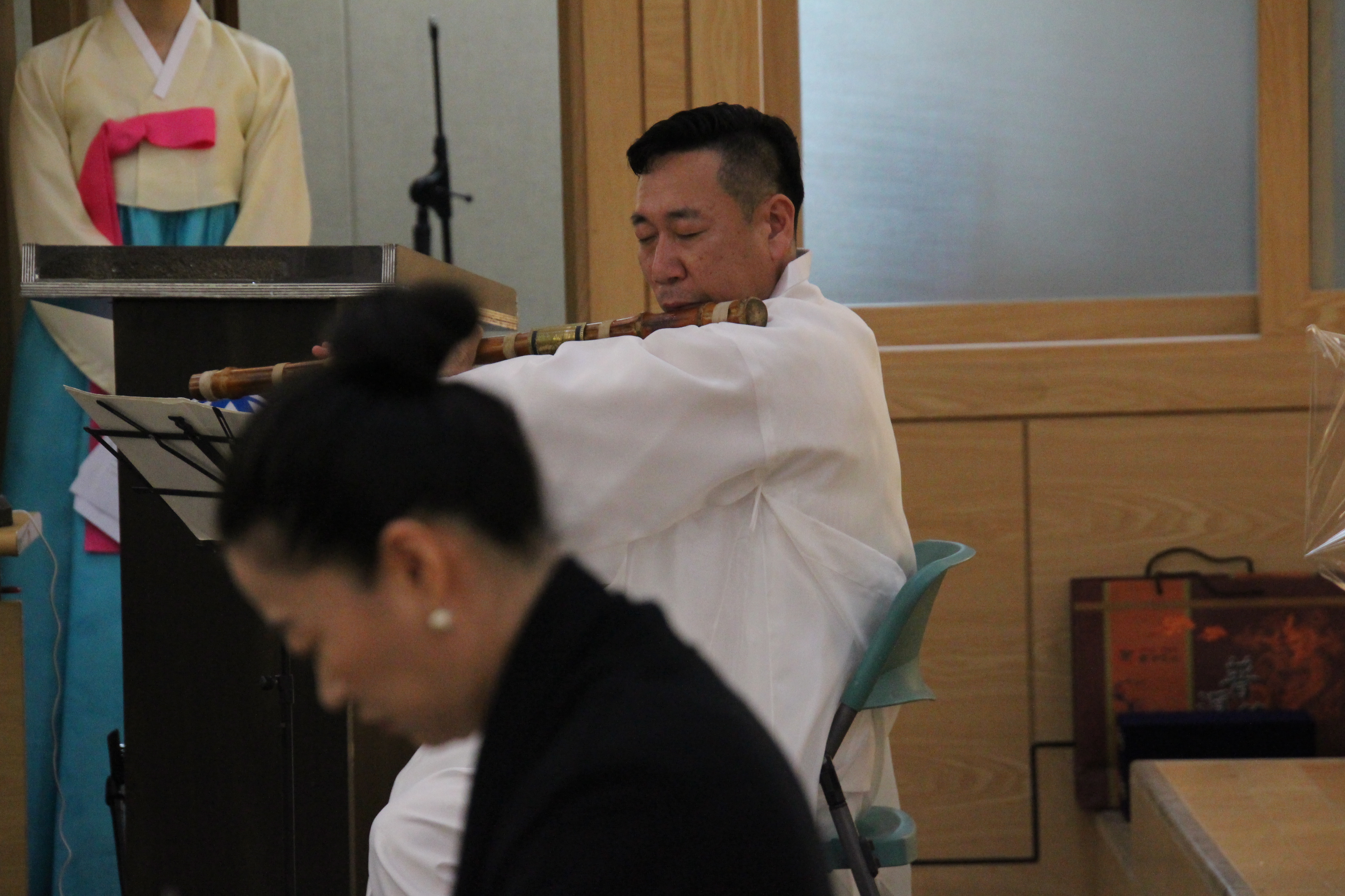 사진은 문화마당의 기념공연 <풍류 중국 '향도'를 보다>로 국악인 김성태님의 대금연주와 후뤼윤 교수(중국)의 향도(행사장을 감싸고 도는 향의 연기)를 맛볼수 있었다.
