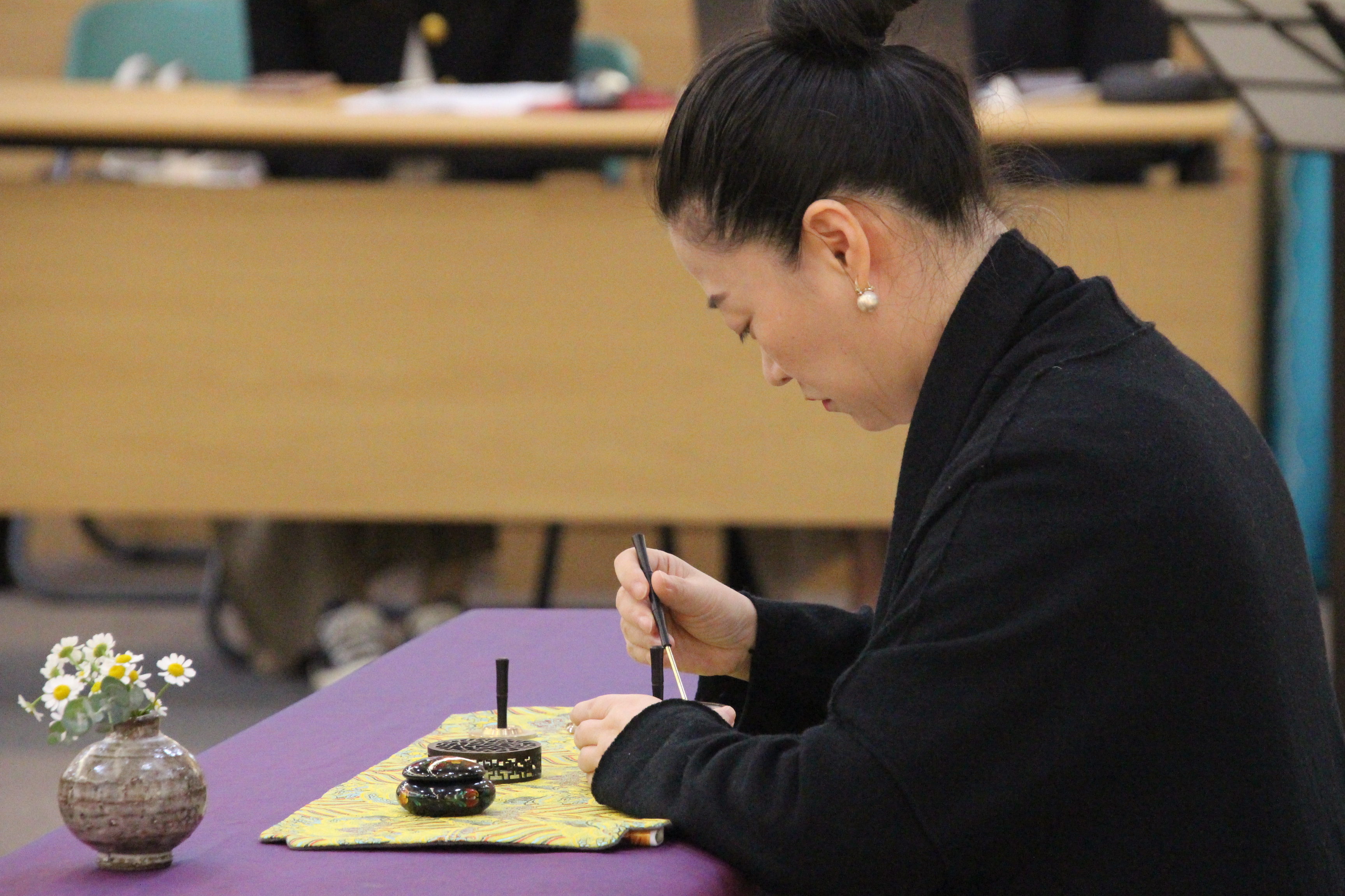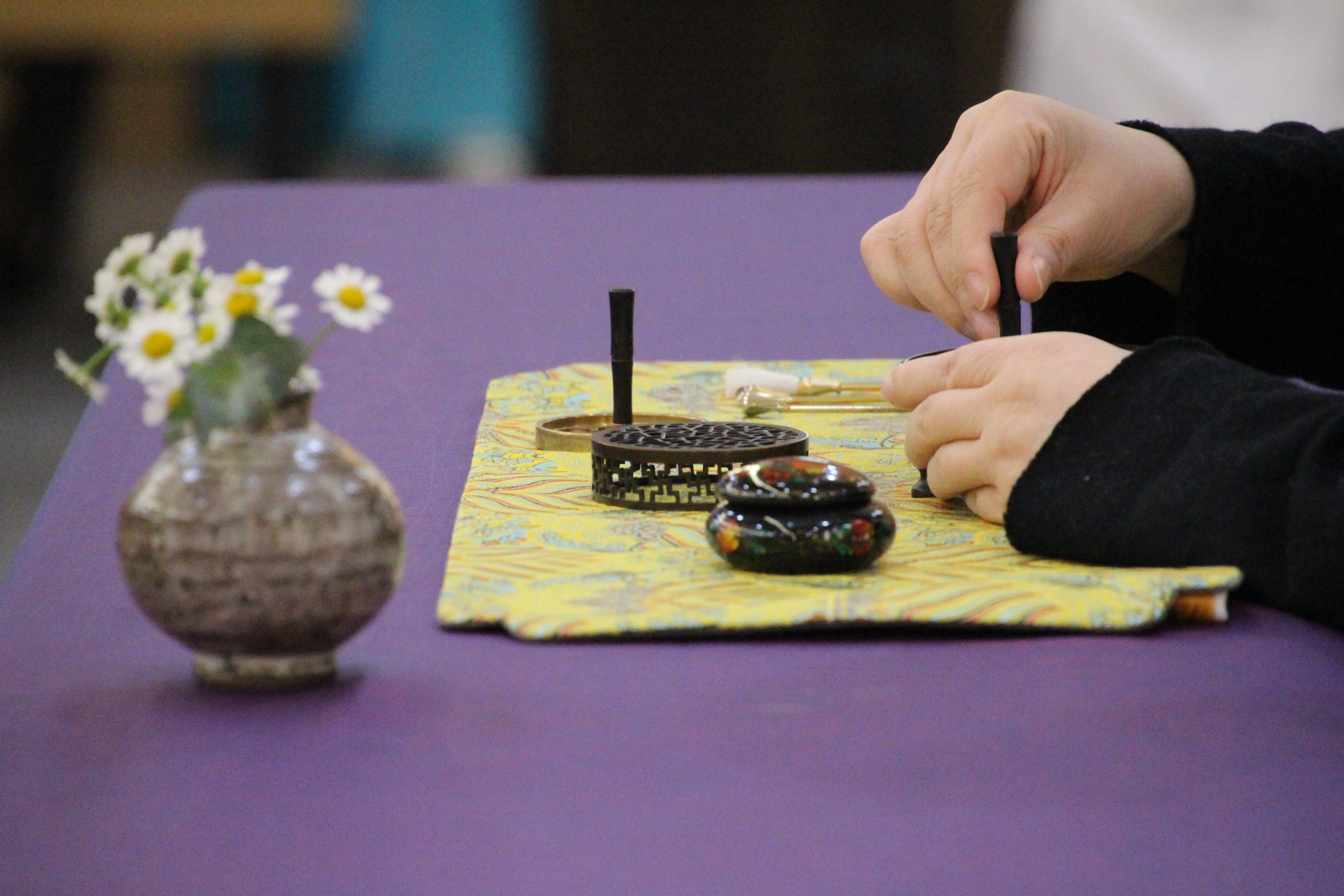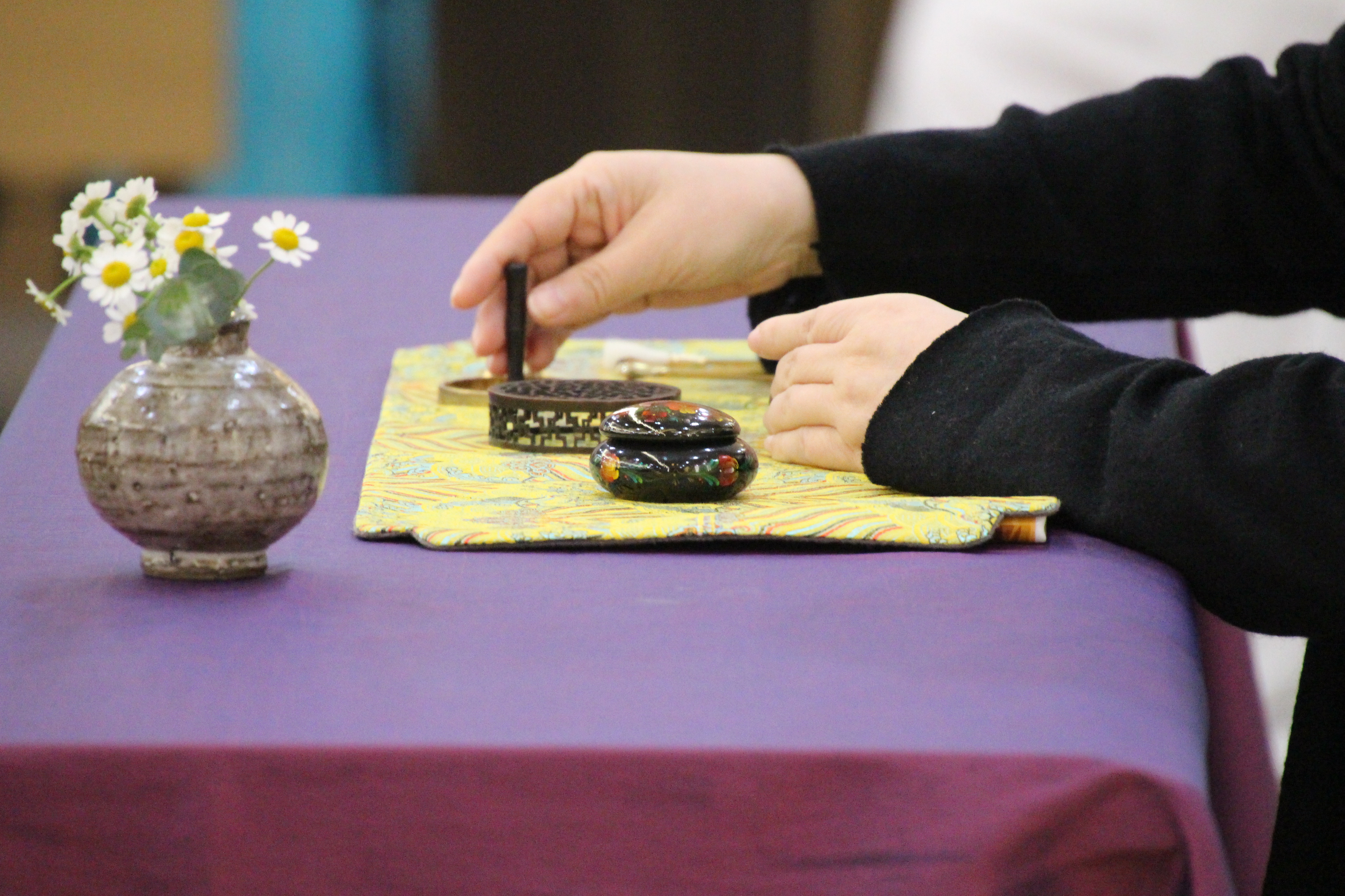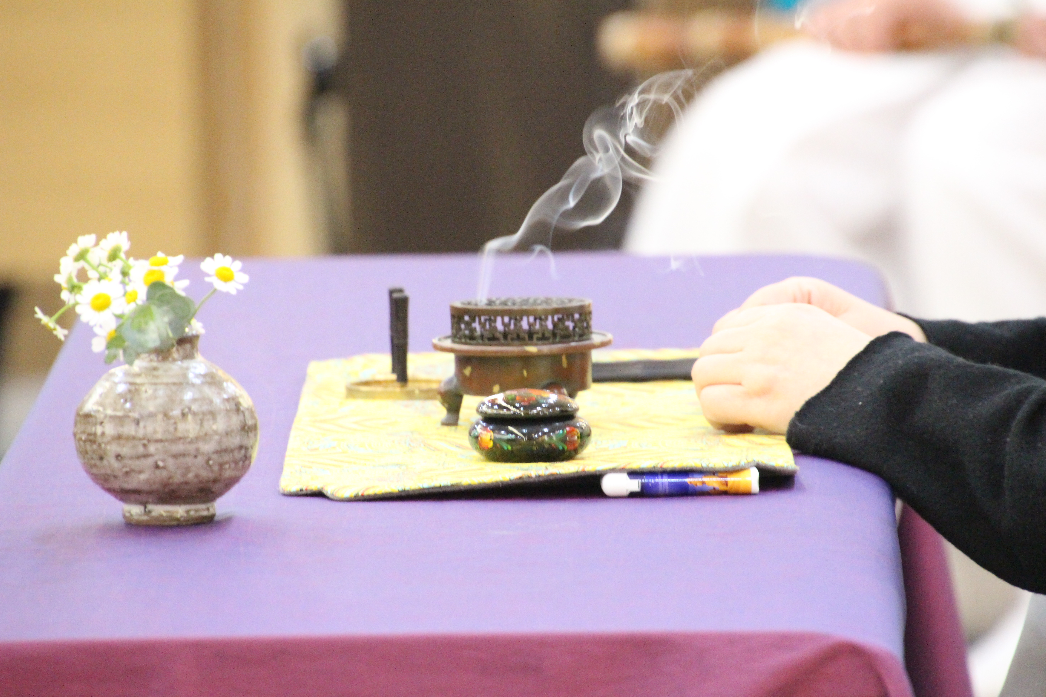 사진은 문화마당의 기념공연 <풍류 중국 '향도'를 보다>로 국악인 김성태님의 대금연주와 후뤼윤 교수(중국)의 향도(행사장을 감싸고 도는 향의 연기)를 맛볼수 있었다.
