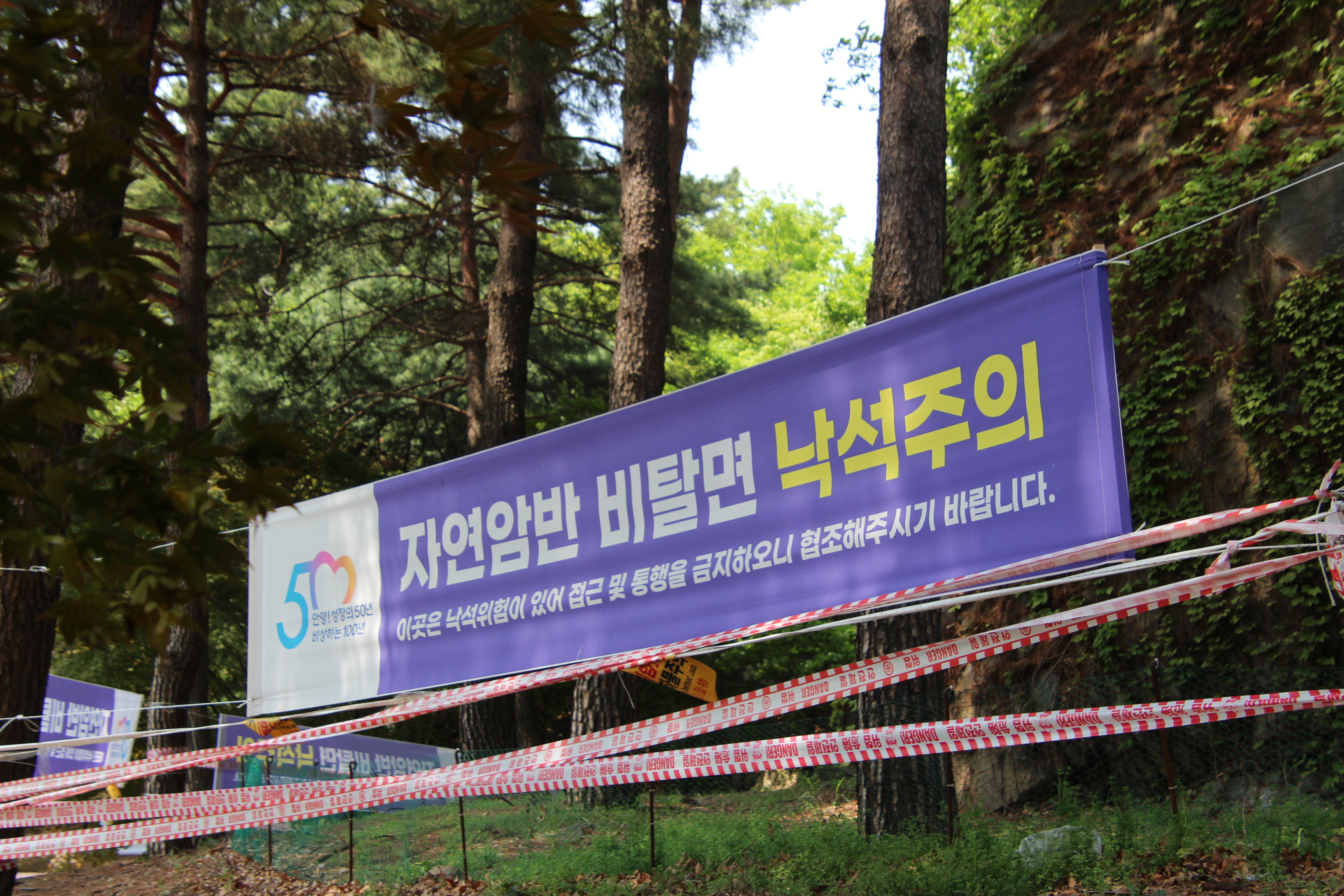2023.04.30/ #도시기록 #안양9동 #병목안시민공원/ 1934년 부터 1980년 까지 철도 레일용 자갈을 채취던 병목안채석장. 병목안시민공원은 현재 많은 주민이 찾는 안양의 휴식공간이지만, 일제 강점시 전쟁물자와 수탈한 물건을 운송하기 위해 경부선 철도 복선 공사를 할 당시인 1934년 철도레일용 자갈을 채취하던 곳으로 광복 이후에는 철도청이 1980년대 초까지 수도권 일대에 건축용 골재를 공급하던 주요 공급지였다. 안양시는 2004년 이런 역사적 아픔을 간직한 병목안의 아픈 흔적을 지우고 산림복원을 통해 시민공원으로 조성키로 하고 채석장 부지를 65억원에 사들인후 2005년부터 모두 190억원을 들여 2년간의 공원 조성 공사(토목공사 우일건설, 조경공사 건림원)를 통해 높이 65m 폭 95m의 초대형 인공폭포와 길이 150m, 너비 73m의 잔디광장, 어린이놀이터, 사계절 정원, 파고라, 원두막, 주차장, 산책로 등을 갖춘 총 면적 101,238㎡(30,624평) 규모의 병목안시민공원을 조성해 지난 2006년 5월24일 개장했다. 병목안시민공원 인공폭포의 바위는 가짜이지만 시민공원 주변에서 자갈을 채취하던 진짜 바위로 된 절벽과 암반등 옛 채석장의 흔적을 볼수 있다.