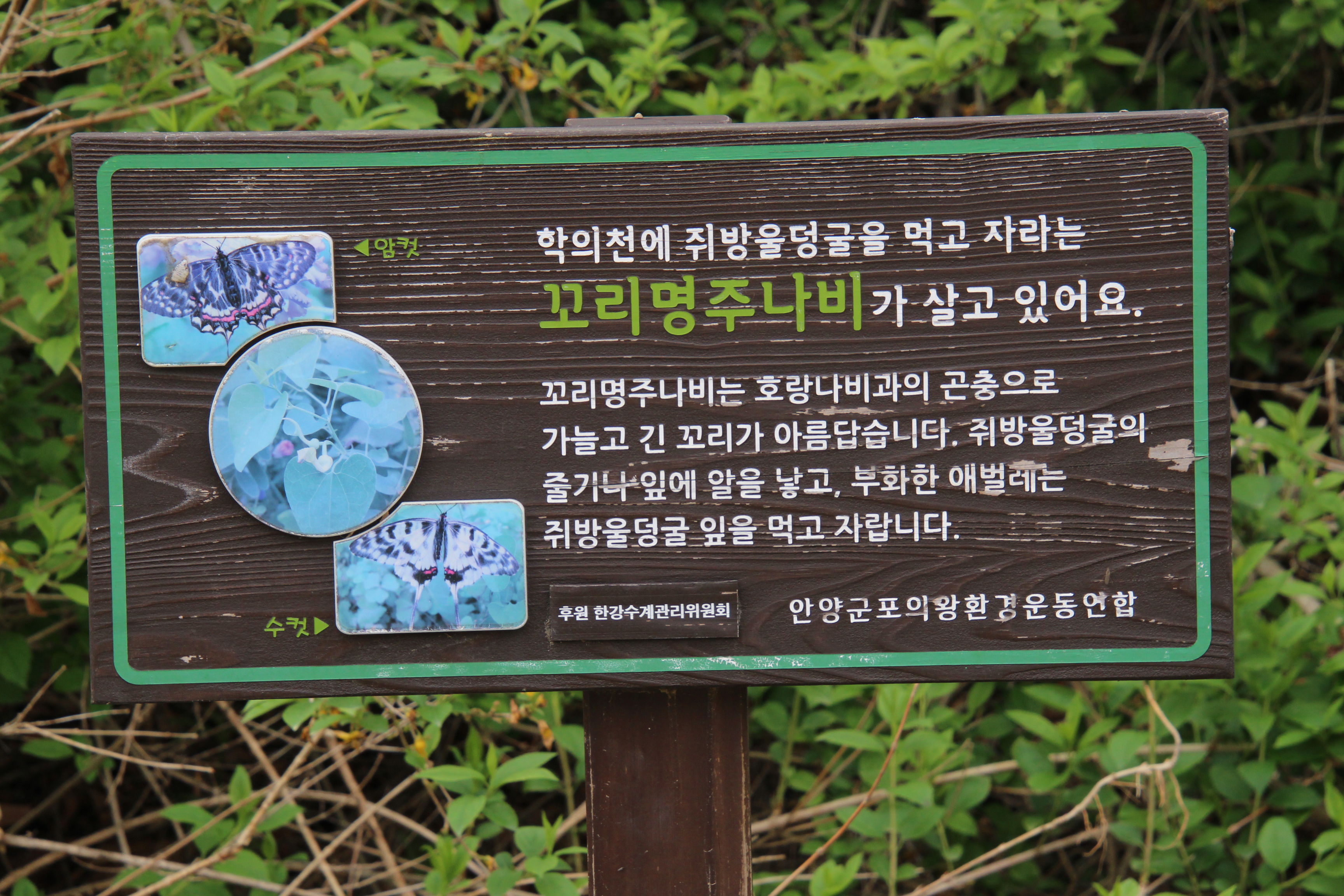 신문기록을 찾아보니 수원시의 경우 꼬리명주나비 자생지 복원을 위해 10년이나 쥐방울덩쿨 군락지 복원사업을 펼쳤다고 한다.