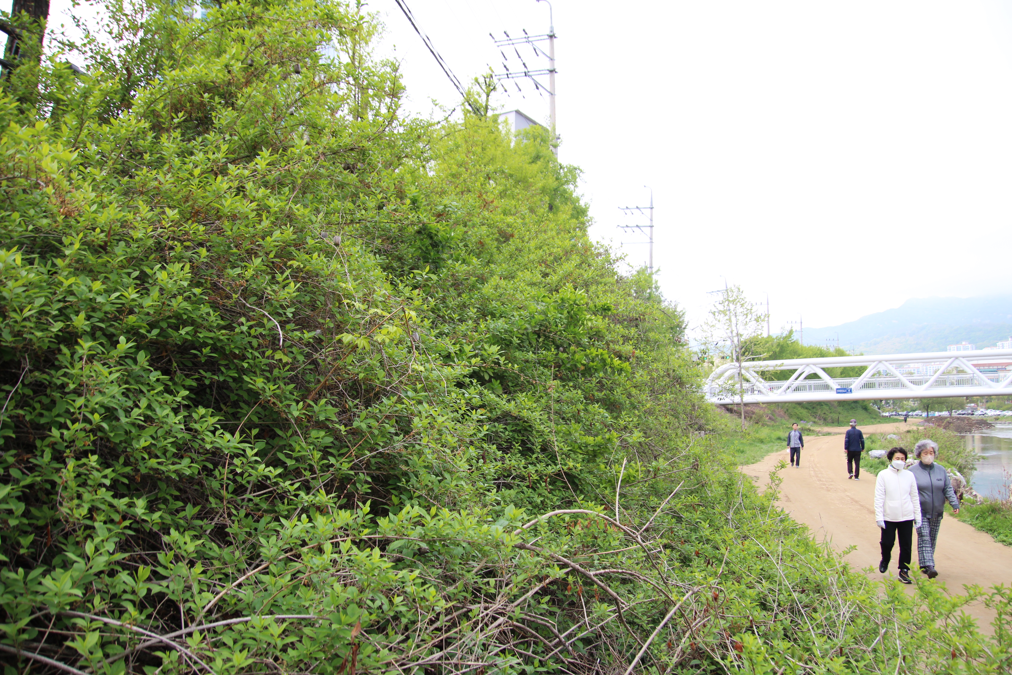 지난해 안양시가 학의천 천변 고수부지에 식물을 심는다며 마구잡이로 쥐방울 군락지를 훼손했는데 4월초 현장확인차 가보니 쥐방울덩쿨이 엄청 번졌다, 자연이 주는 기막힌 천혜의 선물이다. 학의천 남단 흙길산책로의 인덕원 인도교부터 관양고까지 천변 언덕에 쥐방울덩쿨이 군락을 이루고 있는 모습을 보니 사진을 찍는 내내 감탄사가 나왔다.