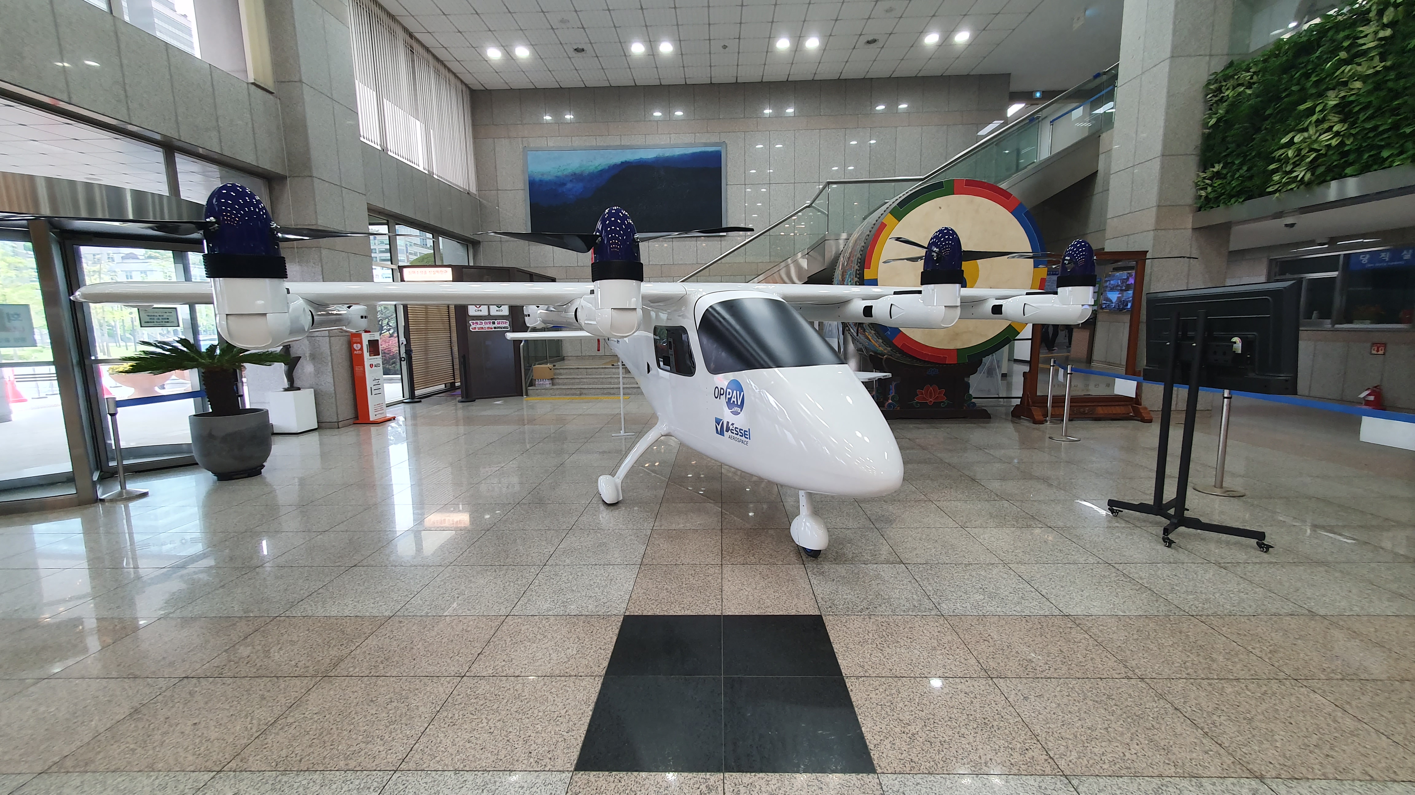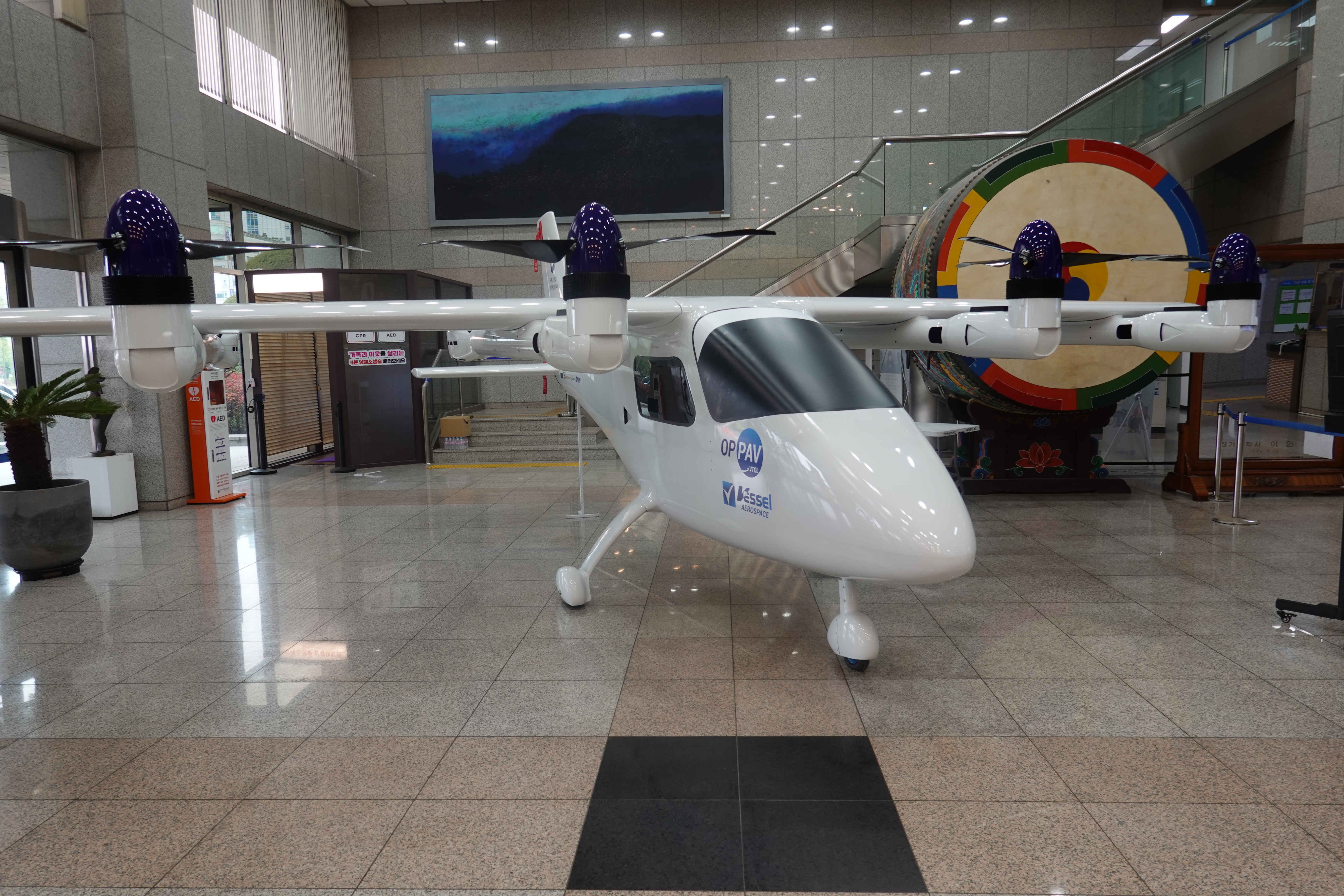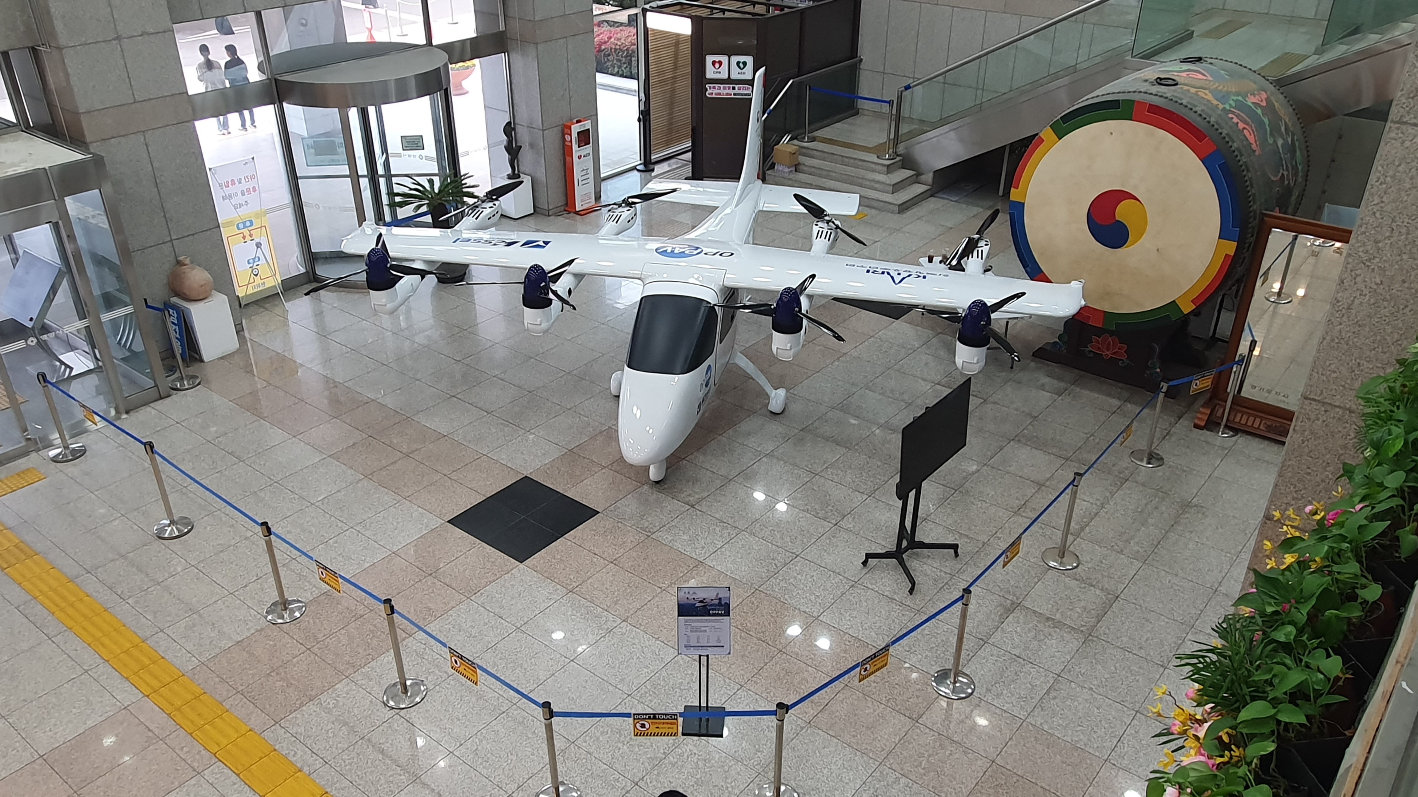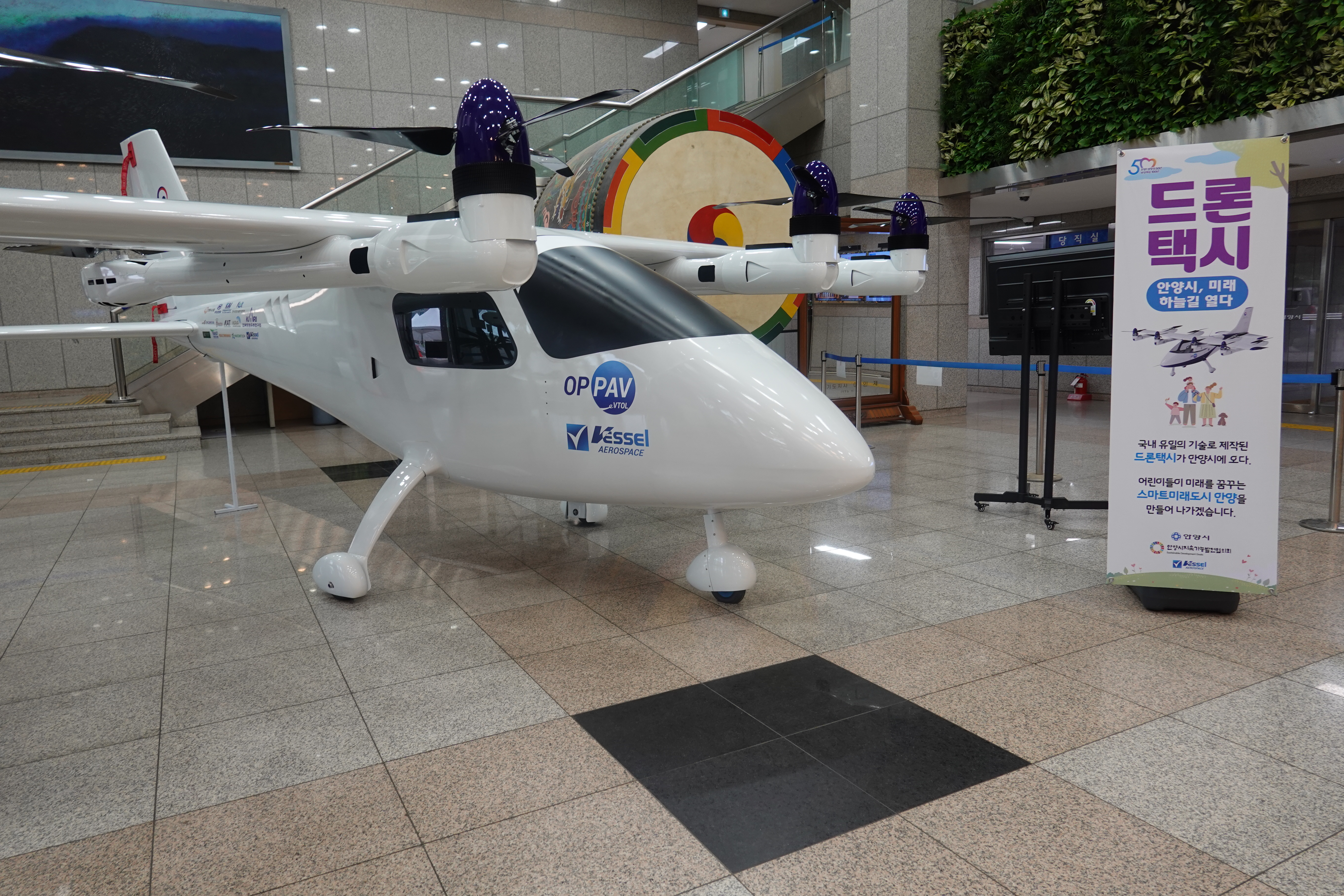 2023.05.04/ #드론택시 #안양시청 #전시/ 안양시 어린이날 행사에 전시된 드론택시. 국내 개발 첫 드론택시. 당초 평촌중앙공원에서 개최할 계획이었던 어린이날 행사가 우천 예고로 시청으로 장소를 옮기면서 드론택시를 시청사 1층 홀에 전시하고 포토존 마련. 안양시 어린이날 행사를 안양시지속가능발전협의회에서 처음 주관함.