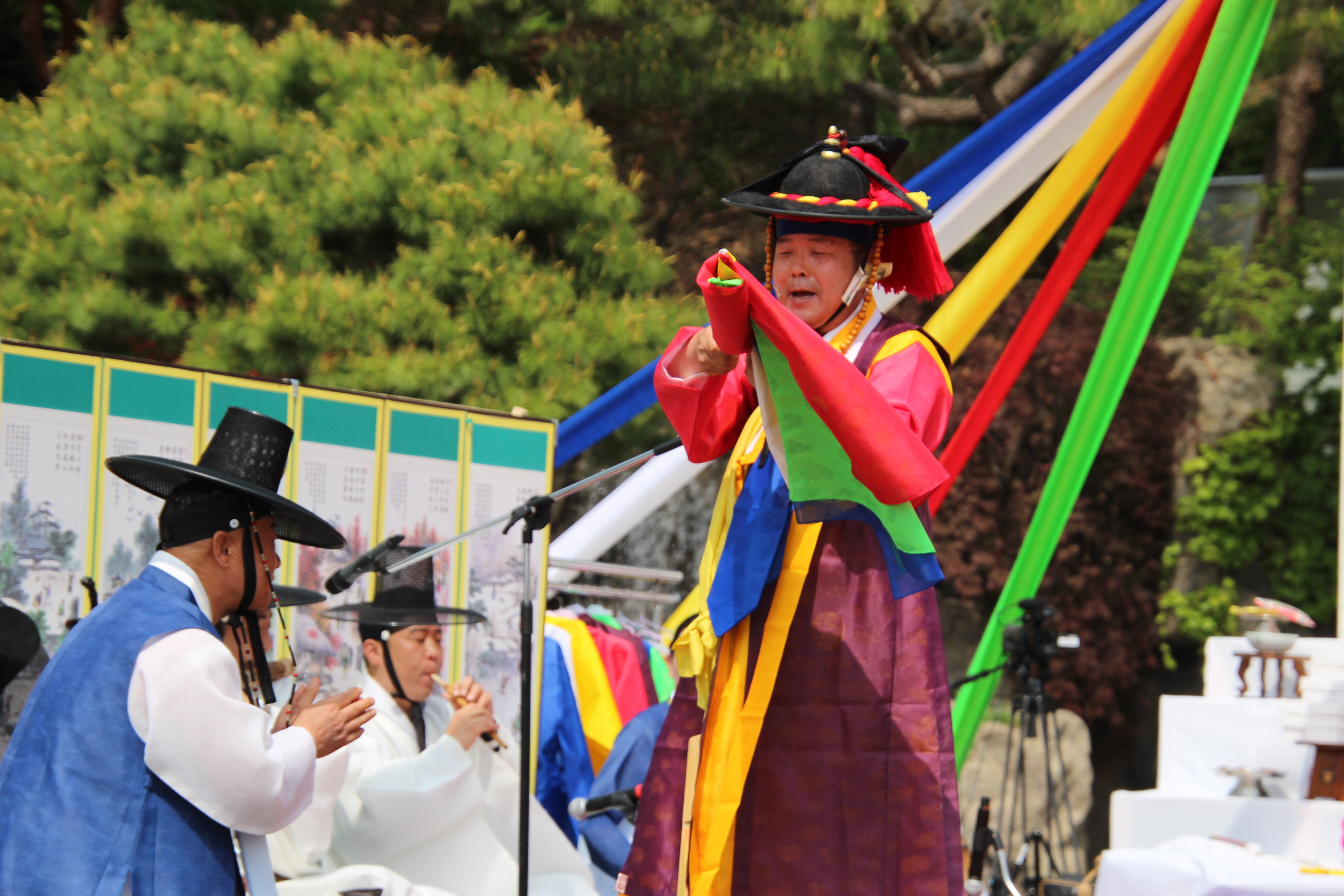 이어 한상윤 수리산산신제보존회장의 대회사를 시작으로 소리마루 예술단이 축하공연으로 경기민요를 선보였다.
