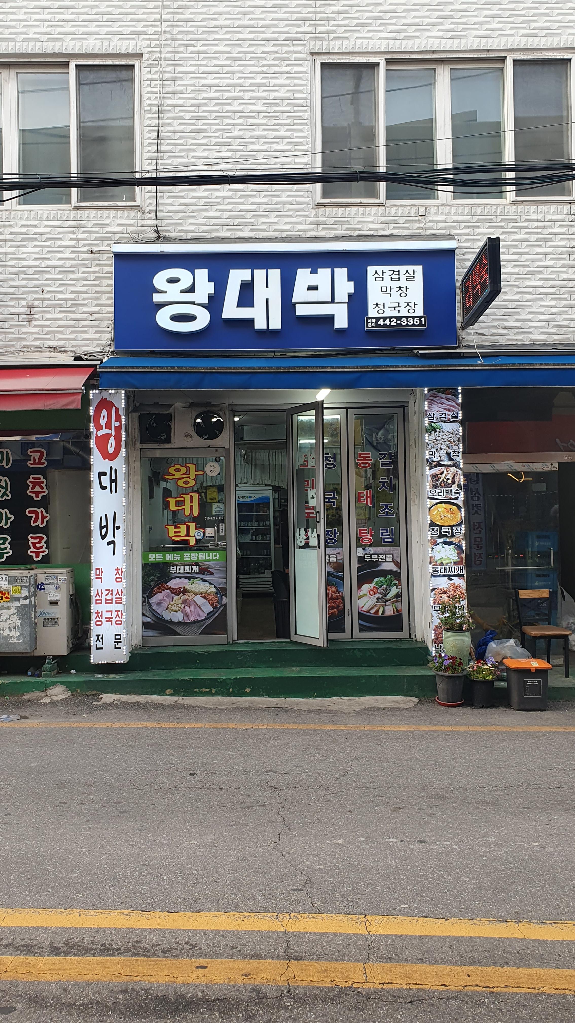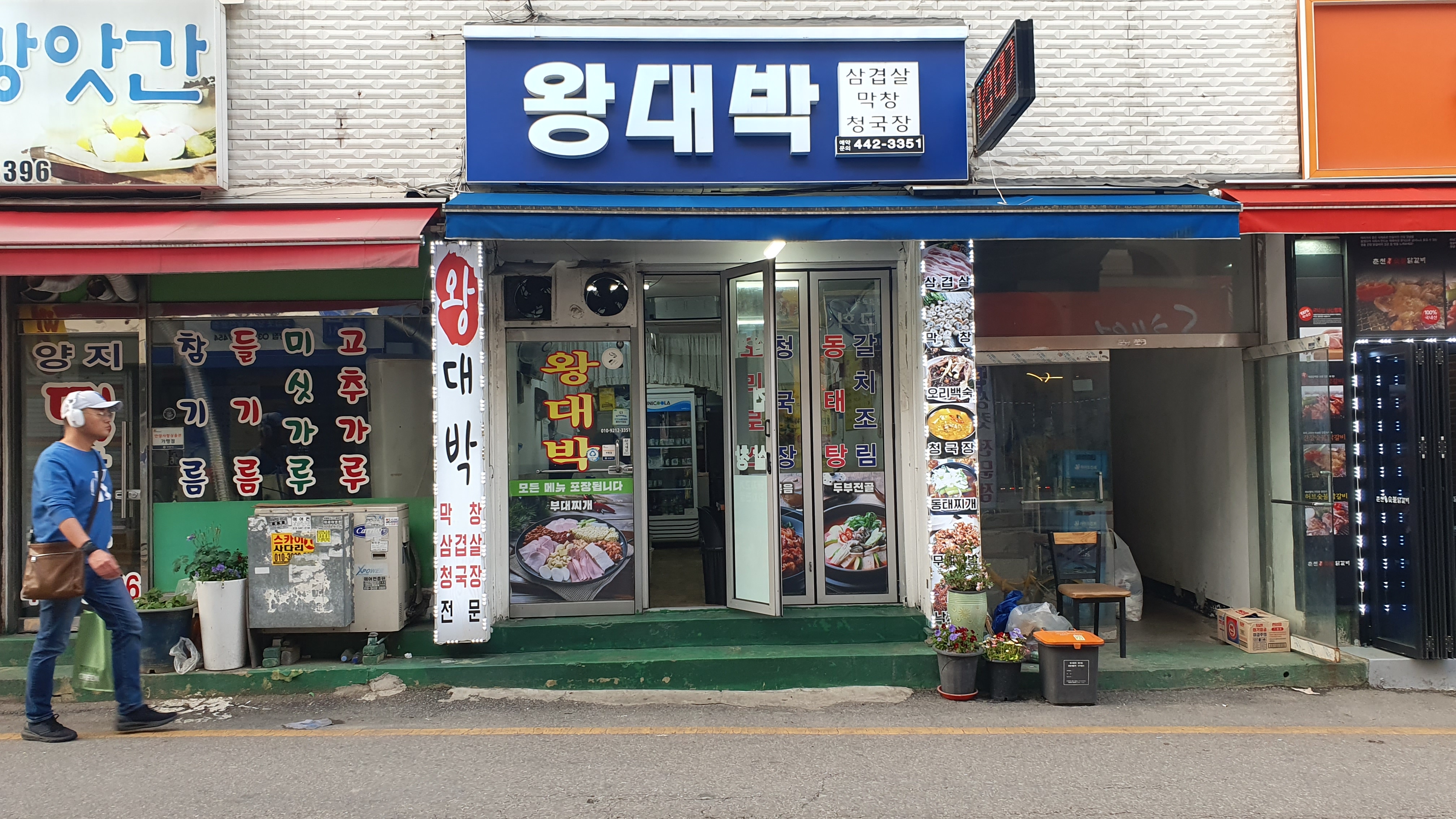 지인이 맛집 소개해준다고 데려간 곳인데 이미 오래전에 왔던 곳이다. 주접지하차도 건너 안양7동 덕천초교 가는 길목 좌측의 자그마한 식당 상호가 왕대박. 테이블 서너개밖에 없는 작은식당이지만 음식과 찬을 내는 솜씨가 아주 괜찮다. 특히 좋은 두부와콩을 재료로 만든 청국장은 냄새는 없으면서 구수하고 칼칼한 맛을 내는데 개인적으로 안양에서는 세손가락안에는 들지 않을까 싶다. 오랫만에 들렸어도 주인 할매와 며느님이 아는채를 하며 반겨준다. 이 식당에 대해 예전에 티스토리에 올렸던 글이 생각나 찾아보니 처음 방문했던 2017년 삽겹살에 술 한잔 하면서 서비스로 내준 청국장 맛에 극찬을 했었다. 식당은 작고, 휴무 없이 일요일에도 문을 연다. 주차장은 없다. 그래도 주접지하차도 사거리옆에 공영주차장(137대)이 있다. 주말과 일요일에는 무료.