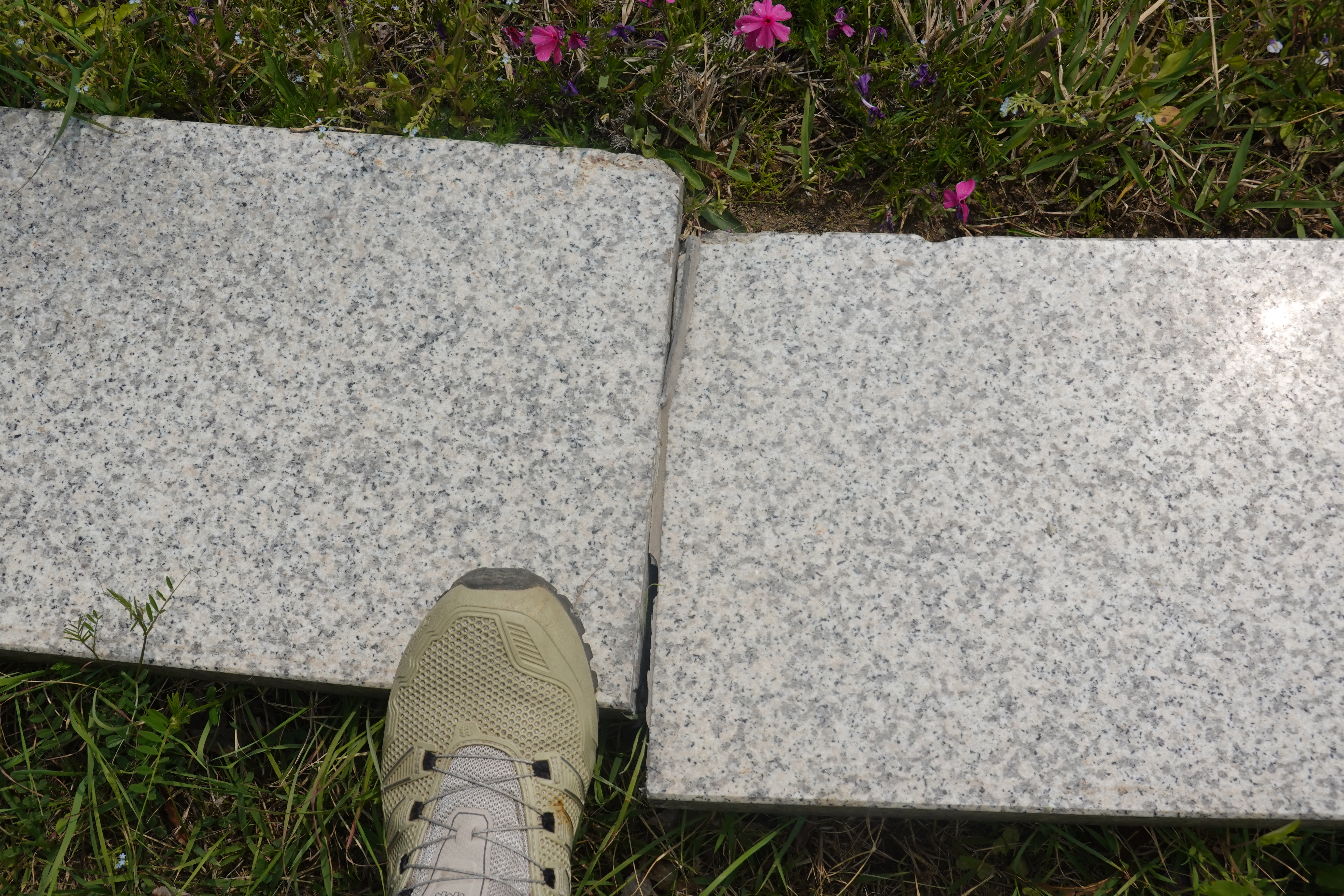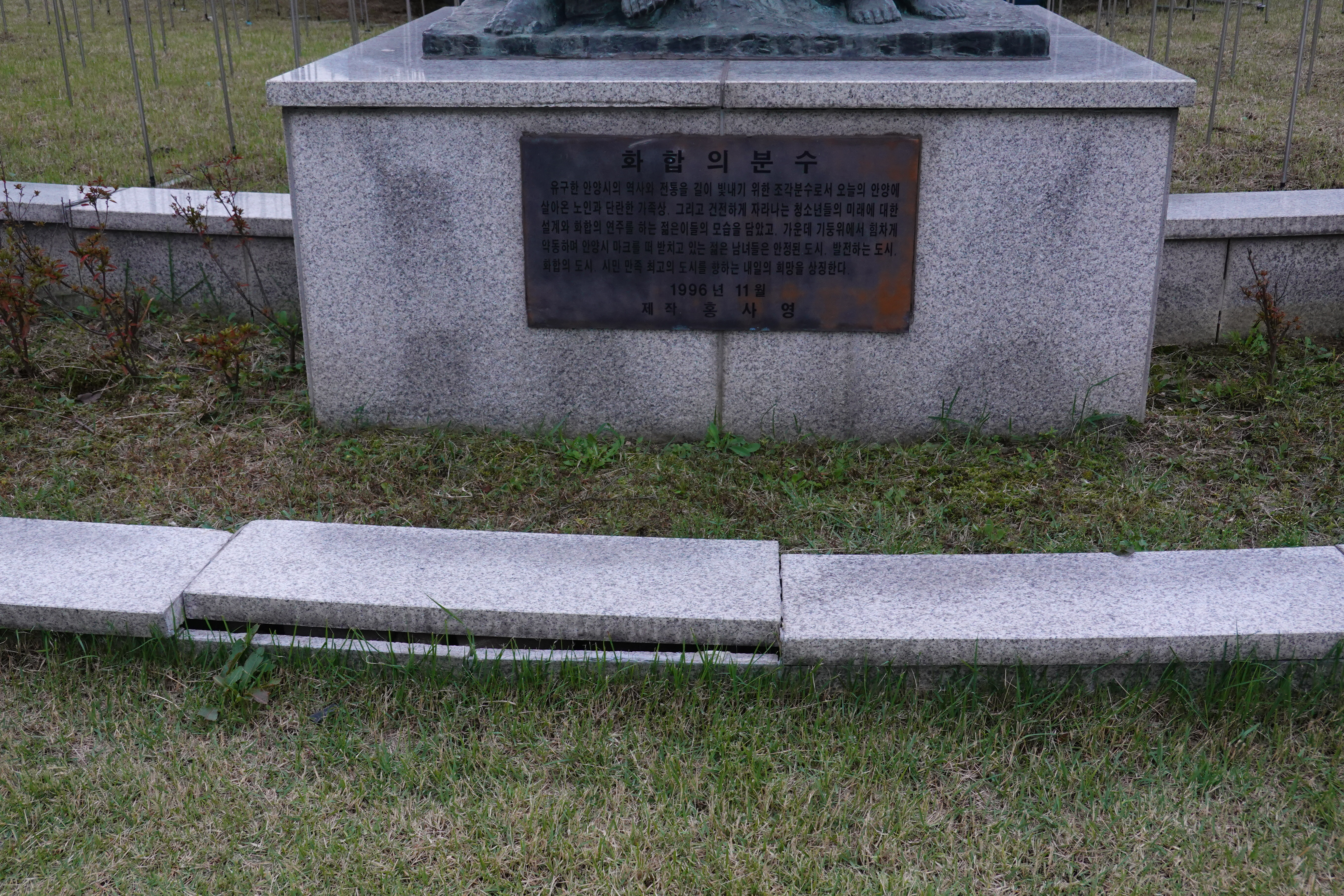 2023.05.00/ #도시기록 #에공 #안양시청/ 세월앞에 장사 없다고1996년 11월 안양시청과 안양시의회 중간 정원에 설치된 조형물(화합의분수) 둘레를 원형으로 감싸고 도는 바닥 대리석 돌들이 들뜨고 벌어지고 흔들거리는 상태로 보수가 필요해 보인다.