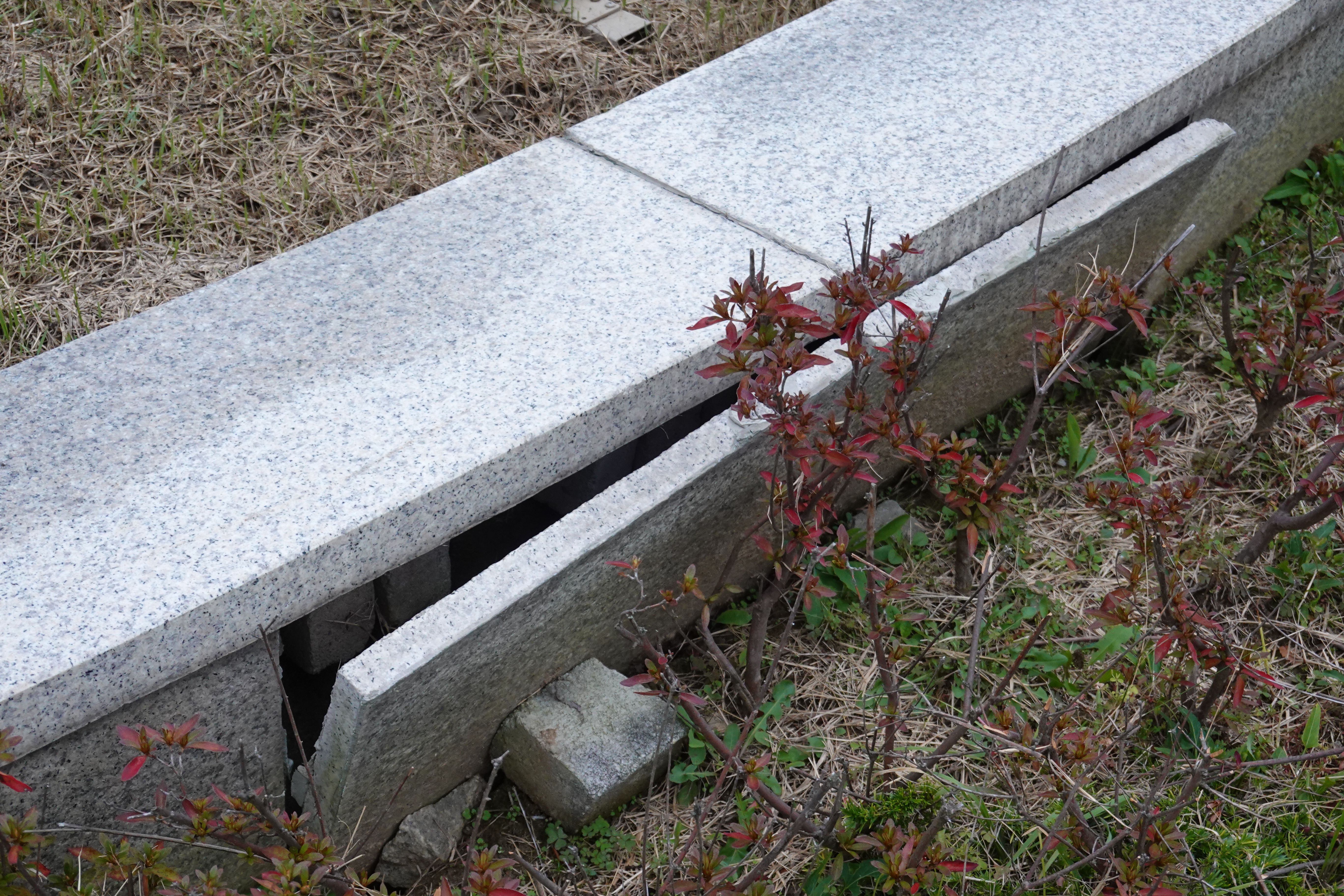 2023.05.00/ #도시기록 #에공 #안양시청/ 세월앞에 장사 없다고1996년 11월 안양시청과 안양시의회 중간 정원에 설치된 조형물(화합의분수) 둘레를 원형으로 감싸고 도는 바닥 대리석 돌들이 들뜨고 벌어지고 흔들거리는 상태로 보수가 필요해 보인다.