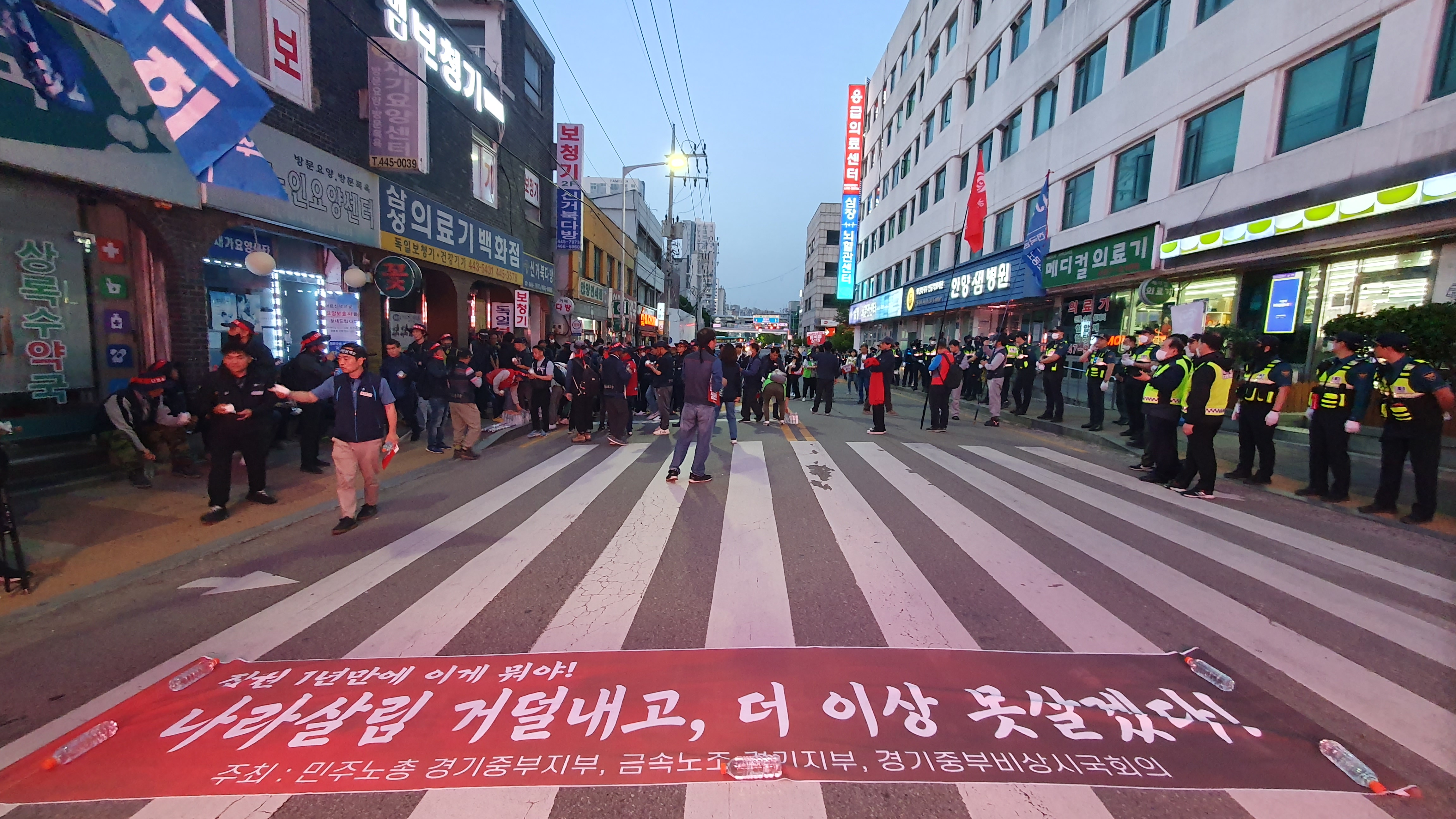 - 윤석열 대통령은 민주주의 짓밟는 노동탄압 공안탄압 언론탄압 야당탄압 중단하라!