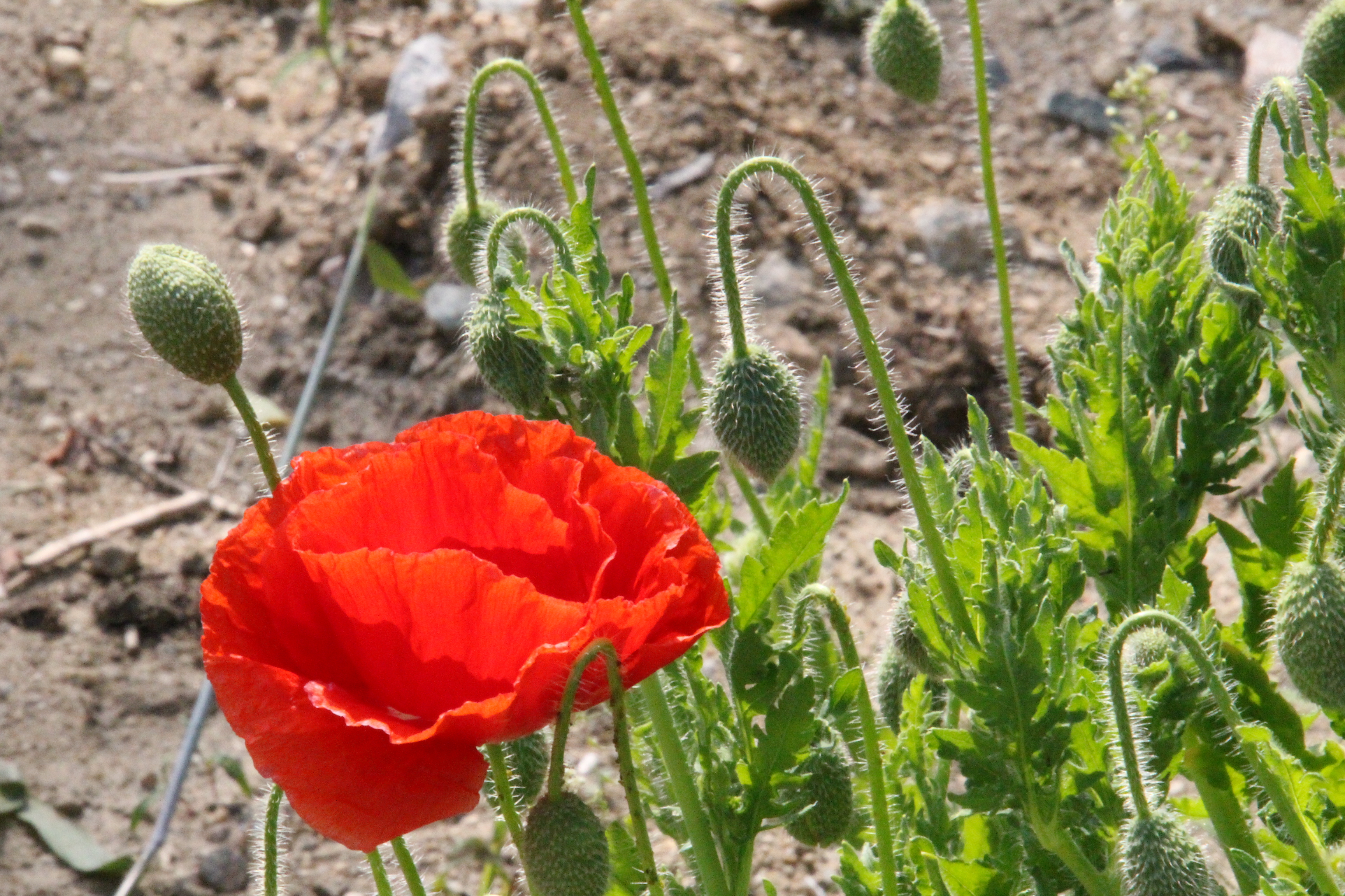 관상용 양귀비 : 줄기에 털이 많고, 털로 인해서 꺼끌꺼끌하다.