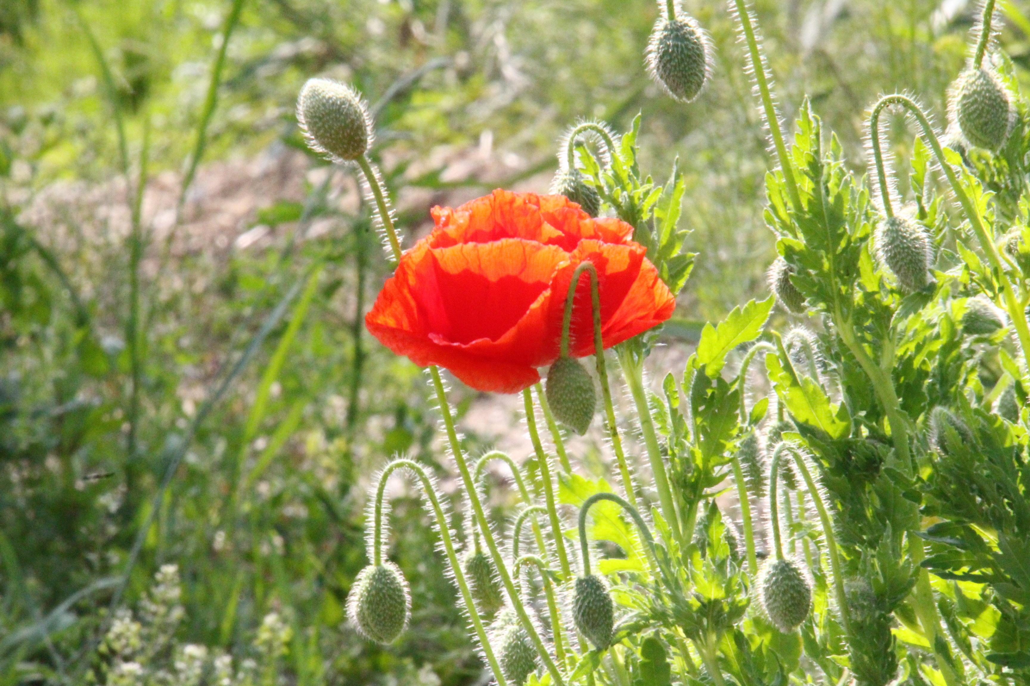 관상용 양귀비 : 줄기에 털이 많고, 털로 인해서 꺼끌꺼끌하다.