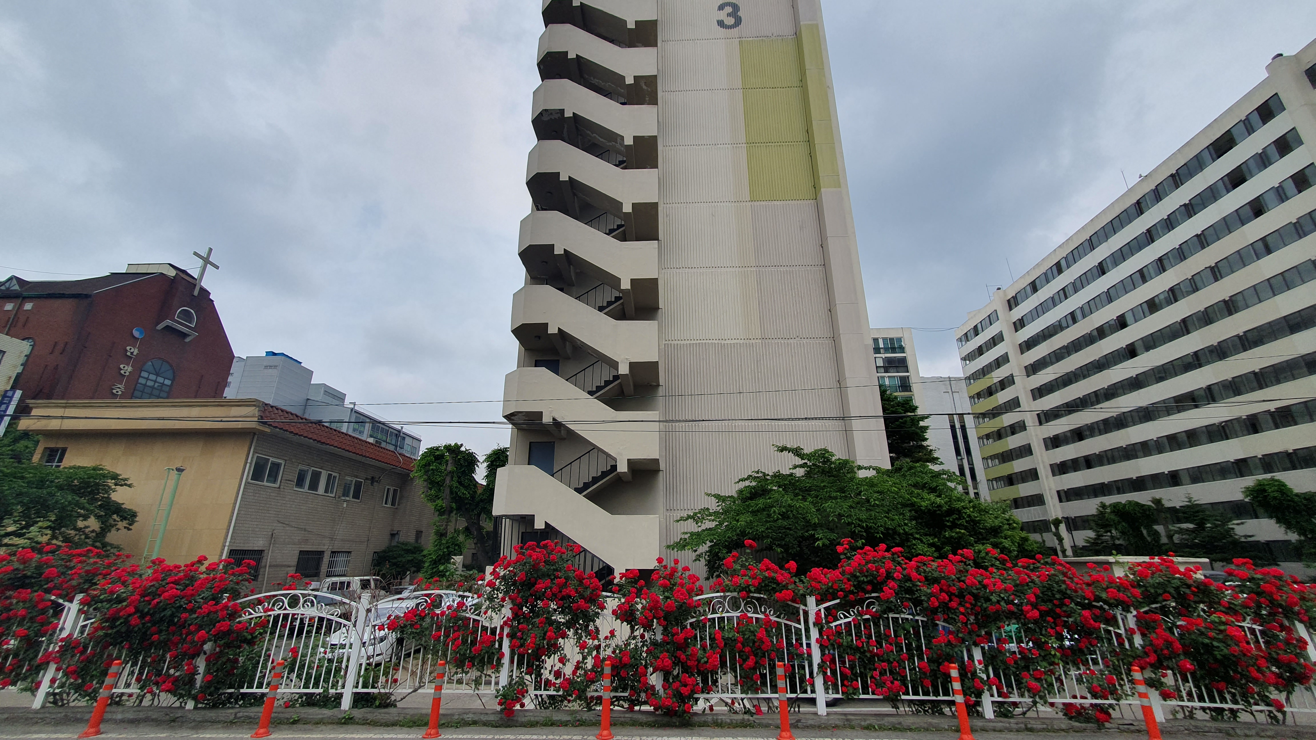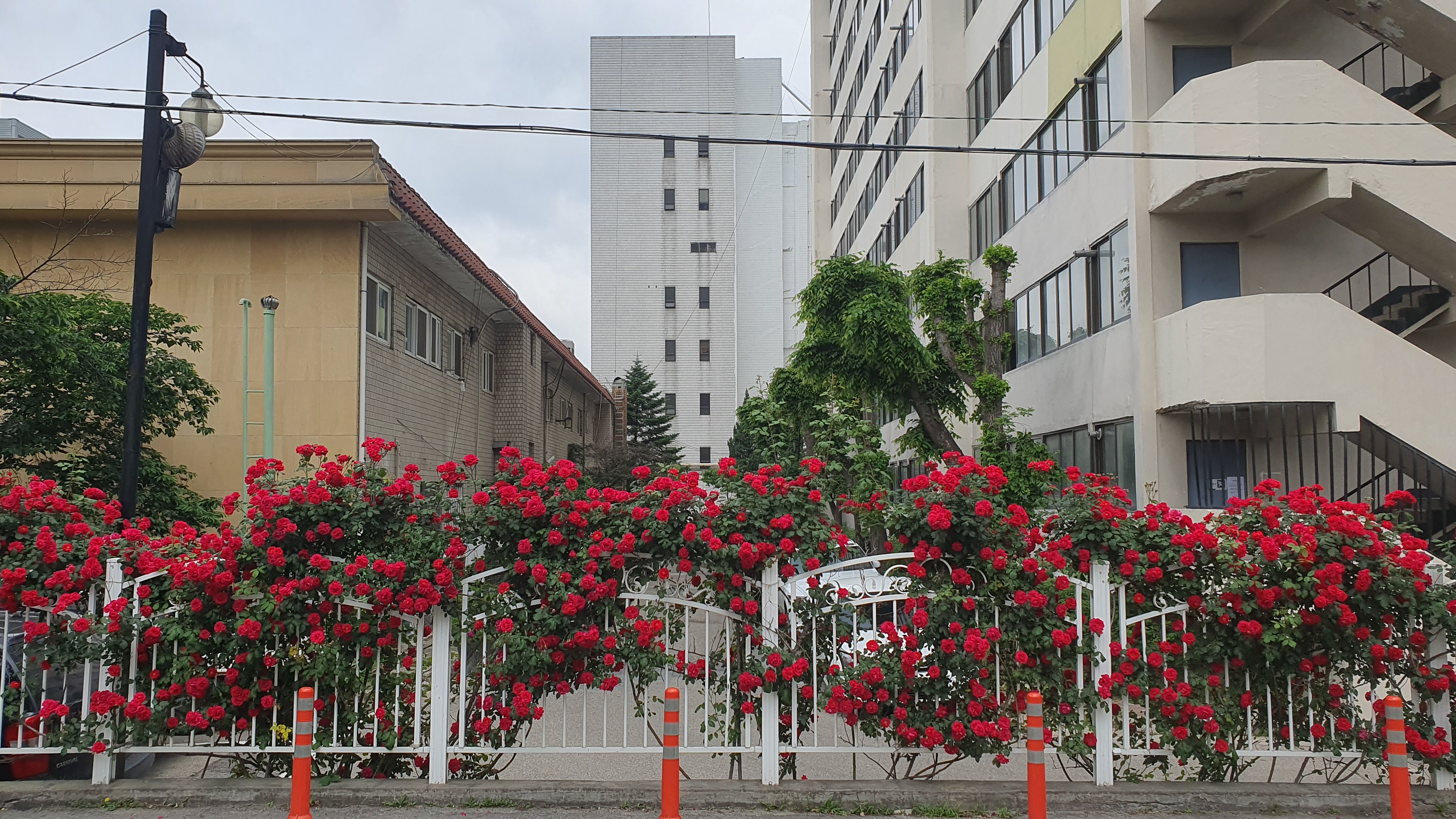 2023.05.18/ #도시기록 #장미꽃담장 #안양4돟 #박산아파트/ 안양4동 2001아울렛 뒷쪽에 자리한 벽산아파트 담장에 빨간 장미꽃이 만발. 아파트 출입구 좌우 담장을 따라 길게 피었는데 멋지네요.