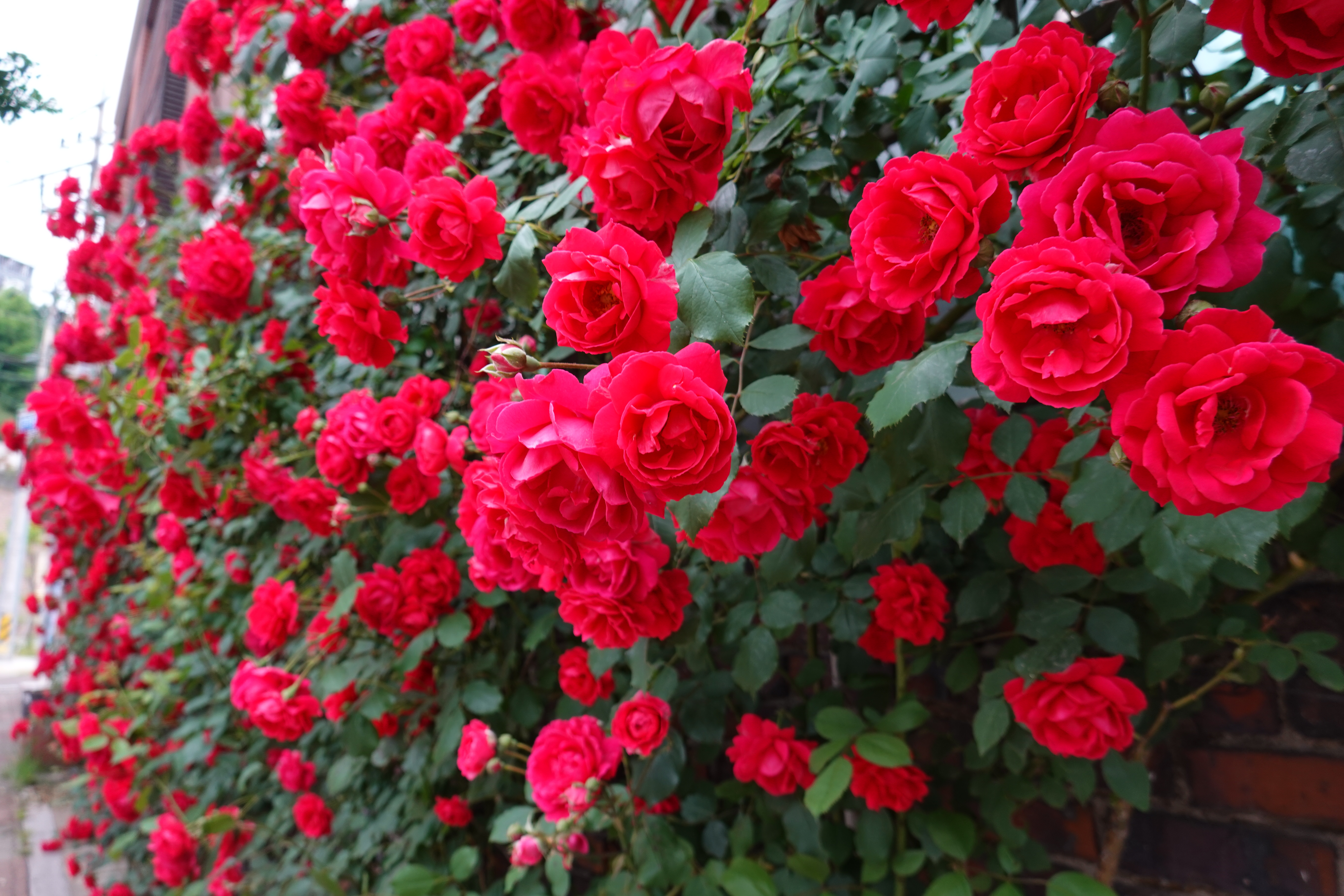 2023.05.18/ #도시기록 #장미꽃담벼락 #안양6돟/ 매년 5월이면 장미꽃 담벼락으로 유명한 안양6동 만안경찰서 앞 수리산로 삼거리 1번지 집앞. 금년에도 빨간 장미꽃이 화려하게 만발해 지나치는 사람들의 발걸음을 멈추게 합니다.