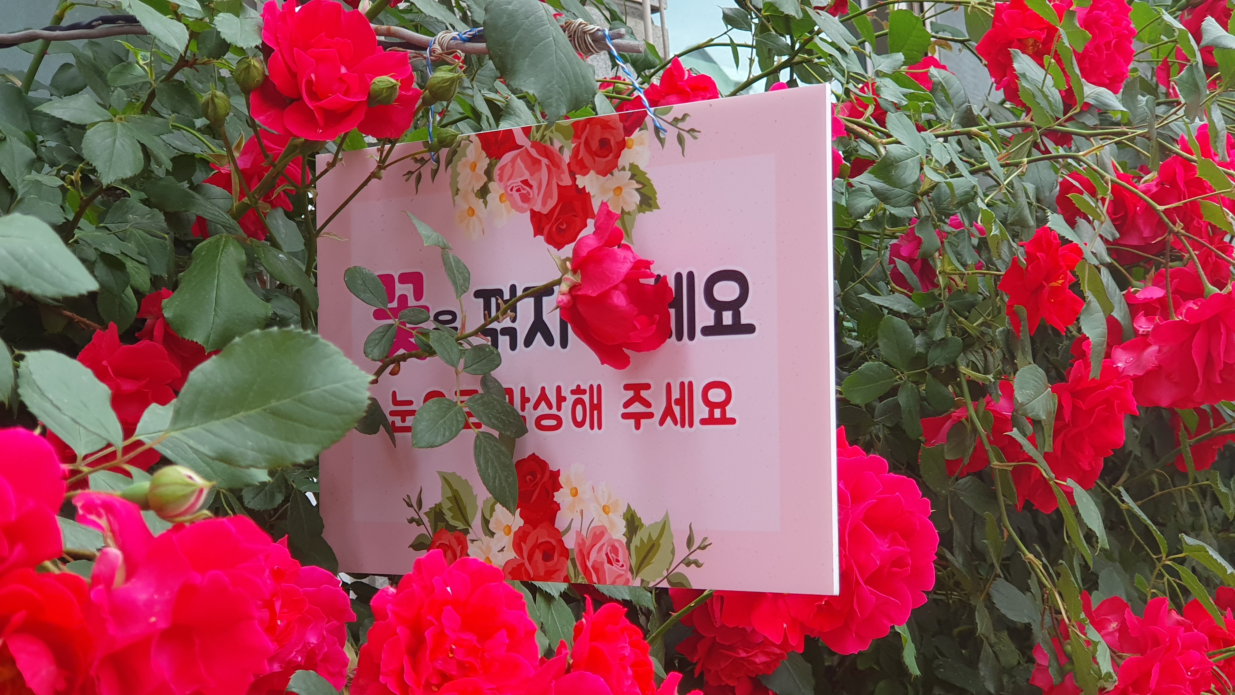 2023.05.18/ #도시기록 #장미꽃담벼락 #안양6돟/ 매년 5월이면 장미꽃 담벼락으로 유명한 안양6동 만안경찰서 앞 수리산로 삼거리 1번지 집앞. 금년에도 빨간 장미꽃이 화려하게 만발해 지나치는 사람들의 발걸음을 멈추게 합니다.