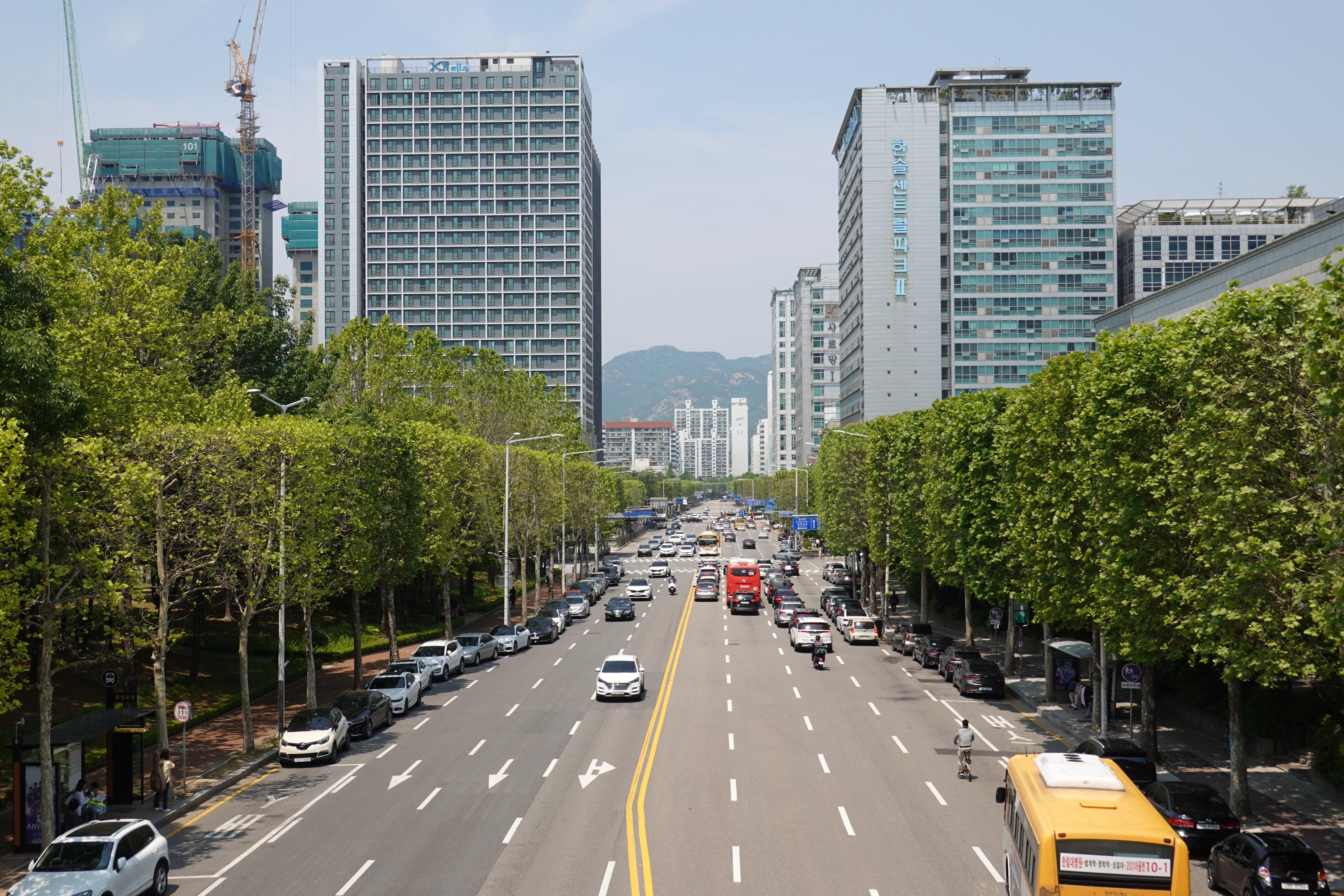 2023.05.13/ #도시기록 #가로수 #안양 #평촌 #관평로/ 안양 수촌교에서 농수산물도매시장사거리까지 연결되는 관평로 중간에 중앙공원과 한림대성심병원 사이 도로의 가로수들이 사각모양으로 마치 옛날 삼강 하드 아이스크림 형태로 가지치기(전지) 한 모습이 눈길을 끈다.