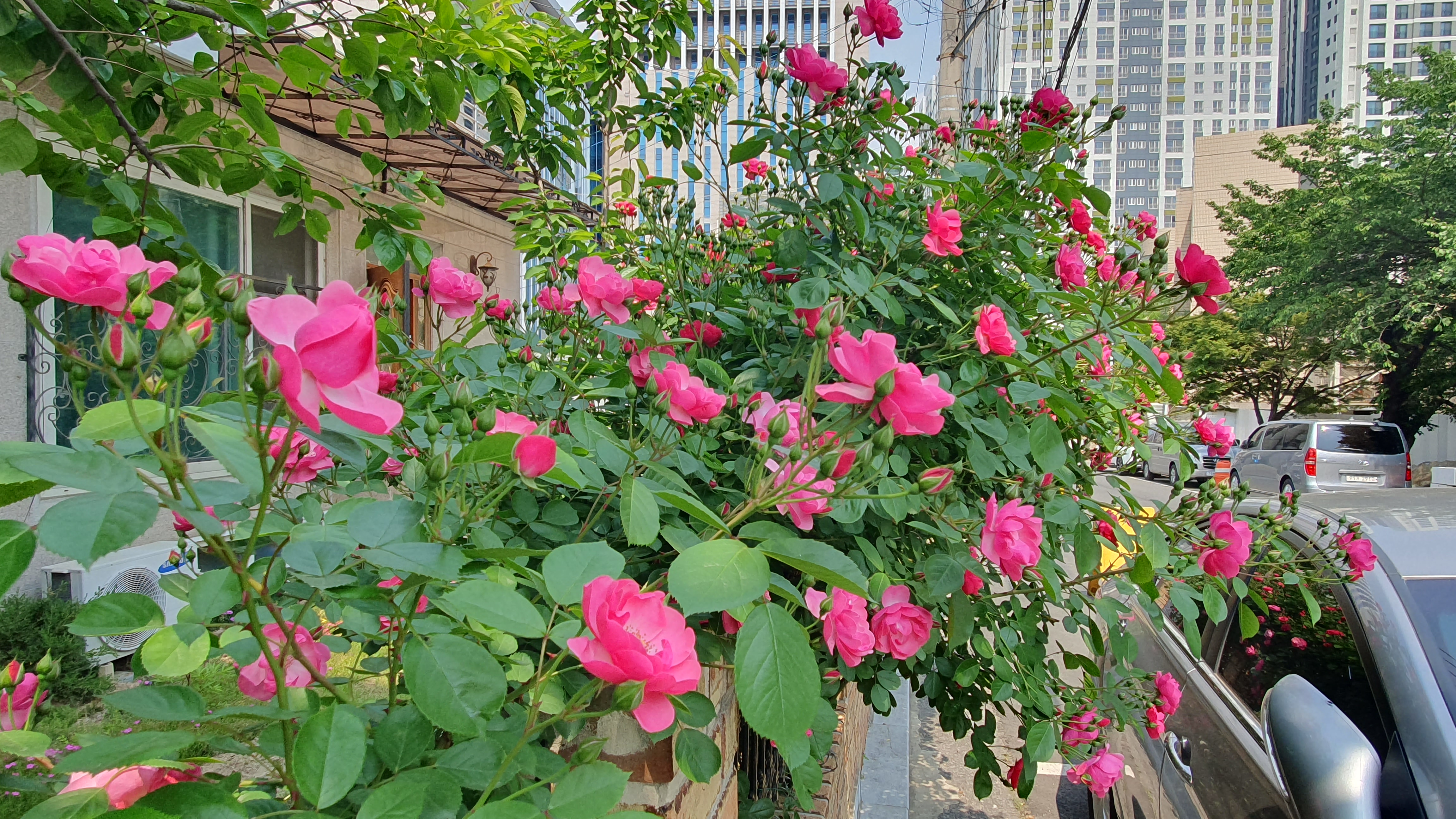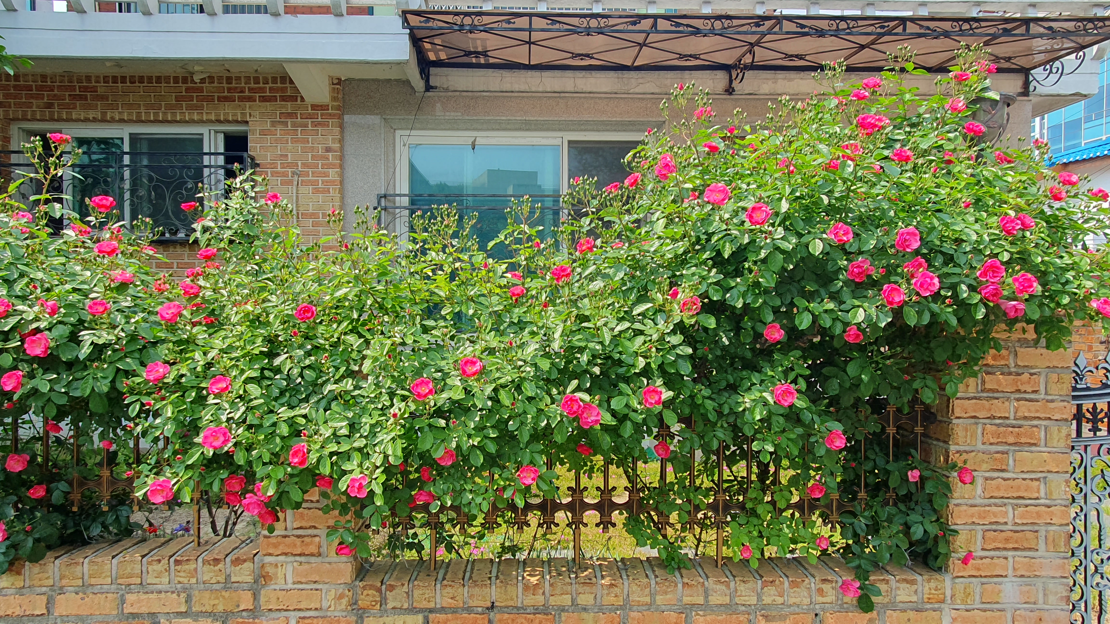 2023.05.16/ #도시기록 #장미꽃담장 #골목 #단독주택 #안양6동/ 안양6동 소곡로 44-6번지에 자리한 아담한 단독주택. 나즈막한 철 담장에 장미꽃이 만발. 빨간징미꽃도 있지만 쉽게 보지 못하는 분홍빛 장미꽃들이 예쁘게 피어 오가는 주민들의 시선을 사로잡네요.