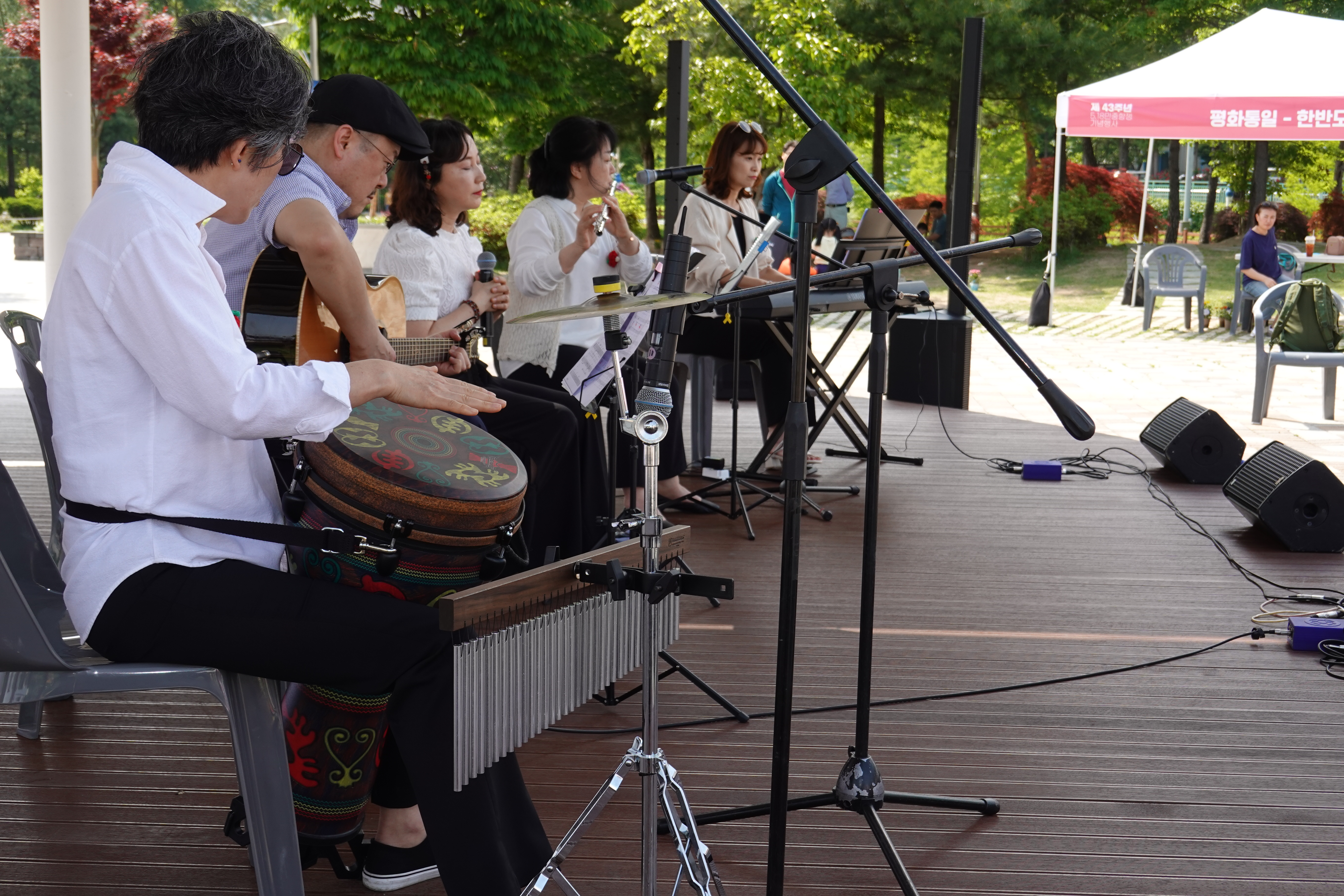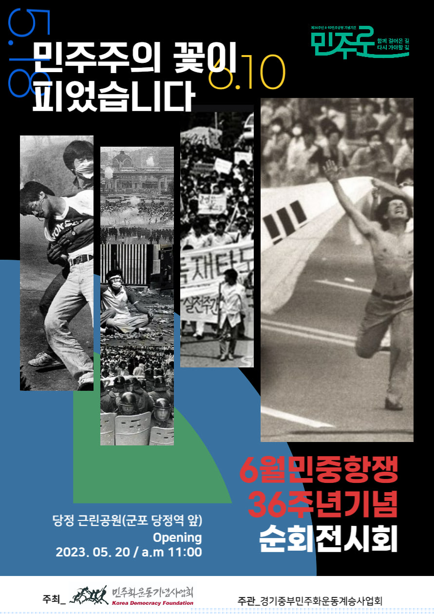 ‘오월의 정신을, 오월의 정의로!’라는 주제로 열린 이날 행사는 군포.안양.의왕의 시민사회단체 관계자들이 참여한 가운데 오전 11시부터 민주화운동사진전 및 체험부스 운영에 이어 오후 2시부터 기념식및 축하공연 등을 진행했다.