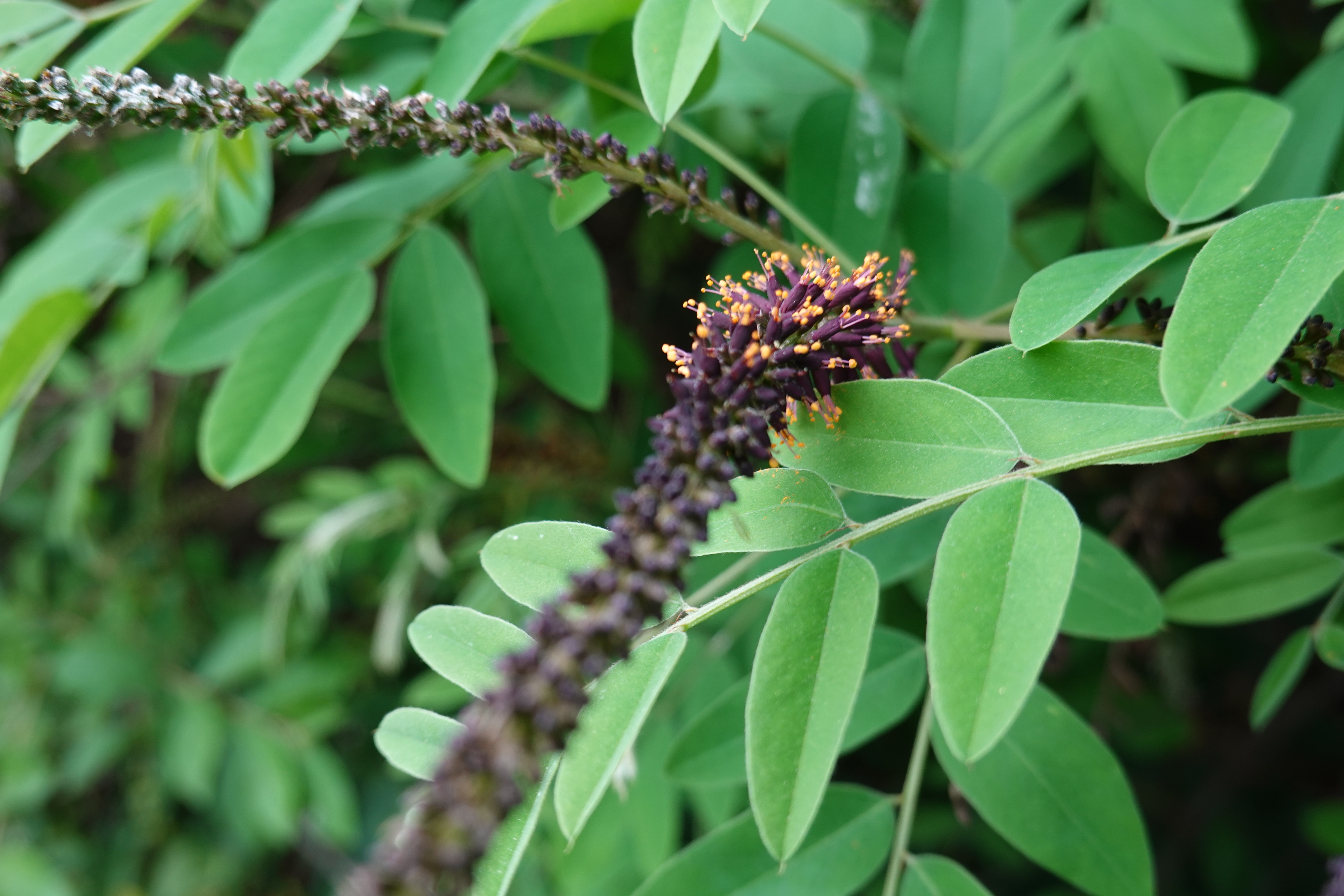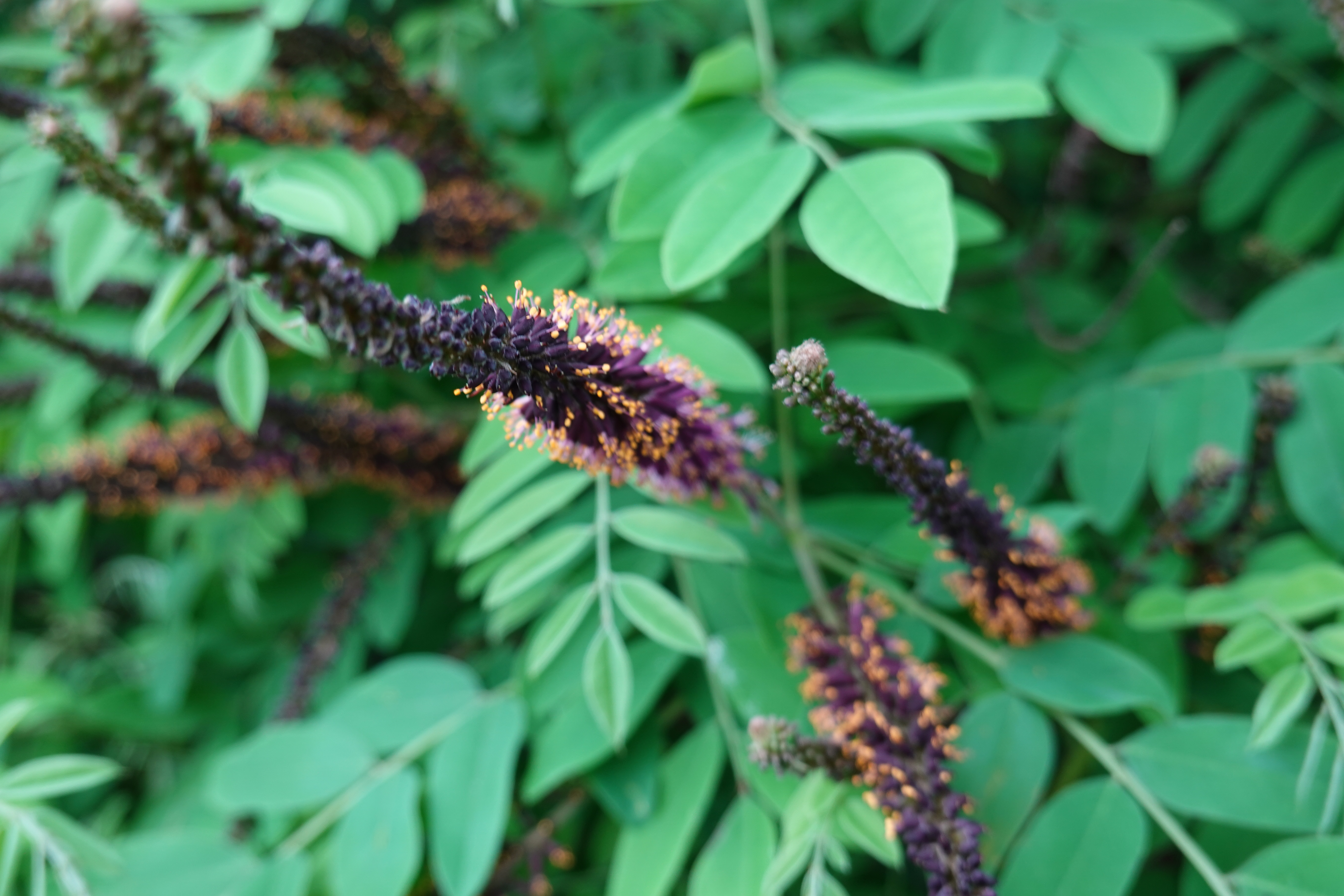 족제비싸리는 쌍떡잎식물 장미목 콩과의 낙엽관목으로 5~6월에 새 가지 끝에서 흑자색 족제비 꼬리 형상으로 송이꽃차례로 피는데 족제비싸리 꽃말은 생각이 나요, 상념, 사색 이라고 합니다.