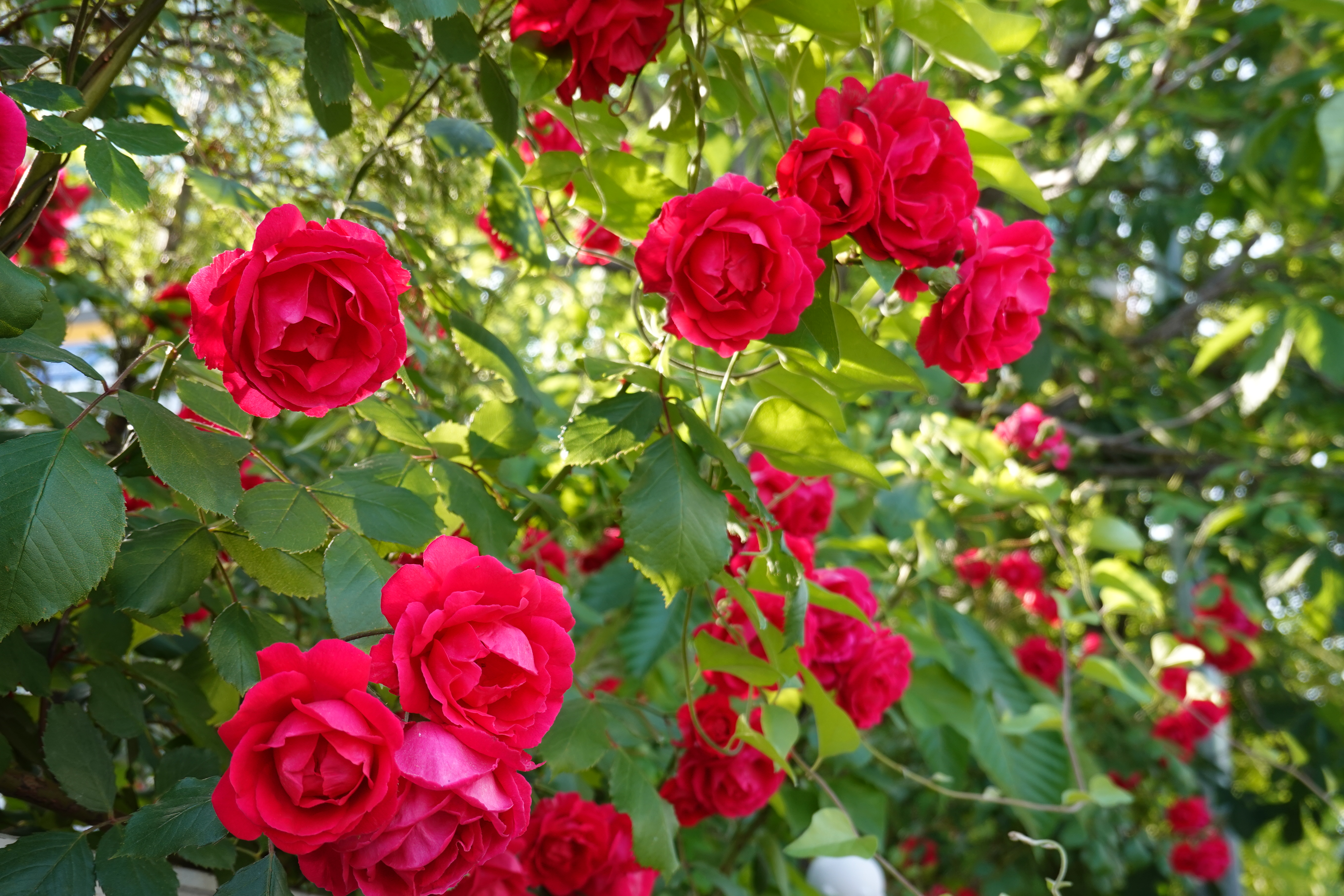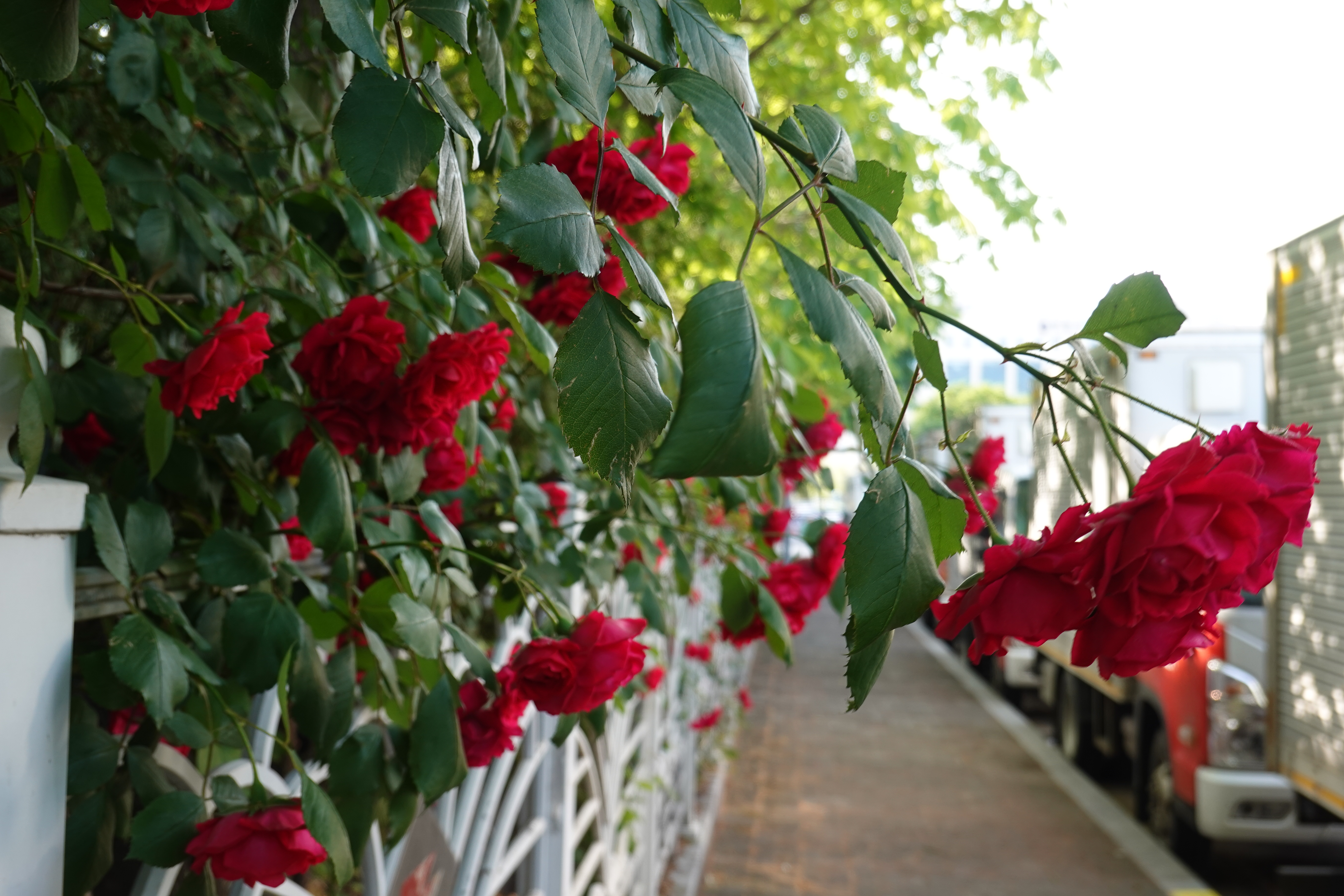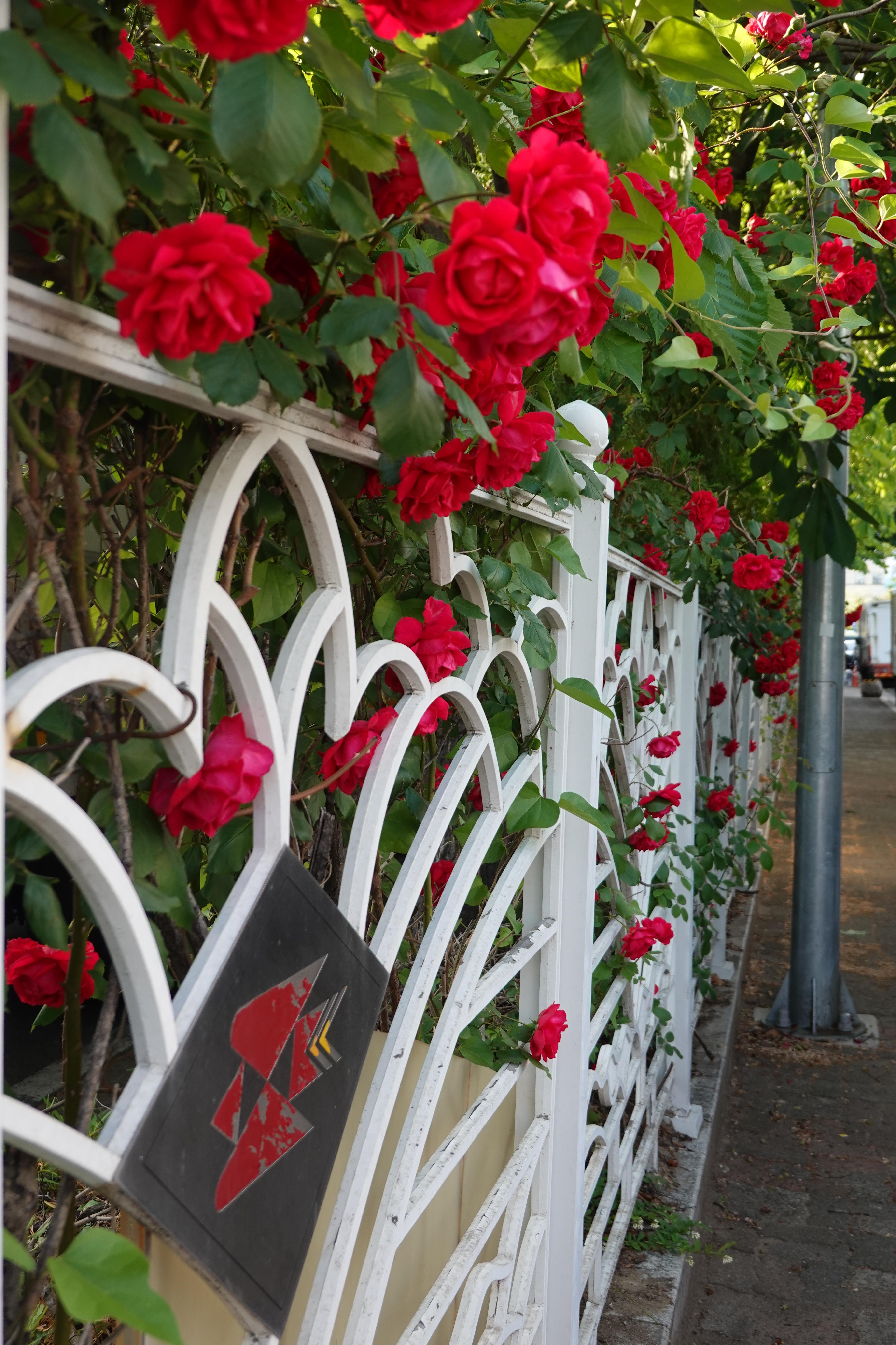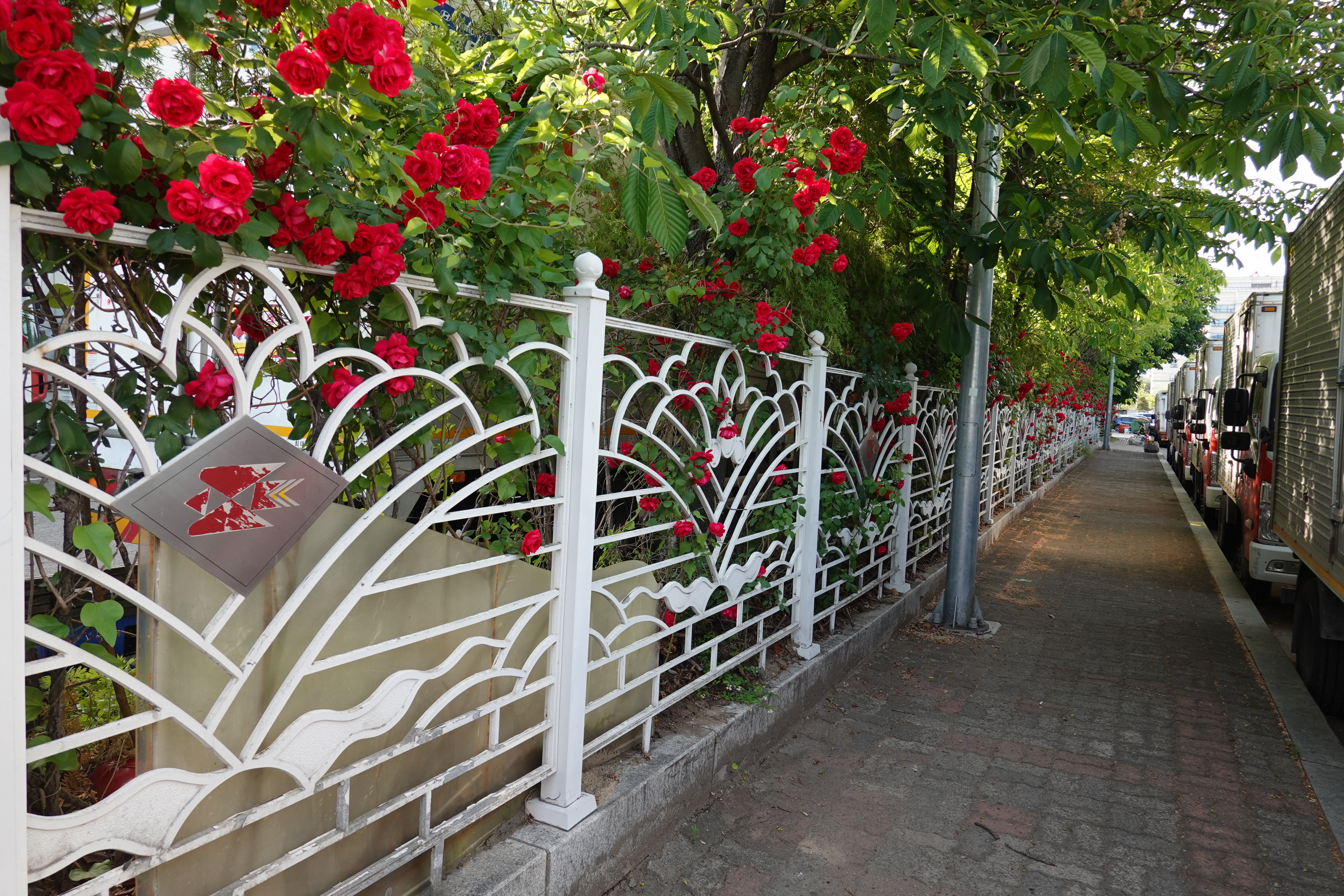 2023.05.20/ #도시기록 #장미덩쿨 #안양 #평촌/ 우편물집중국 담장에 활짝 핀 빨간 장미꽃 덩쿨