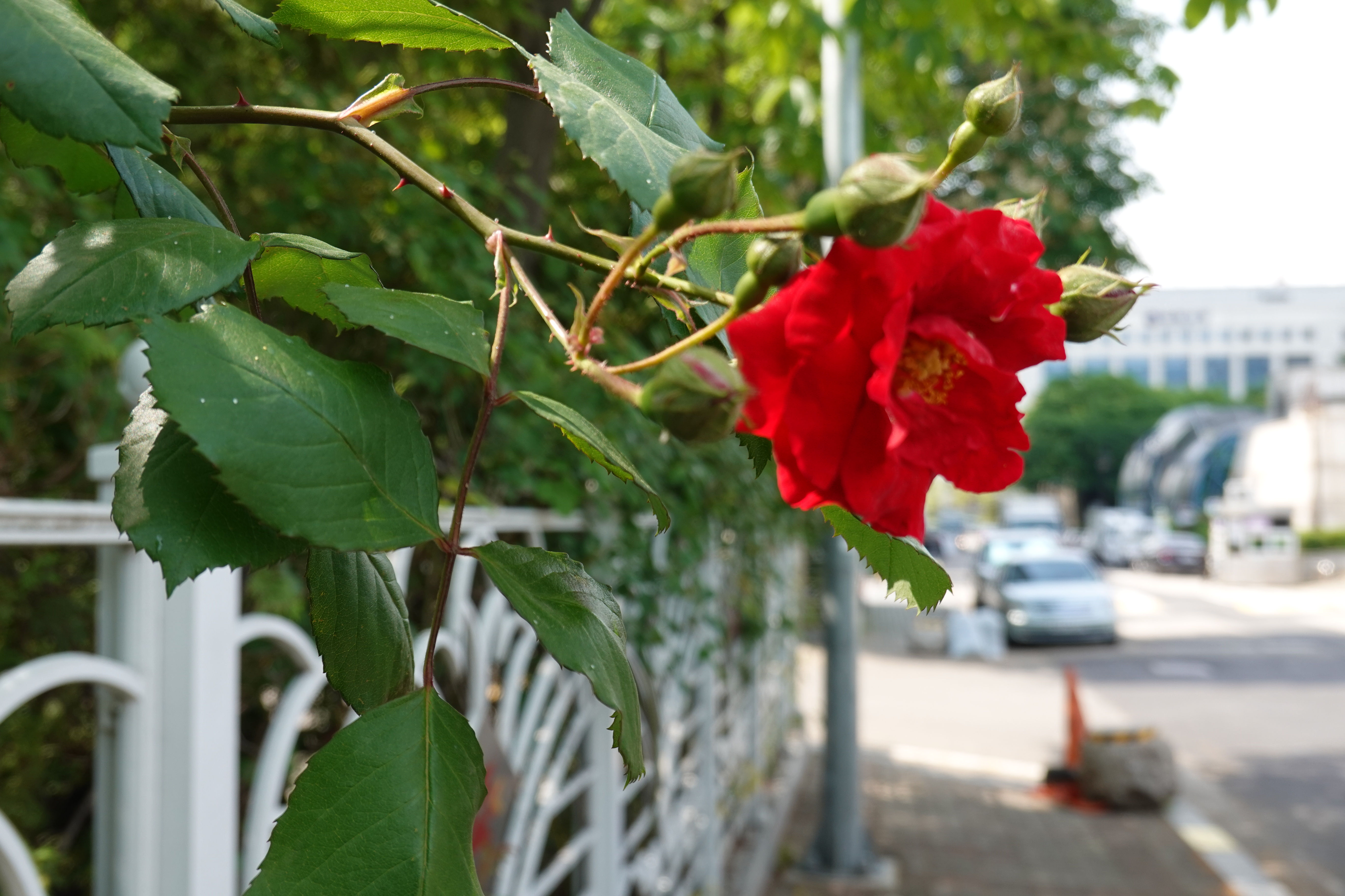 2023.05.20/ #도시기록 #장미덩쿨 #안양 #평촌/ 우편물집중국 담장에 활짝 핀 빨간 장미꽃 덩쿨