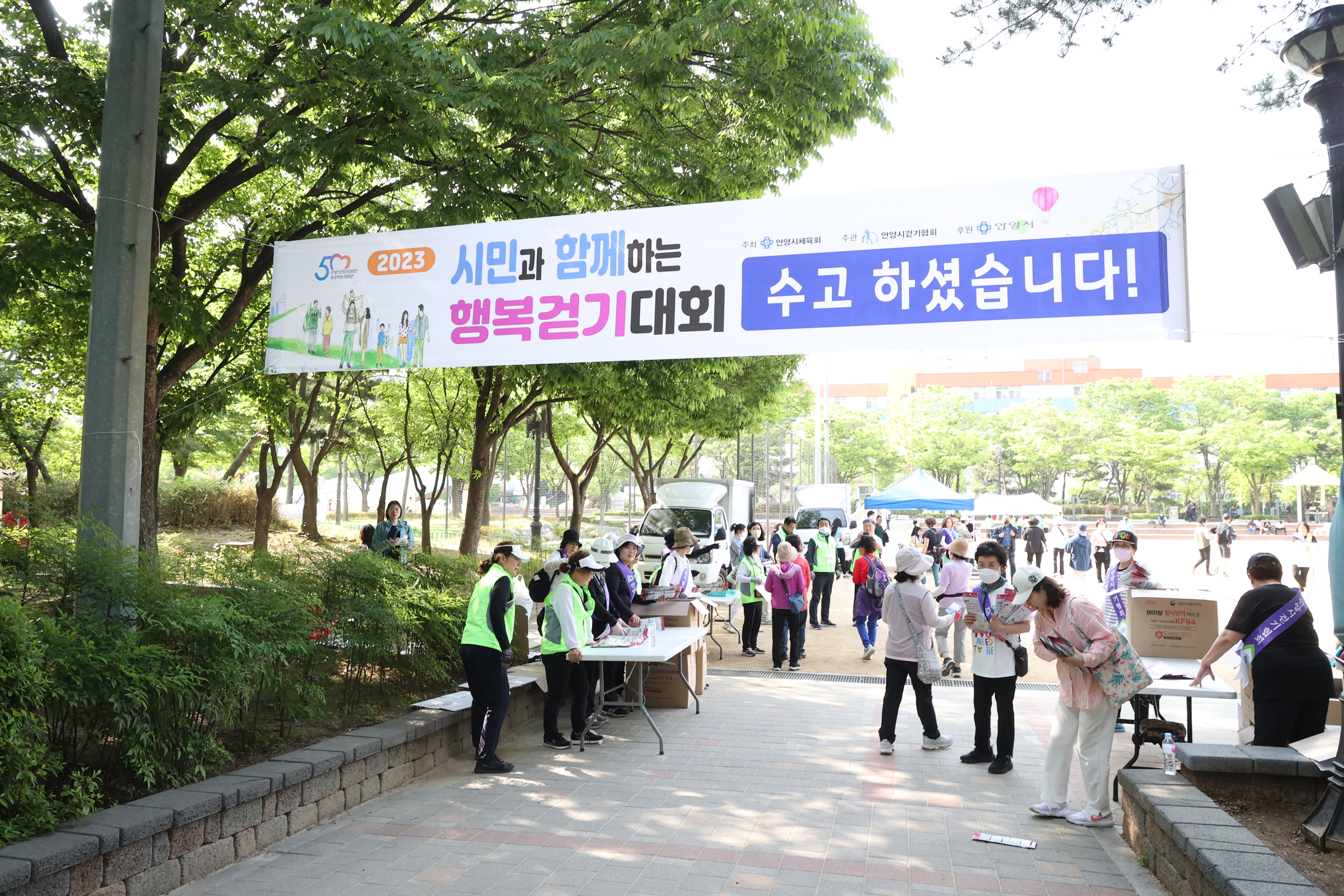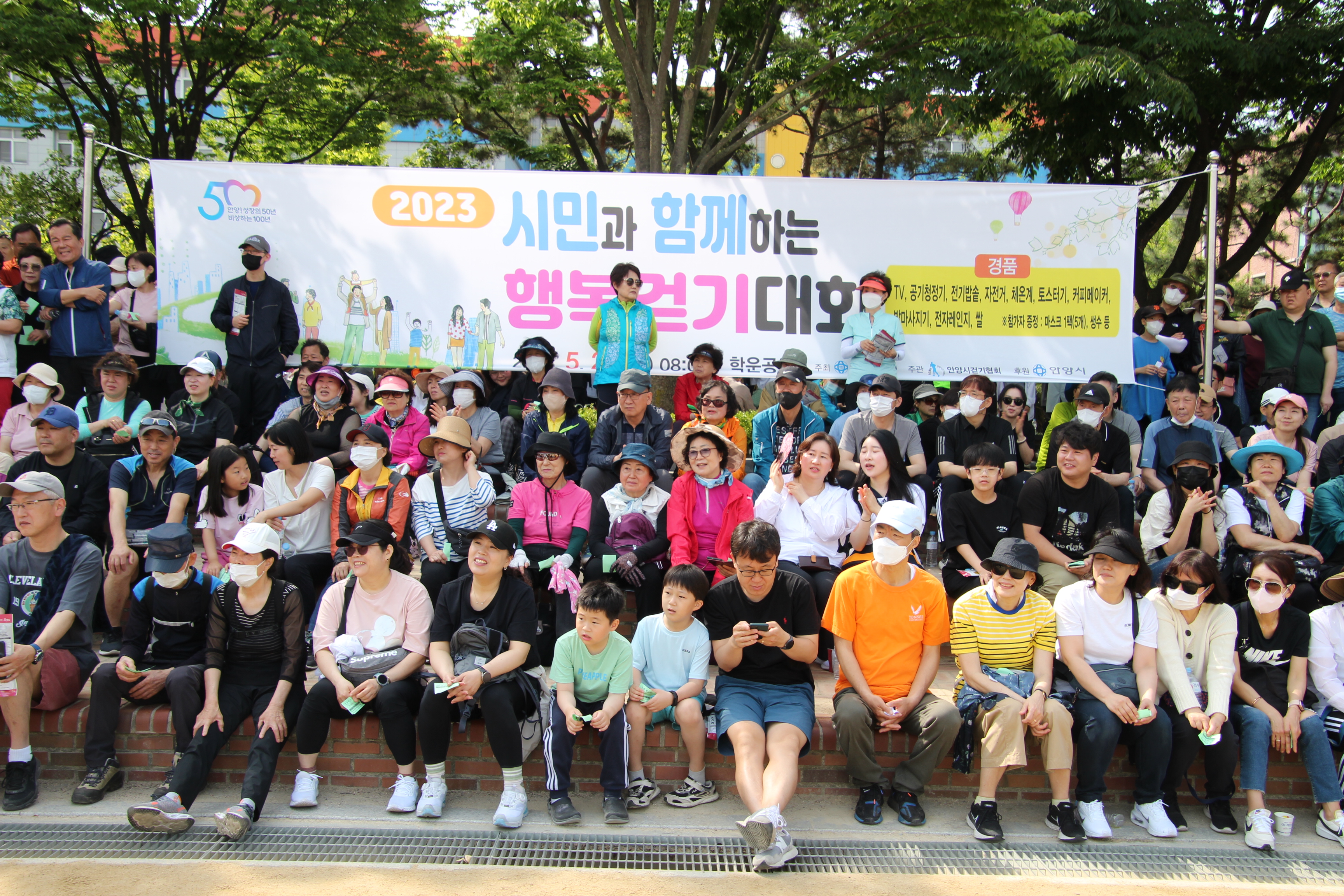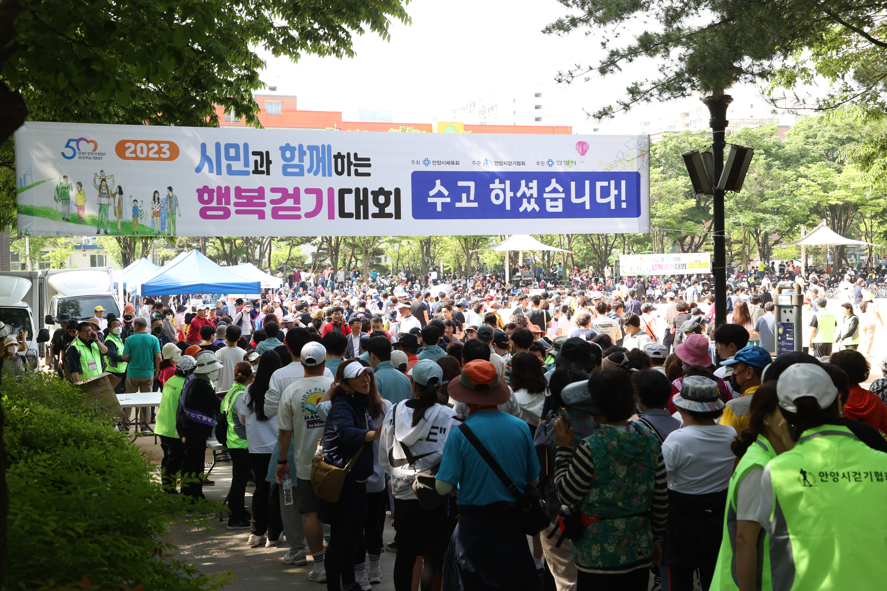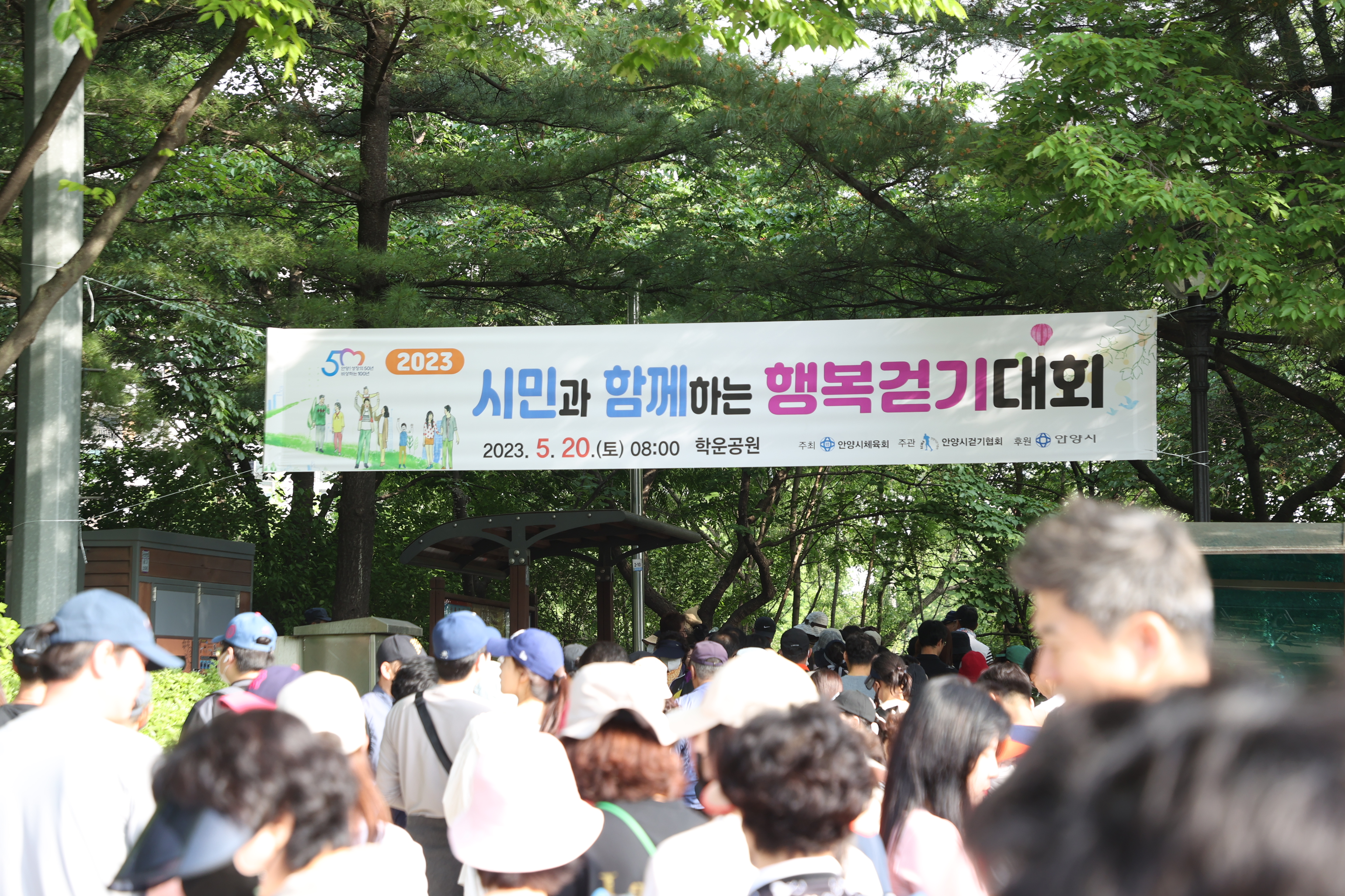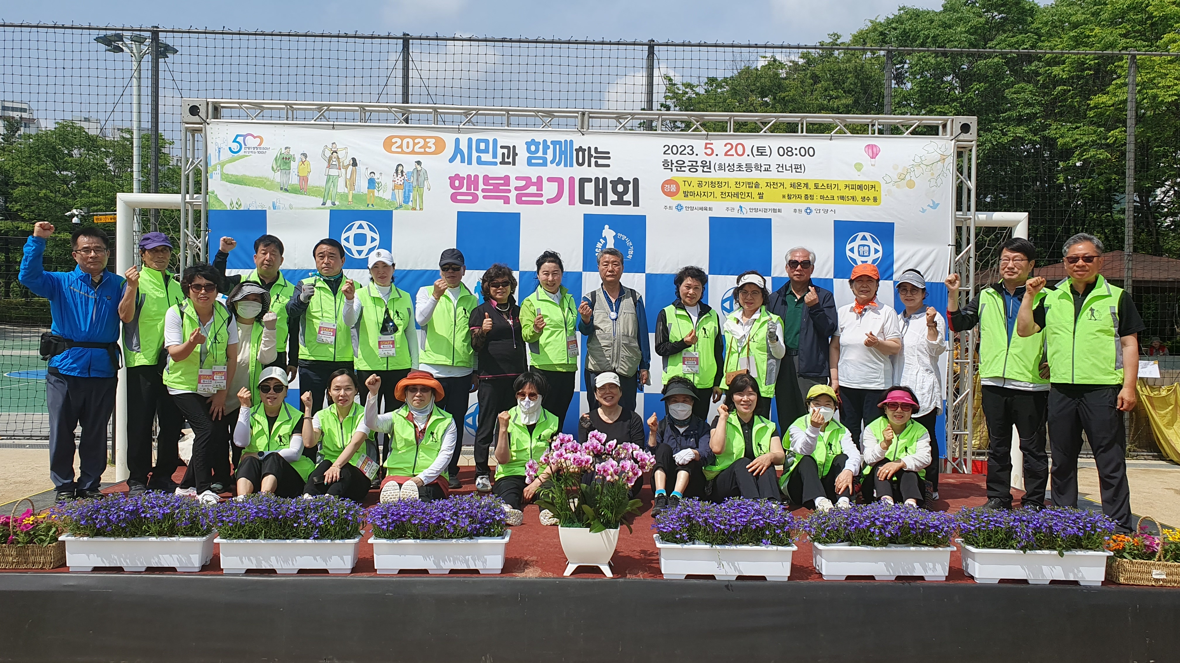해마다 실시되던 안양시민과 함께하는 행복 걷기대회가 코로나19로 중단됐다가 4년만에 다시 재개돼 지난 5월 20일 오전 8시 학운공원에서 개최되자 4천500여명의 엄청난 시민들이 몰려 대성황을 이루었다.
