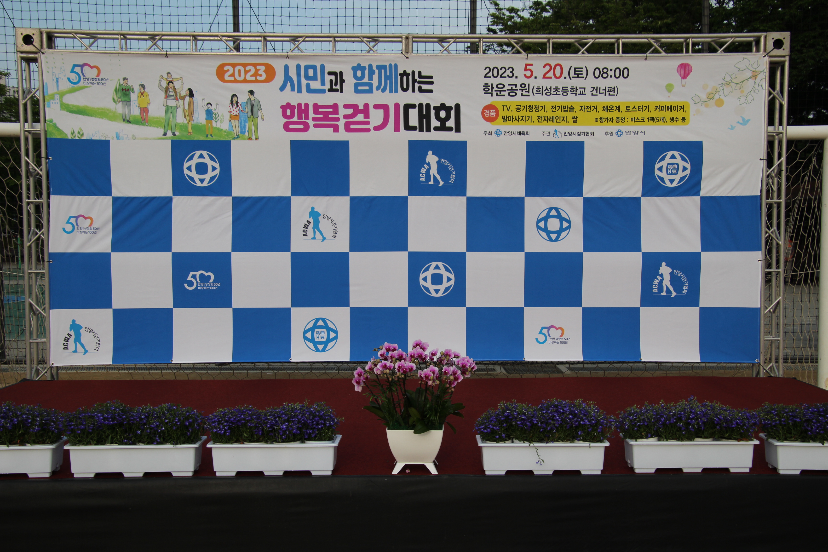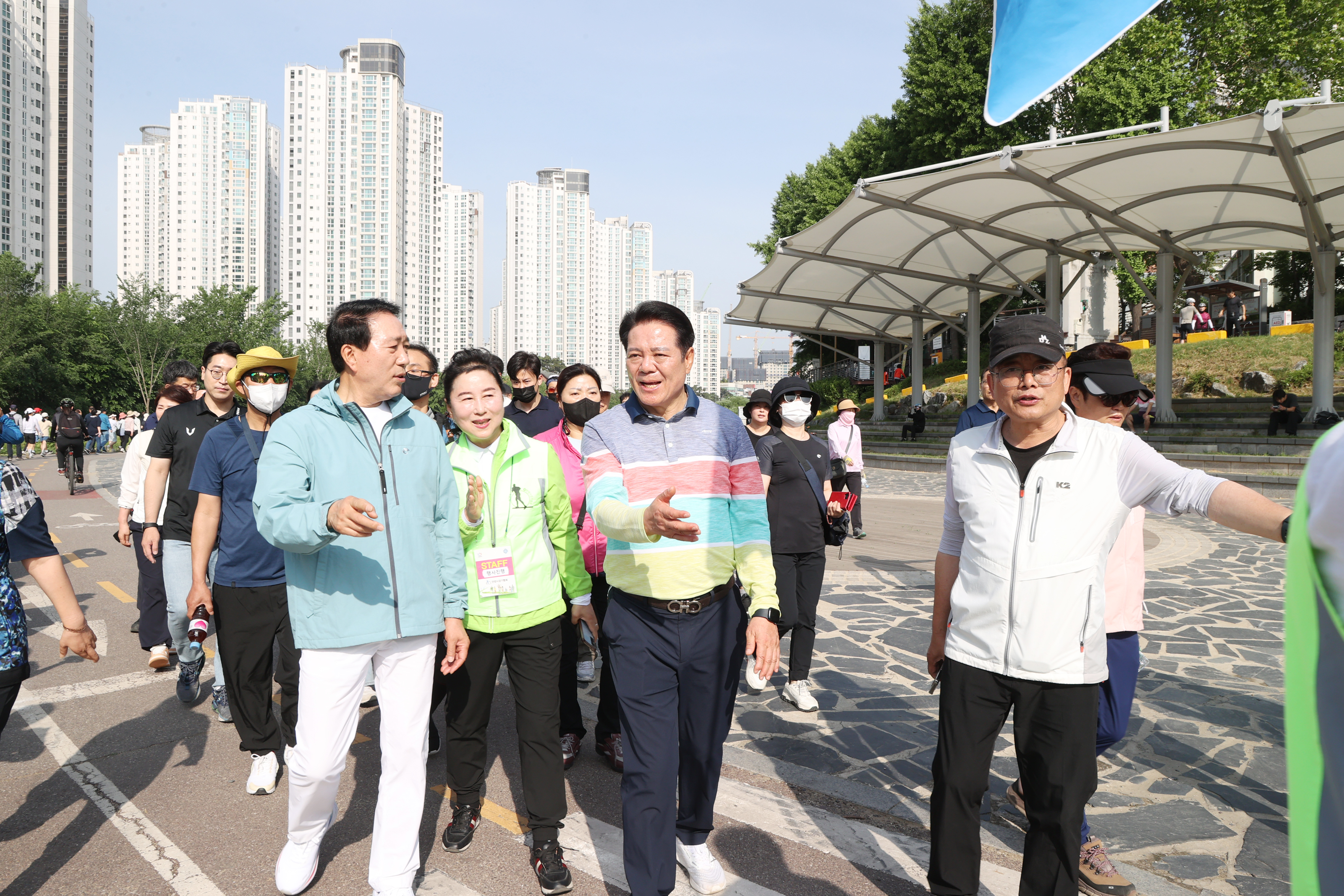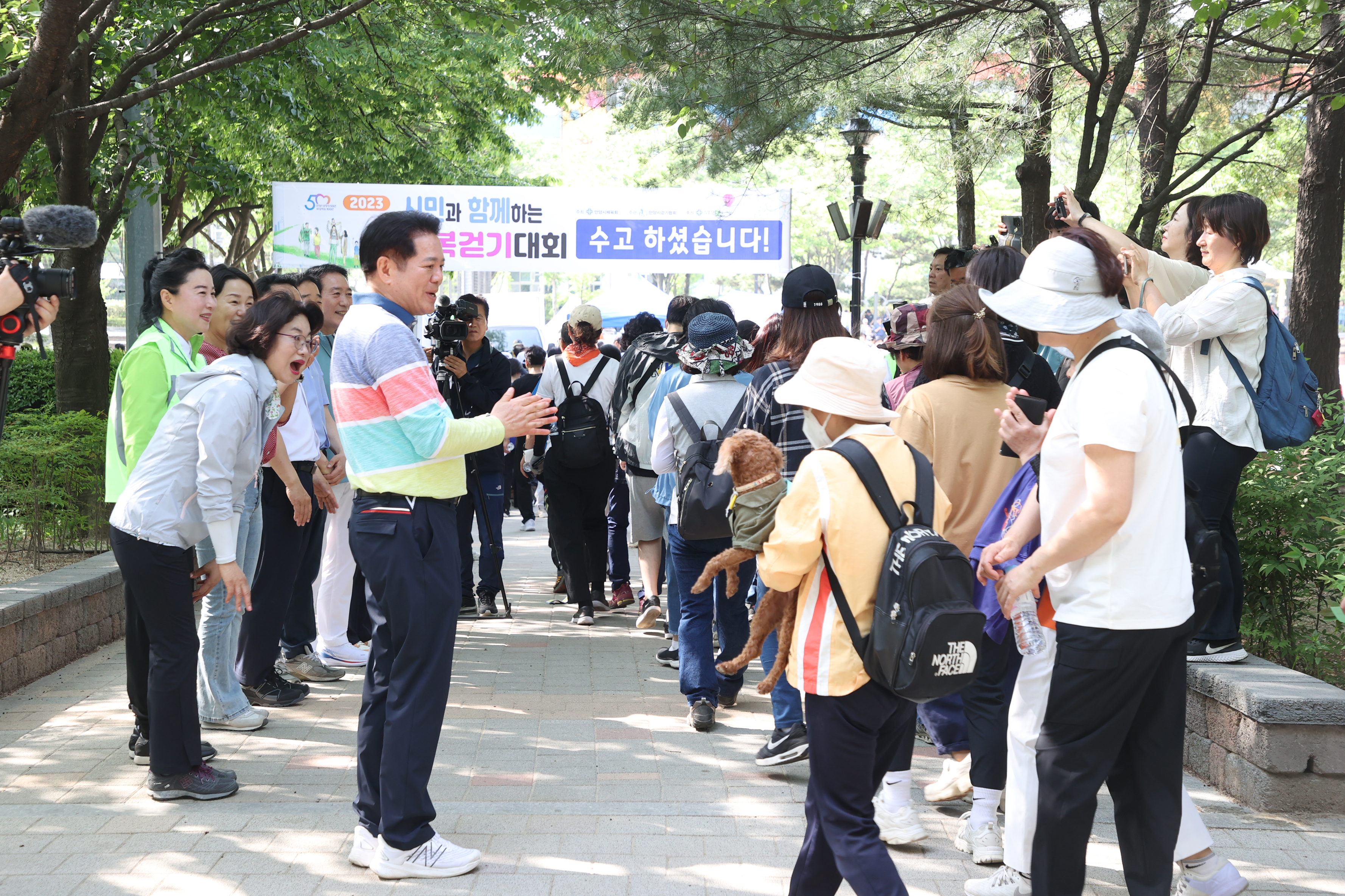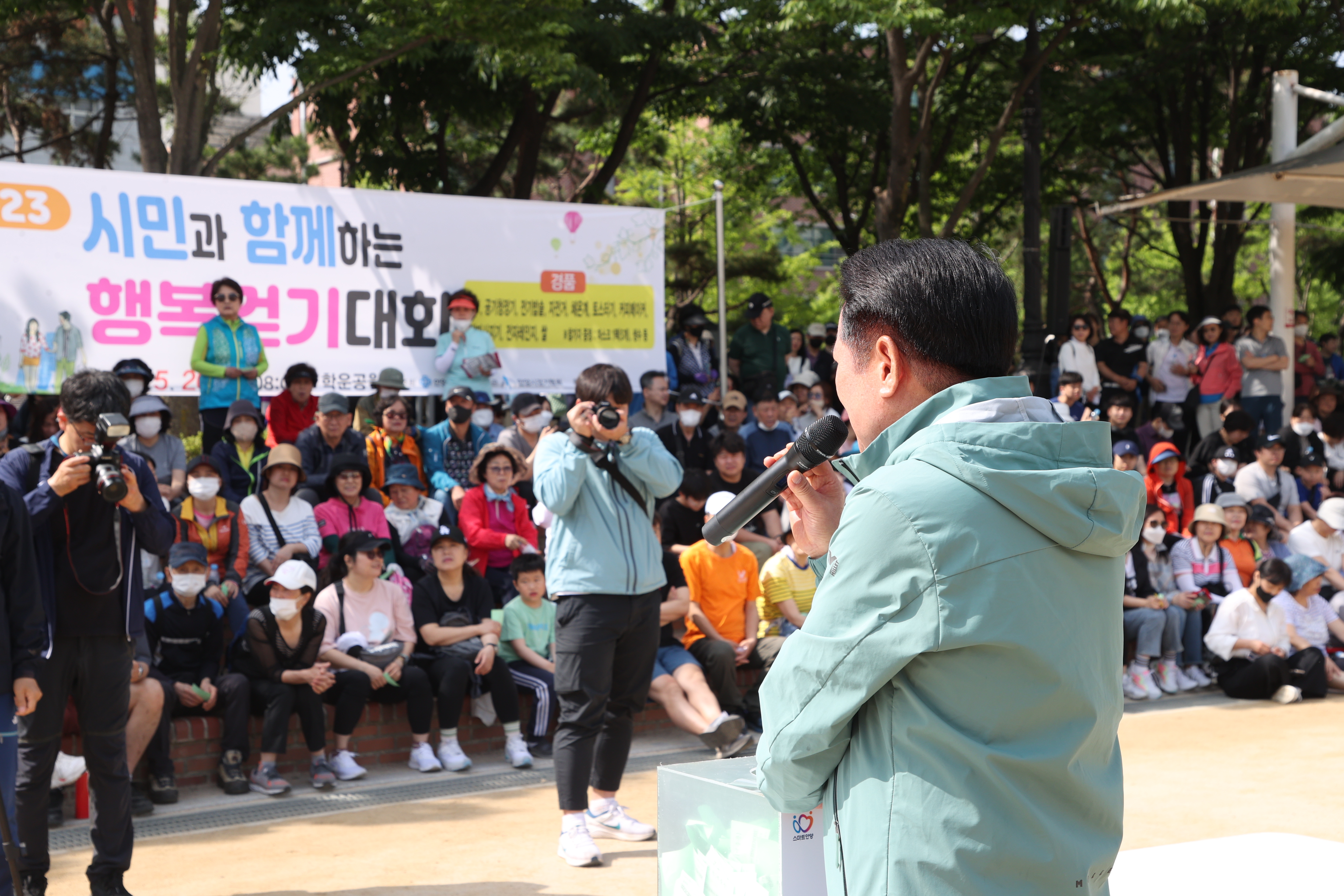 해마다 실시되던 안양시민과 함께하는 행복 걷기대회가 코로나19로 중단됐다가 4년만에 다시 재개돼 지난 5월 20일 오전 8시 학운공원에서 개최되자 4천500여명의 엄청난 시민들이 몰려 대성황을 이루었다.