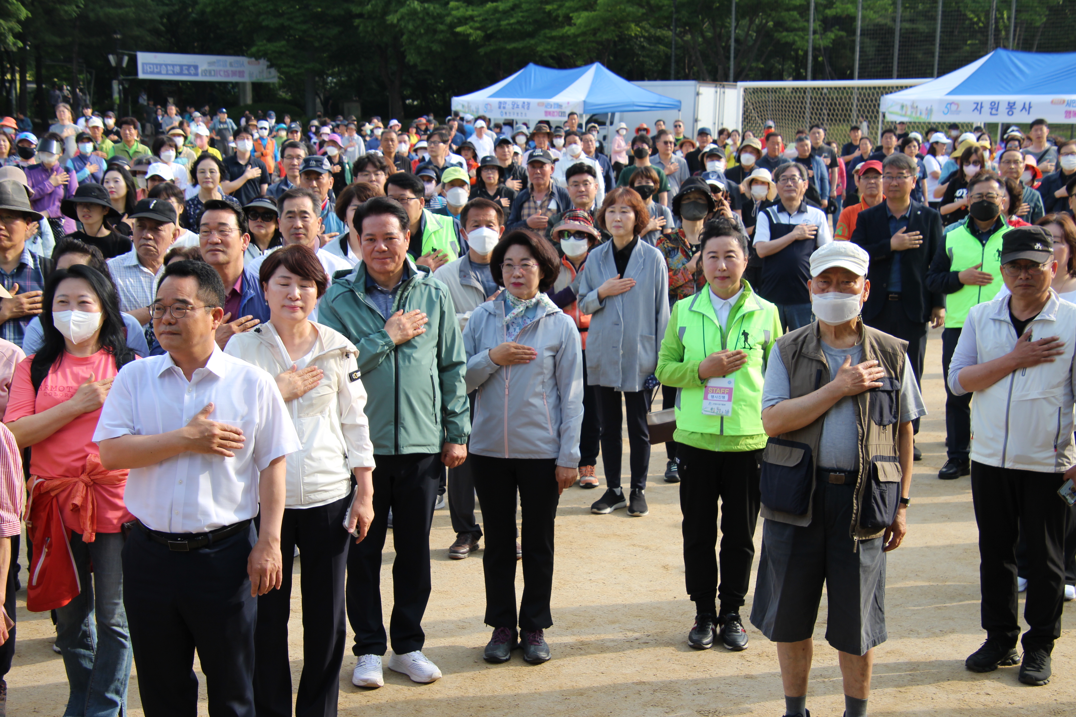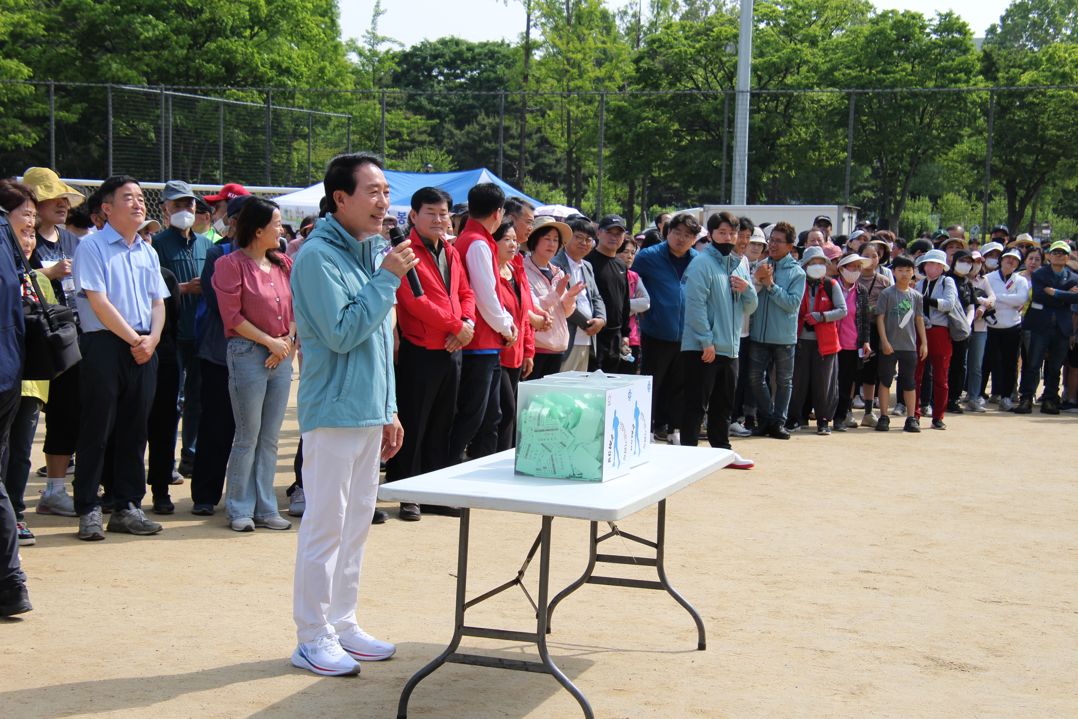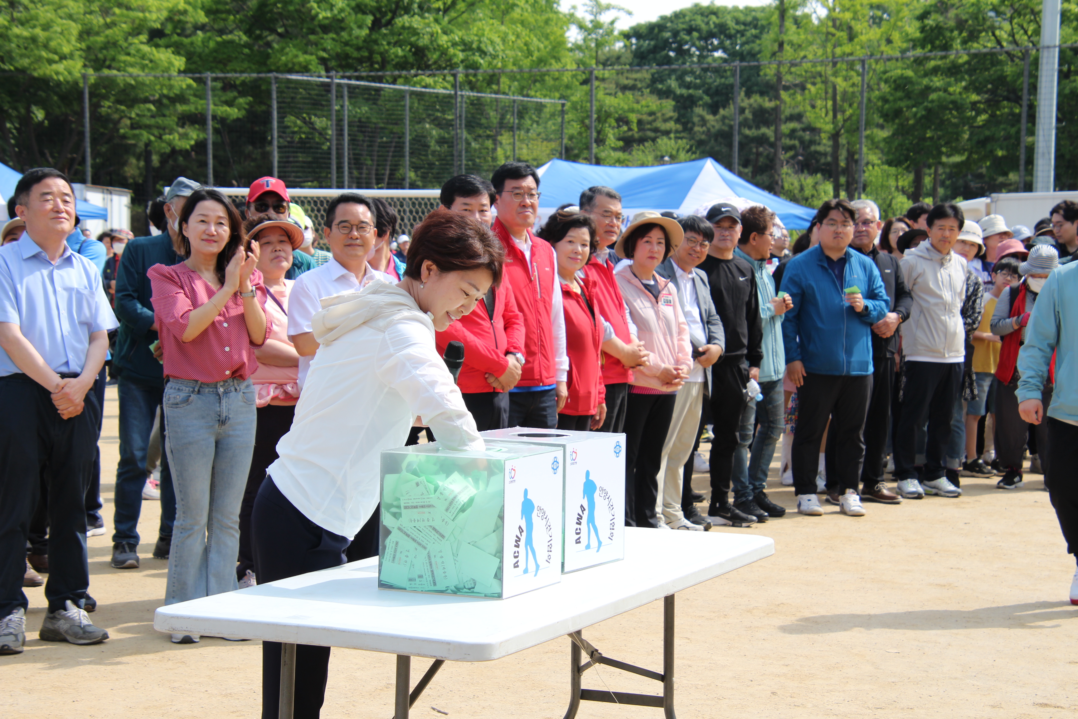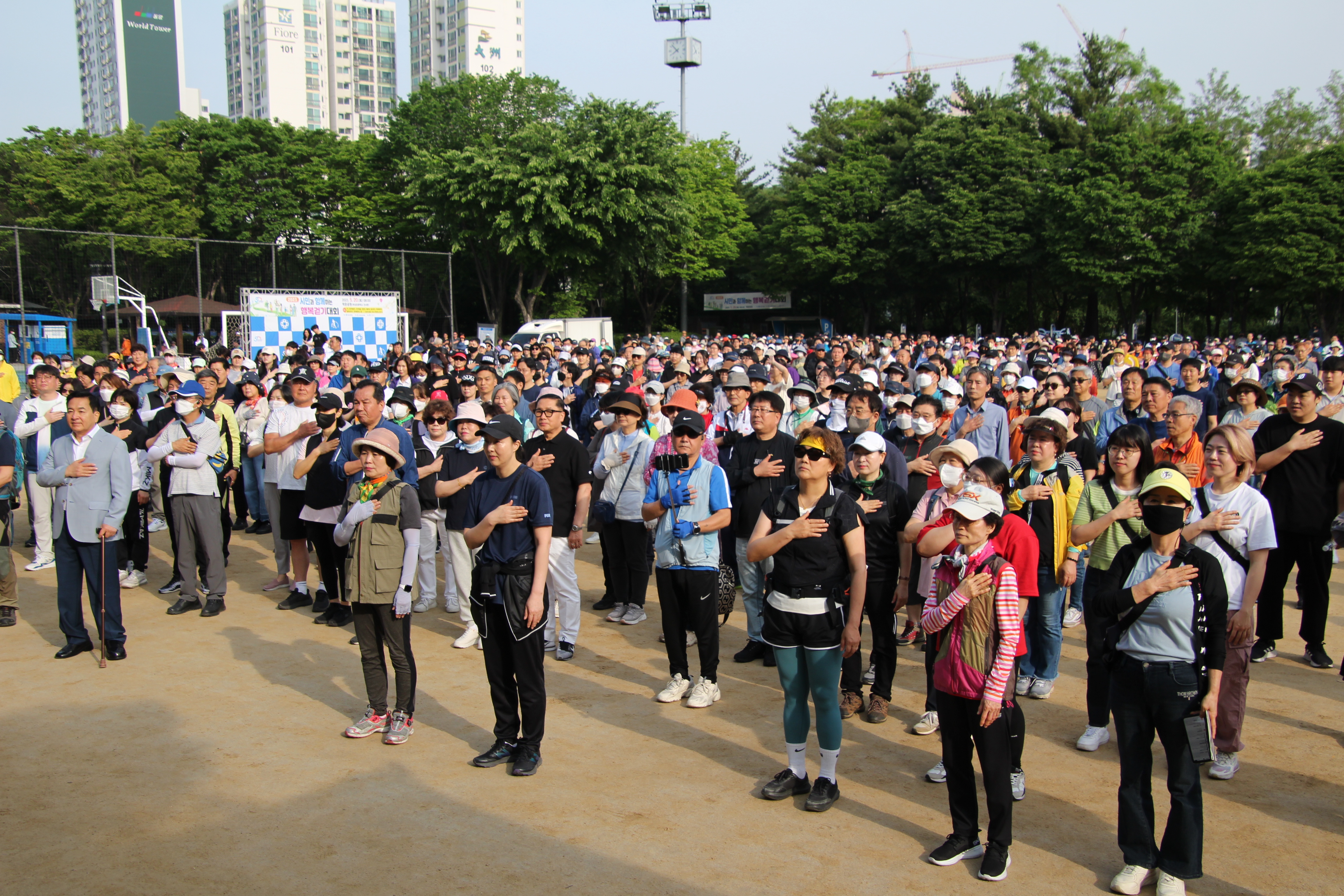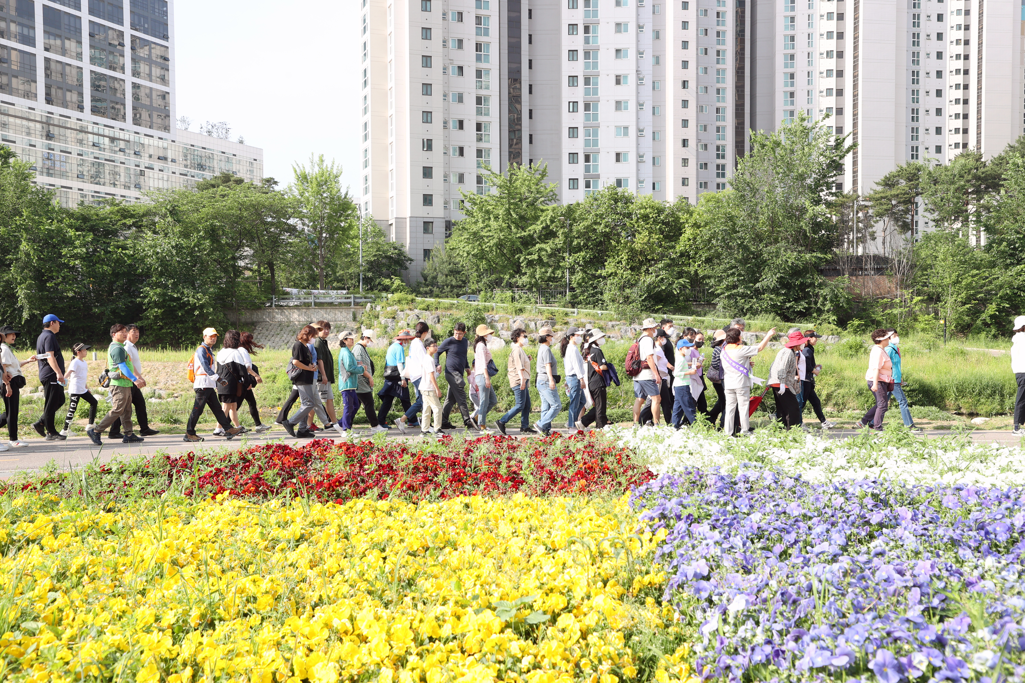 해마다 실시되던 안양시민과 함께하는 행복 걷기대회가 코로나19로 중단됐다가 4년만에 다시 재개돼 지난 5월 20일 오전 8시 학운공원에서 개최되자 4천500여명의 엄청난 시민들이 몰려 대성황을 이루었다.