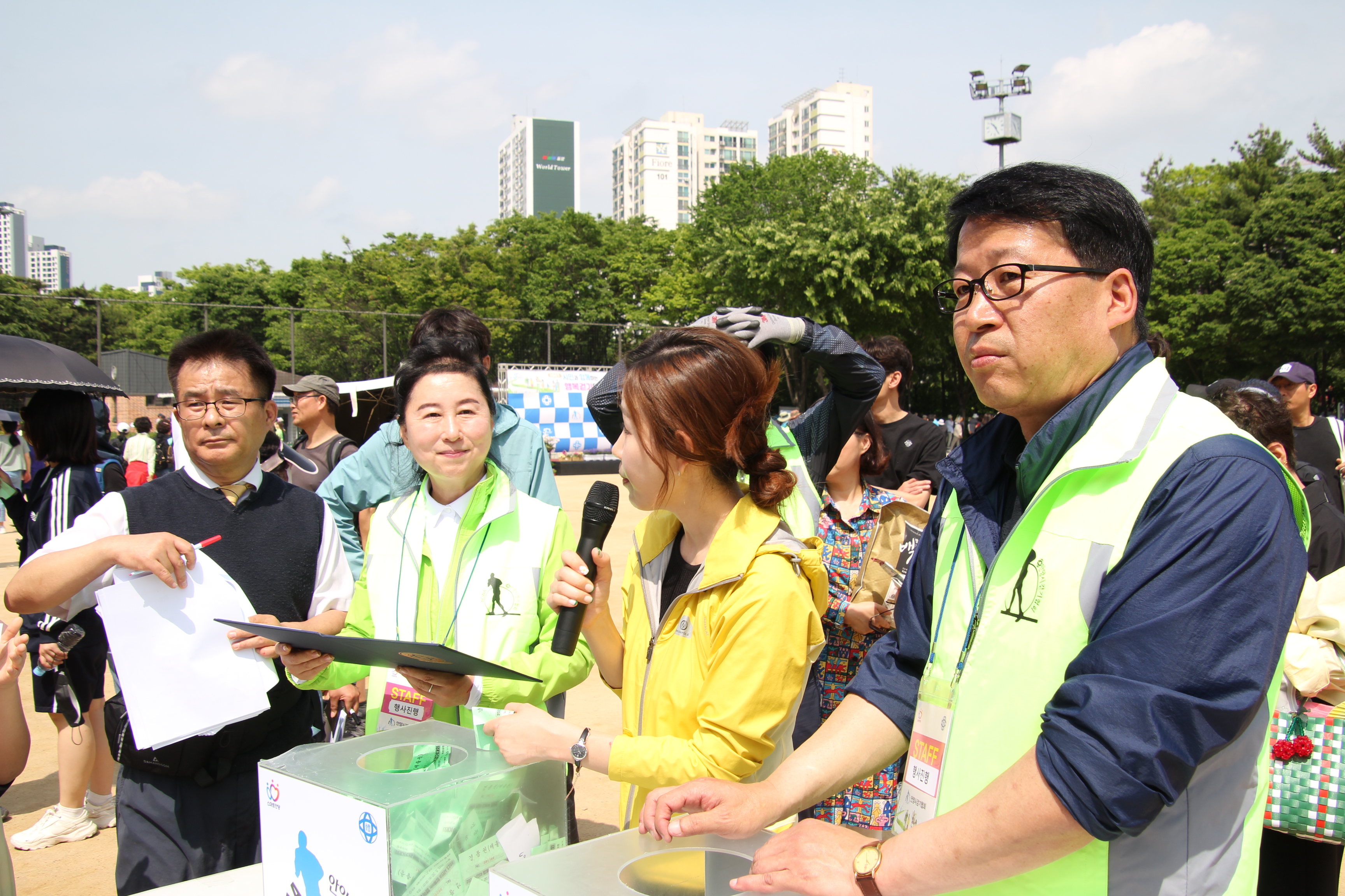 안양시체육회와 안양시걷기협회는 이날 대회에 참가한 시민들을 위해 TV, 공기청정기, 자전거 등 다양한 경품을 준비하고 반환점에서 나누어준 경품권을 공정하게 추첨해 전달했다.