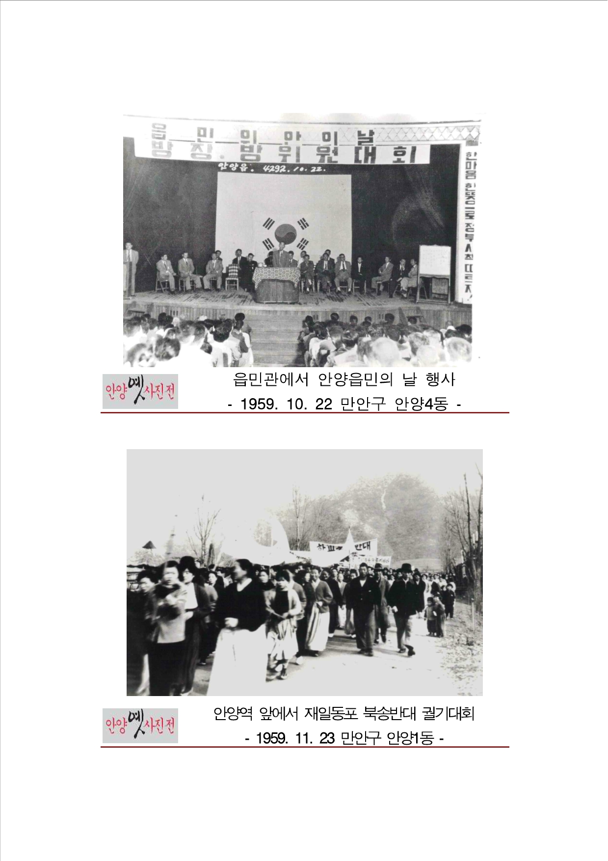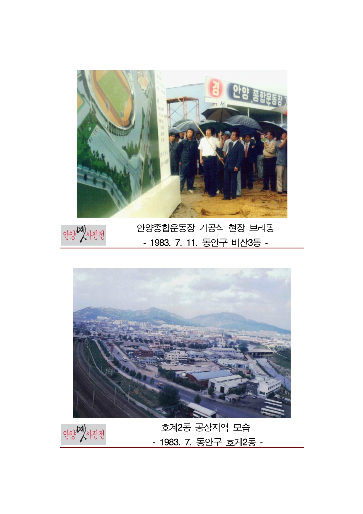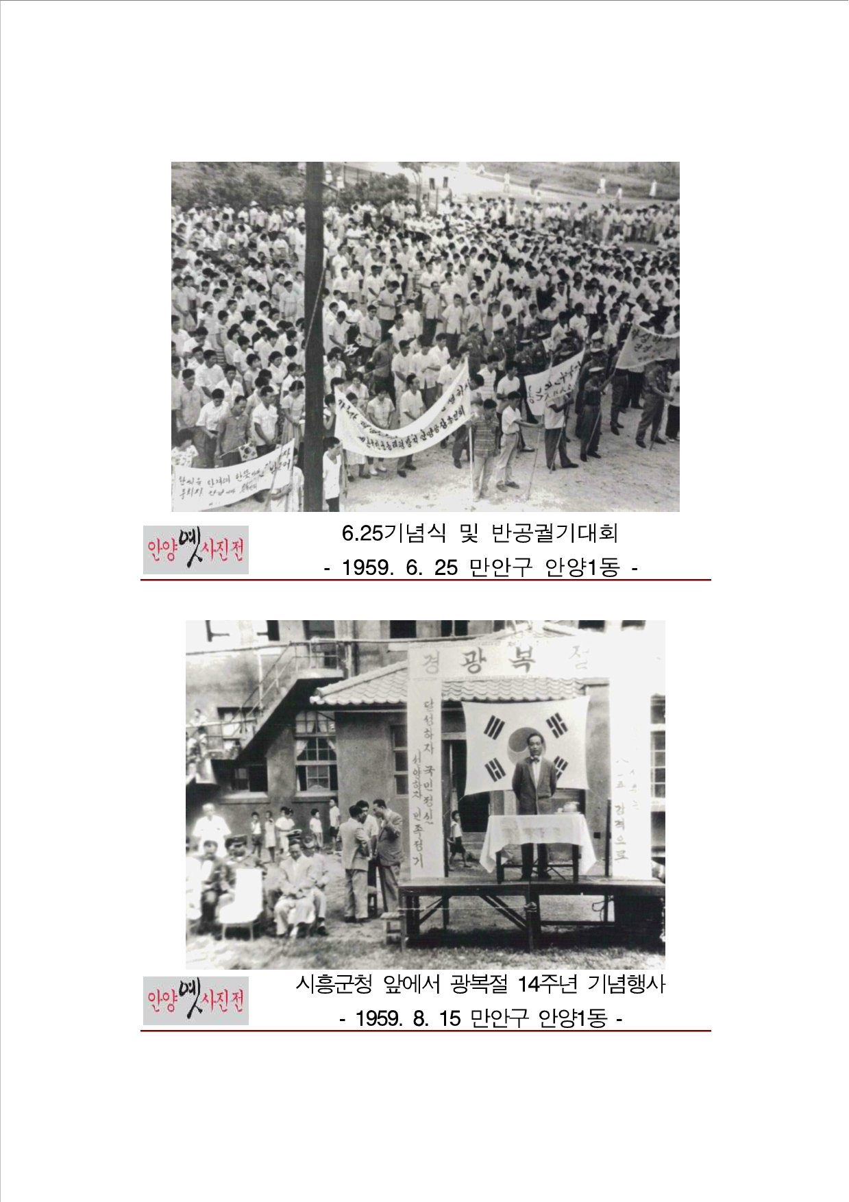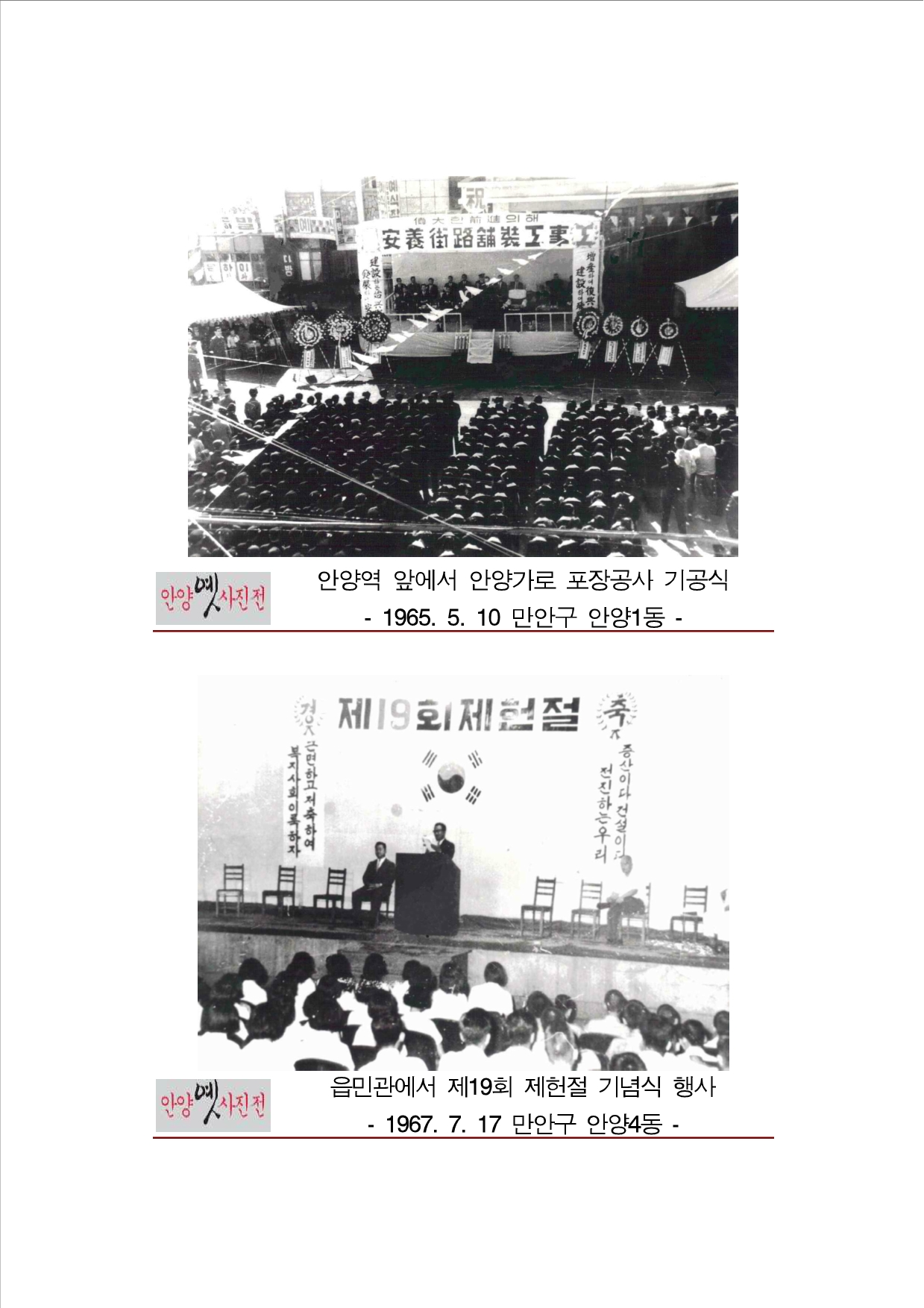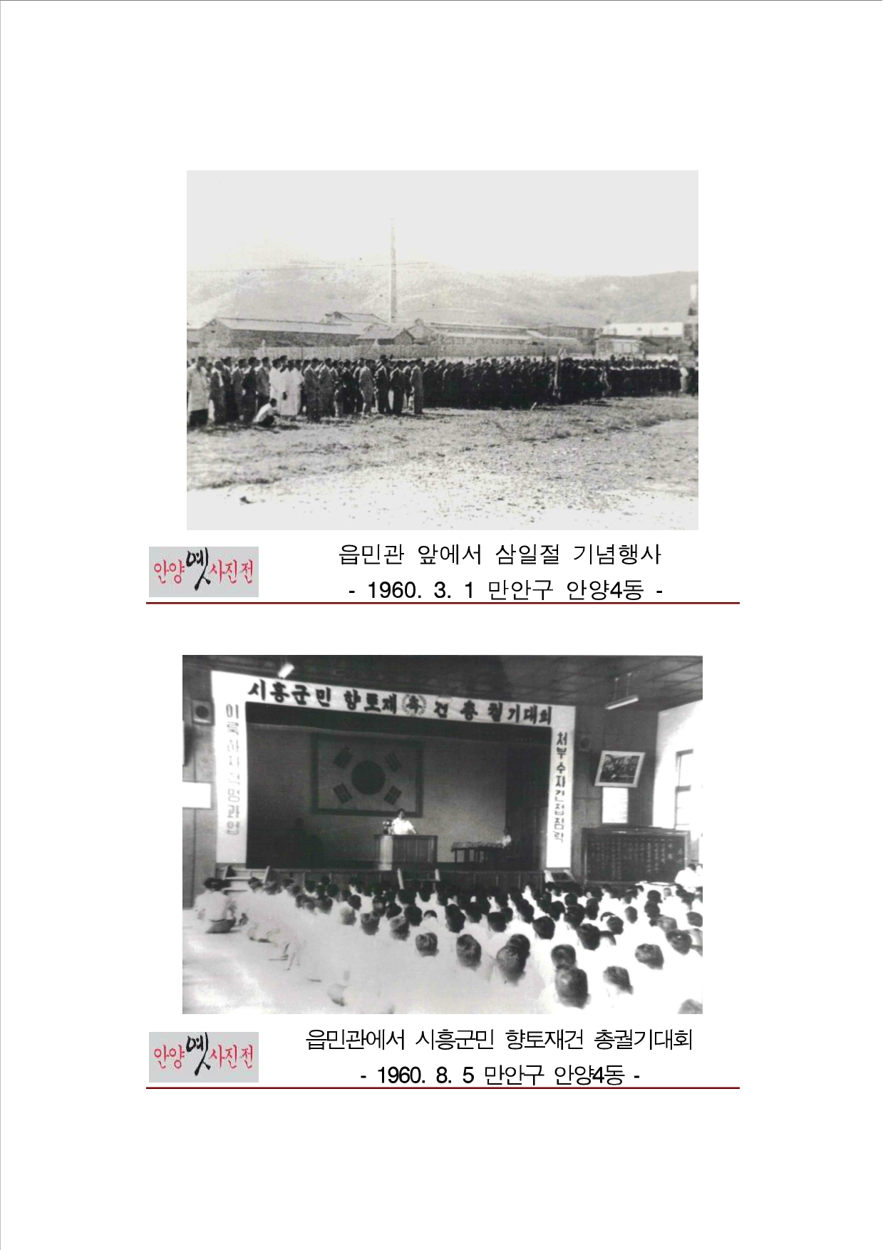 이 자료는 1950년대 후반부터 1980년대까지 안양시가 소장하고 있는 행정기관 중심의 옛 사진 100여졈을 모아 2009년 10월17일부터 11월 27일까지 전시회를 통해 시민에게 공개한 사진들로 이후 안양옛사진 제목으로 사진첩을 만들고 그 이후 에는 DBF파일로 만들어 제공한 내용입니다.
