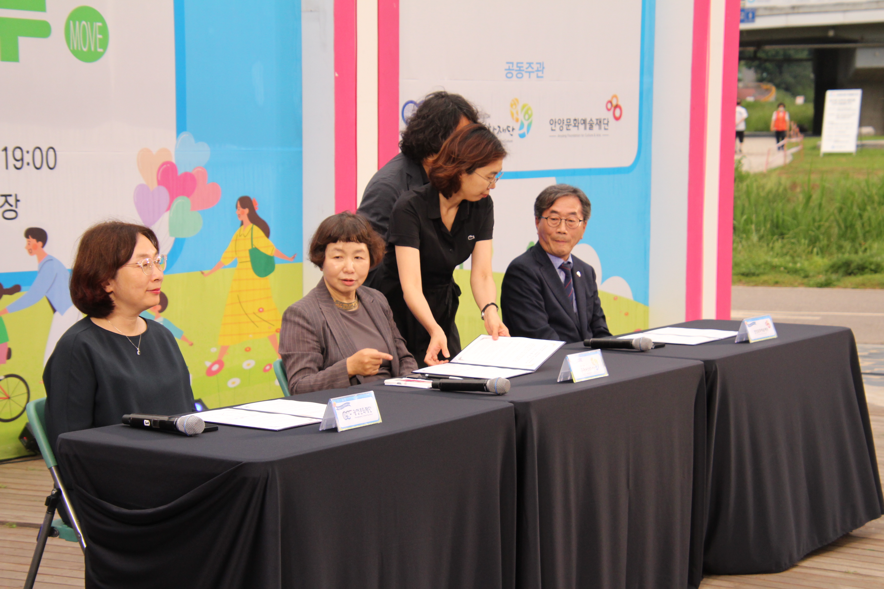 안양문화예술재단과 광명문화재단 ·금천문화예술재단이 지난 30일 안양천 쌍개울 문화광장에서 '안양천 100리길, 무무무(無舞Move)' 추진을 위한 업무협약을 체결했다.