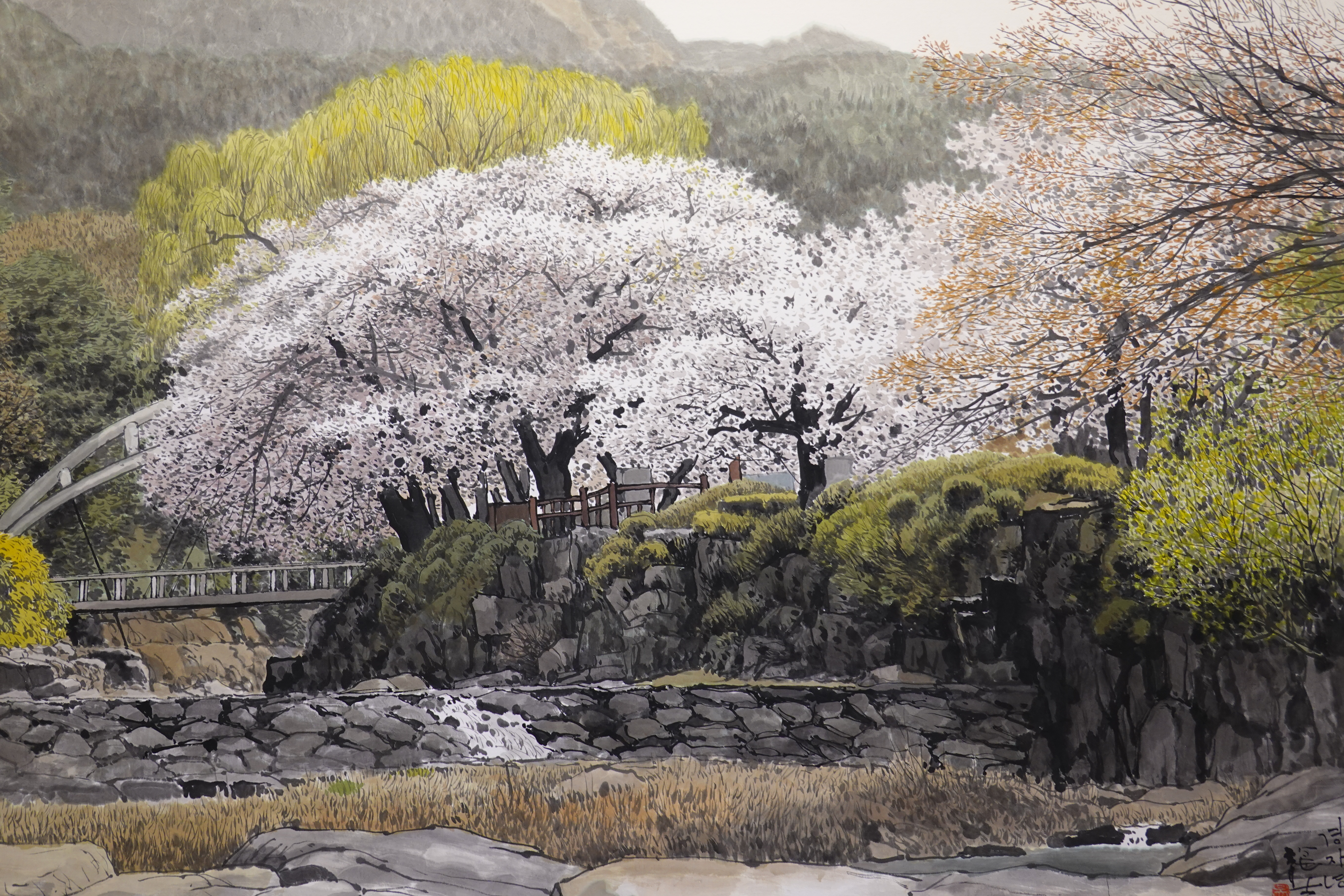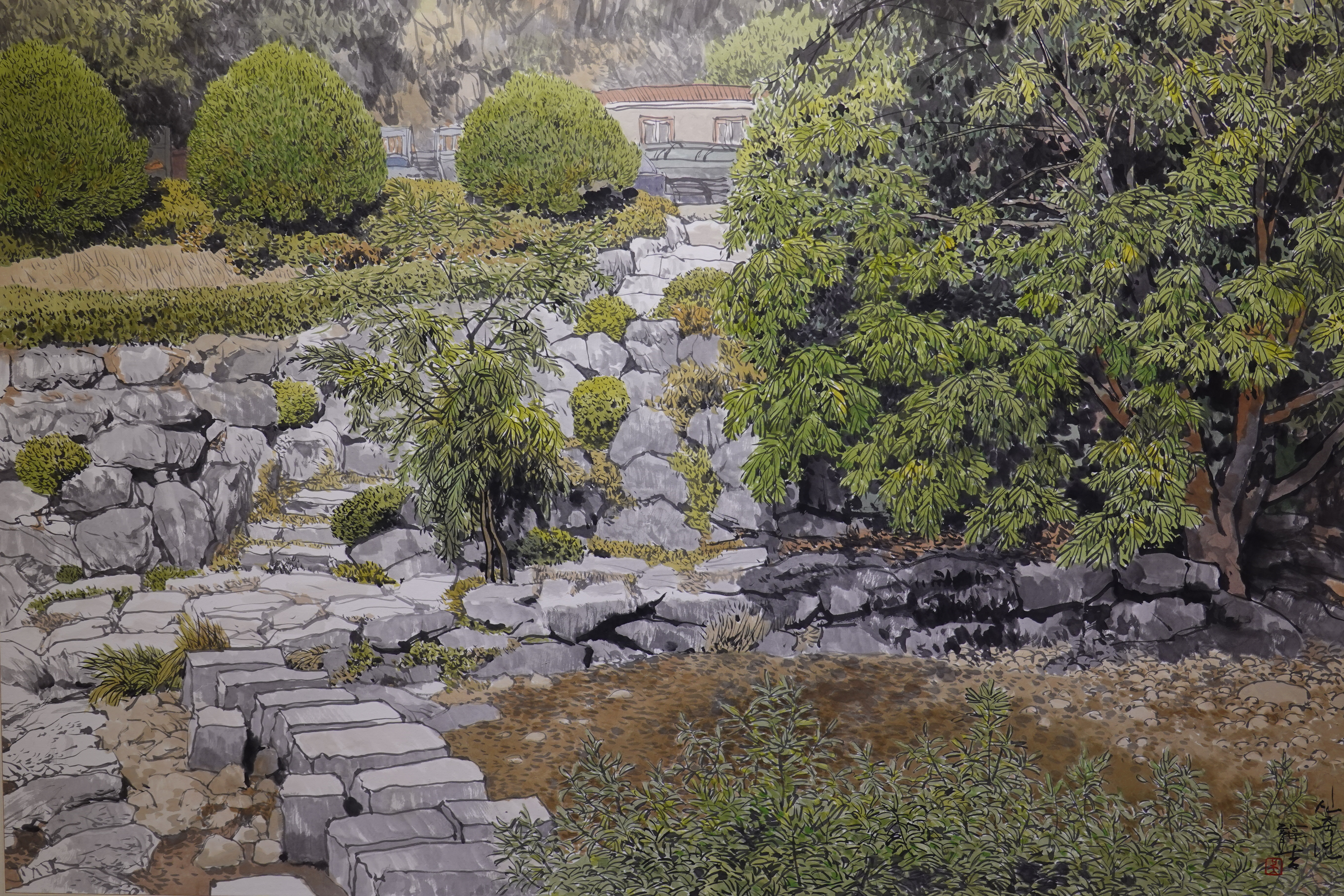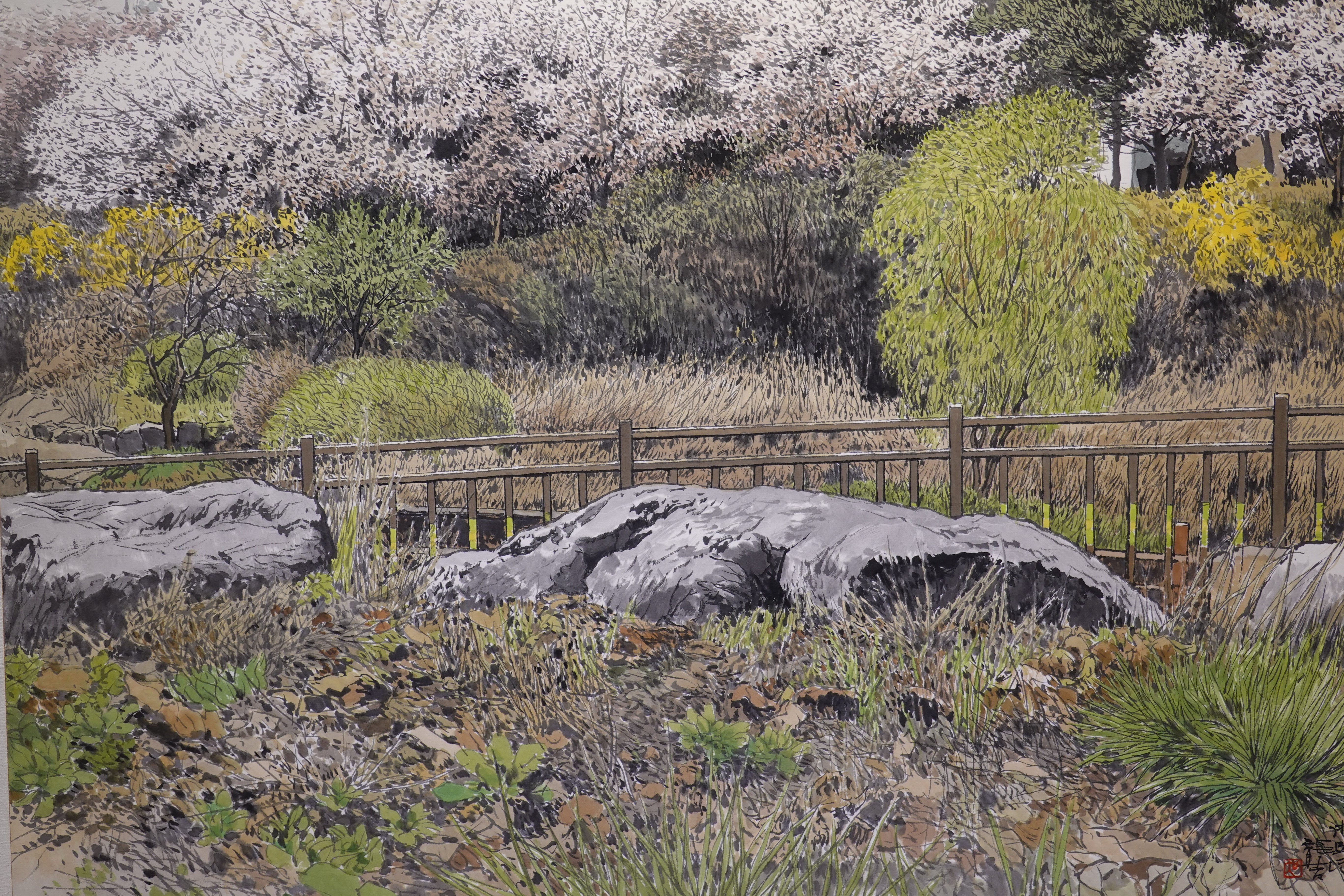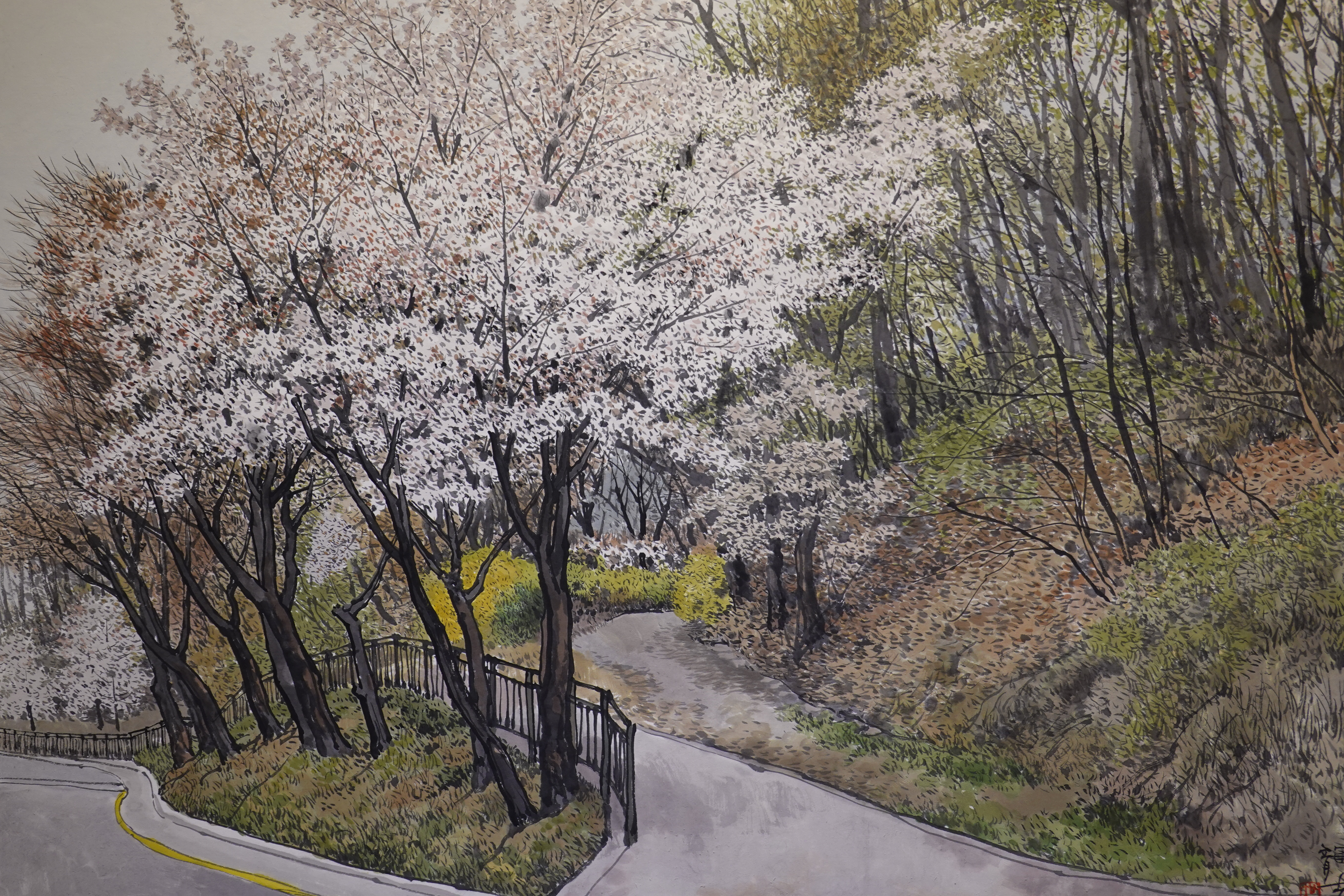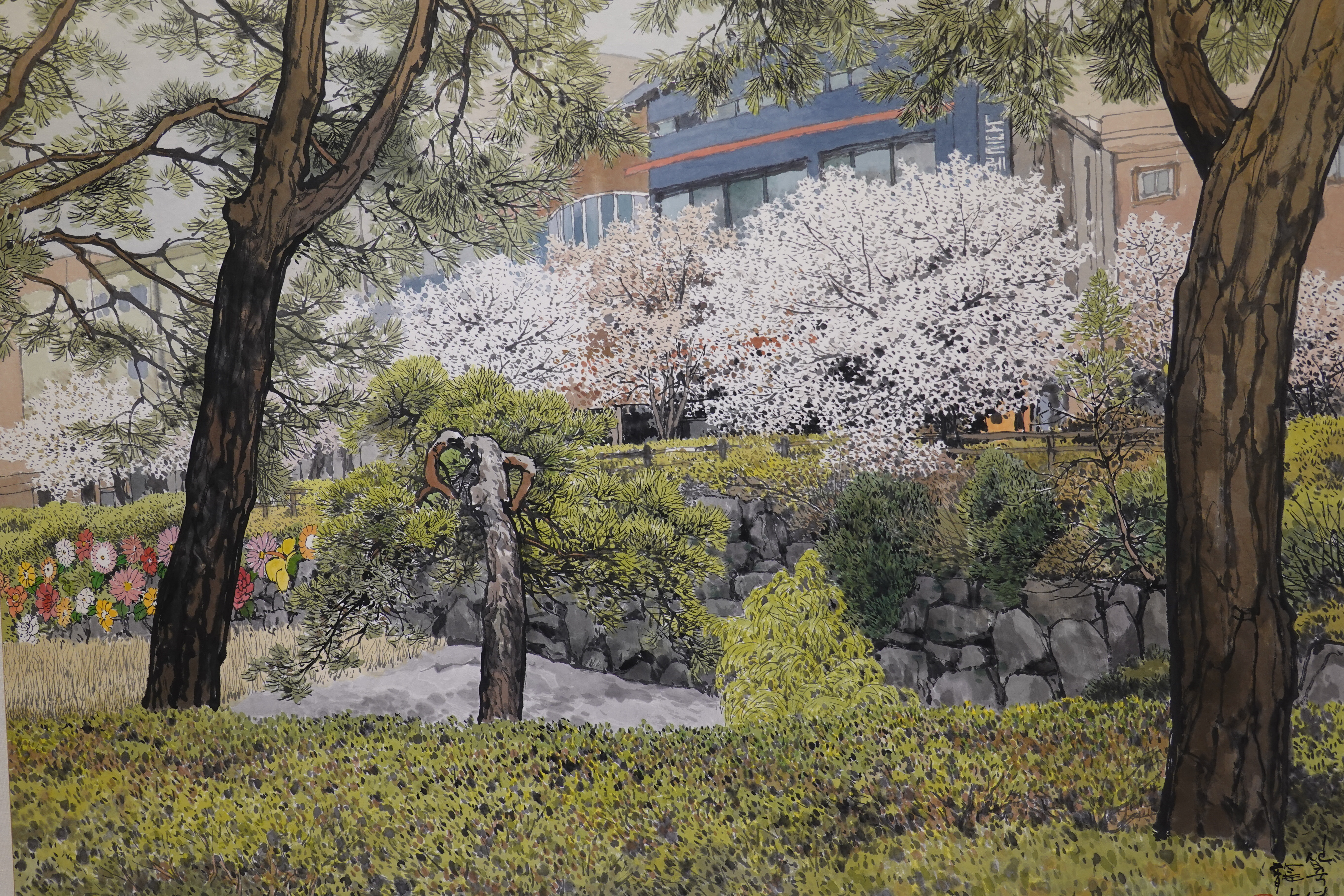 그를 실경화가로 부르기도 하지만 그의 그림이 모두 실경은 아니다. 실제 가 본 곳도 있지만 사진으로만 본 곳도 있고, 실제 풍경에 사람을 그려 넣거나 아직 피지 않은 꽃을 그려 넣는 등 자신만의 '조경'으로 새로운 풍경을 만들어내기도 한다.