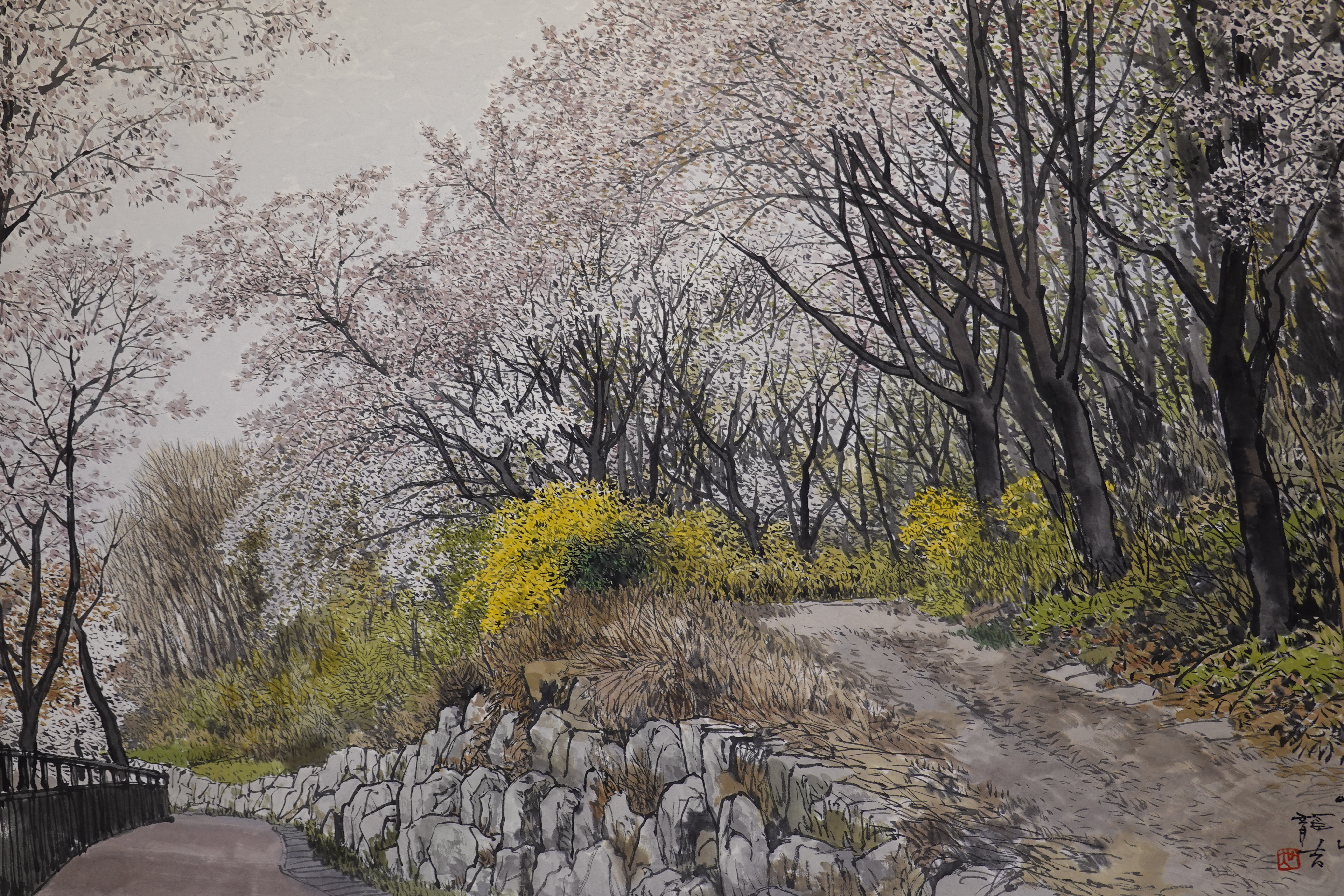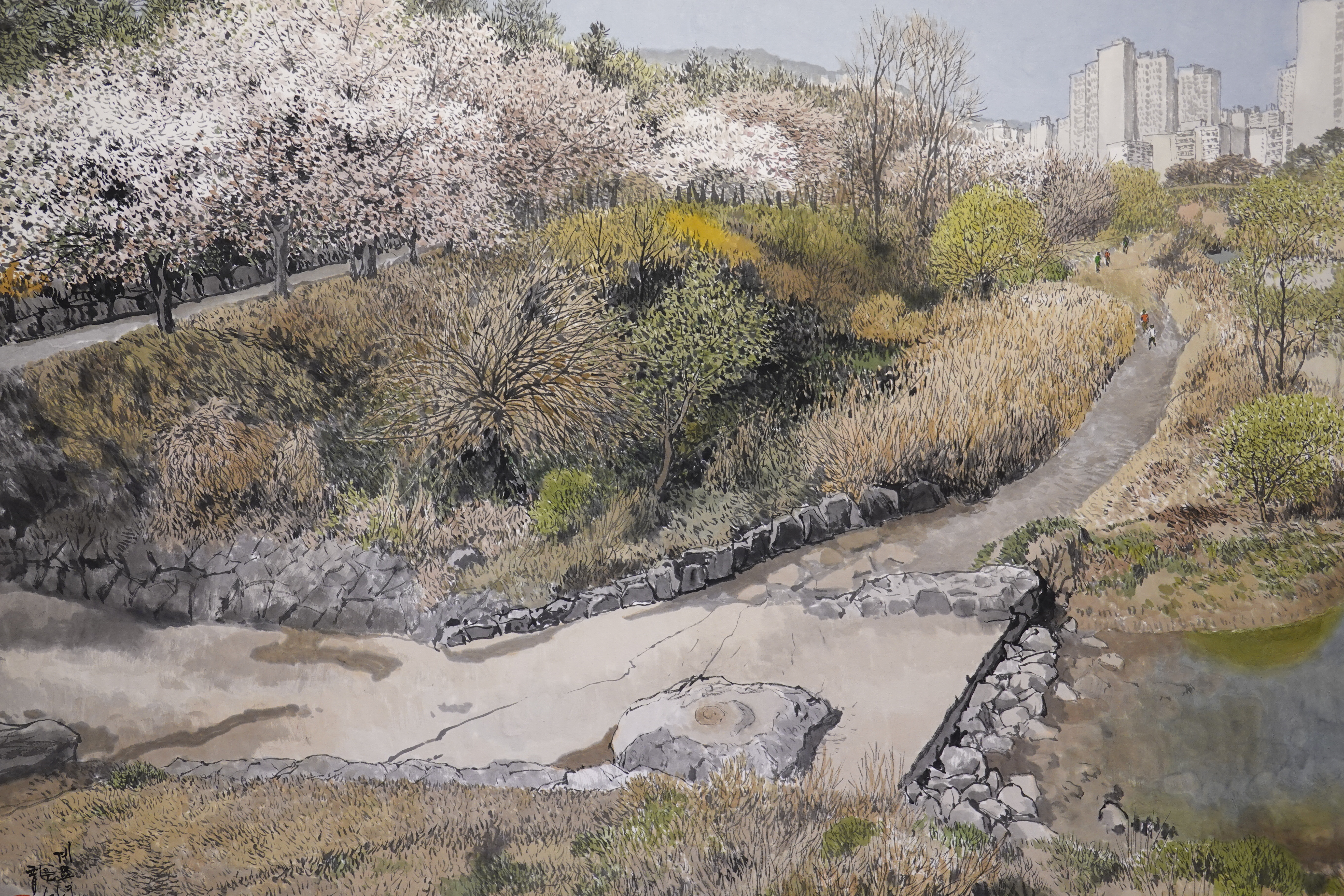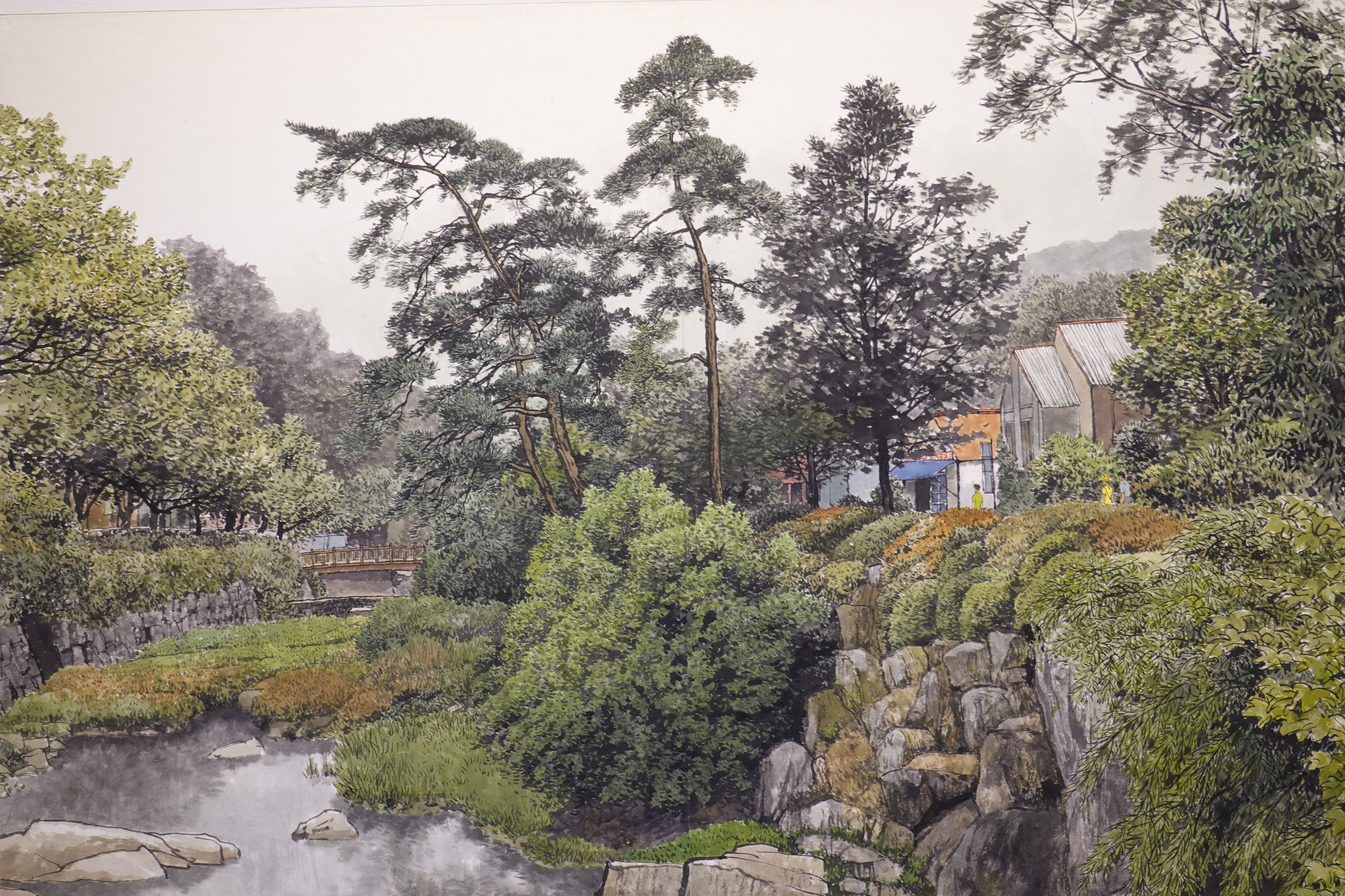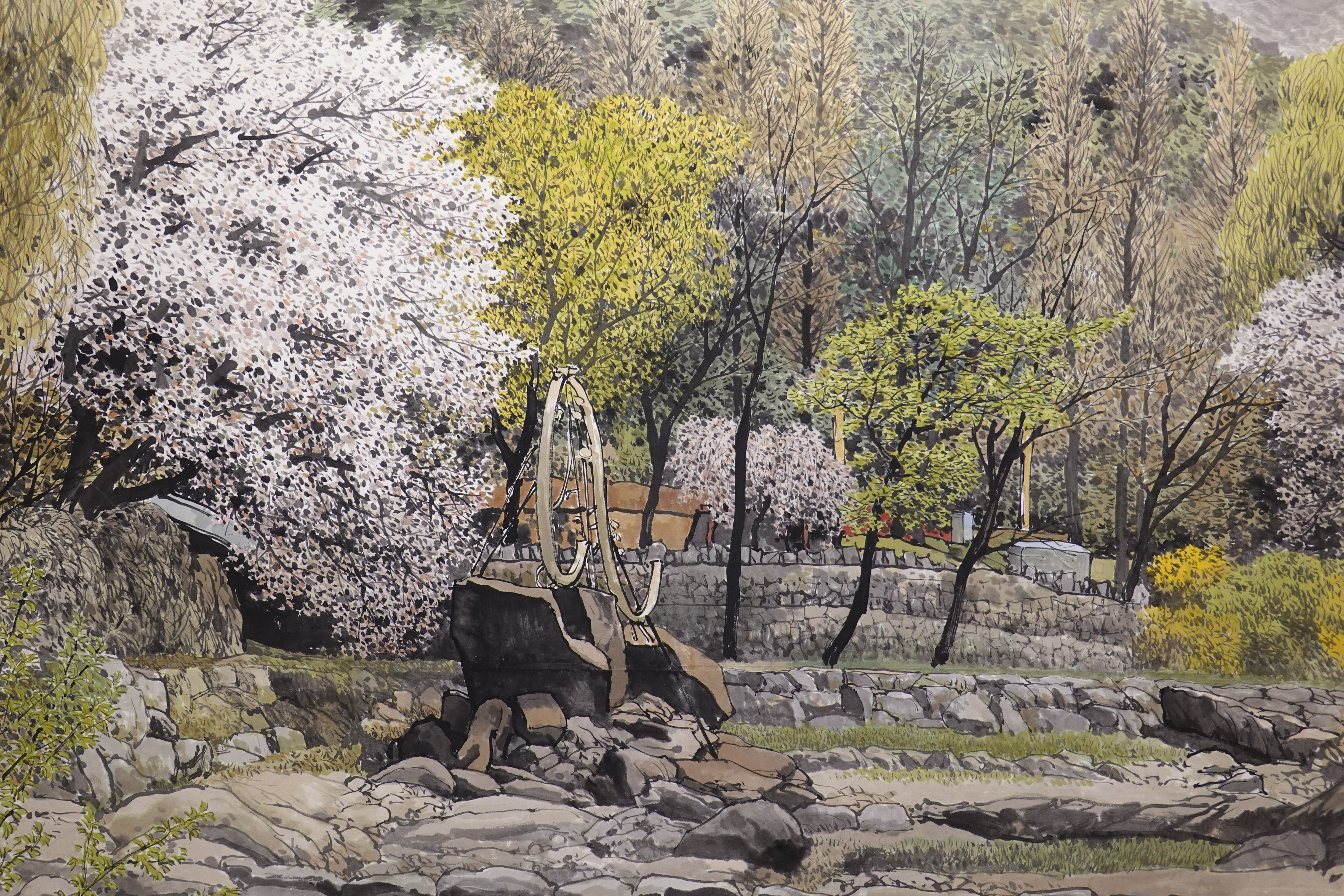그를 실경화가로 부르기도 하지만 그의 그림이 모두 실경은 아니다. 실제 가 본 곳도 있지만 사진으로만 본 곳도 있고, 실제 풍경에 사람을 그려 넣거나 아직 피지 않은 꽃을 그려 넣는 등 자신만의 '조경'으로 새로운 풍경을 만들어내기도 한다.