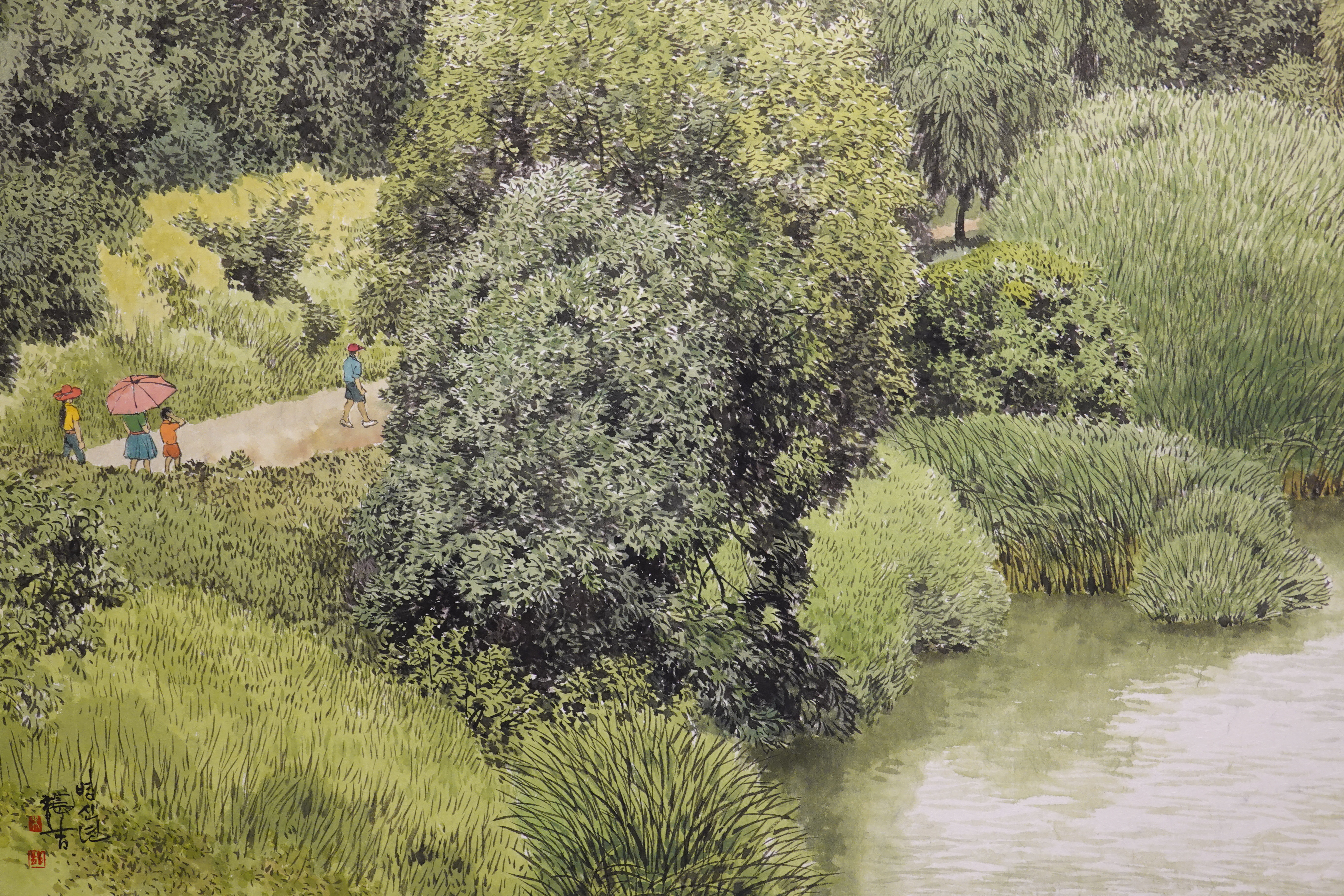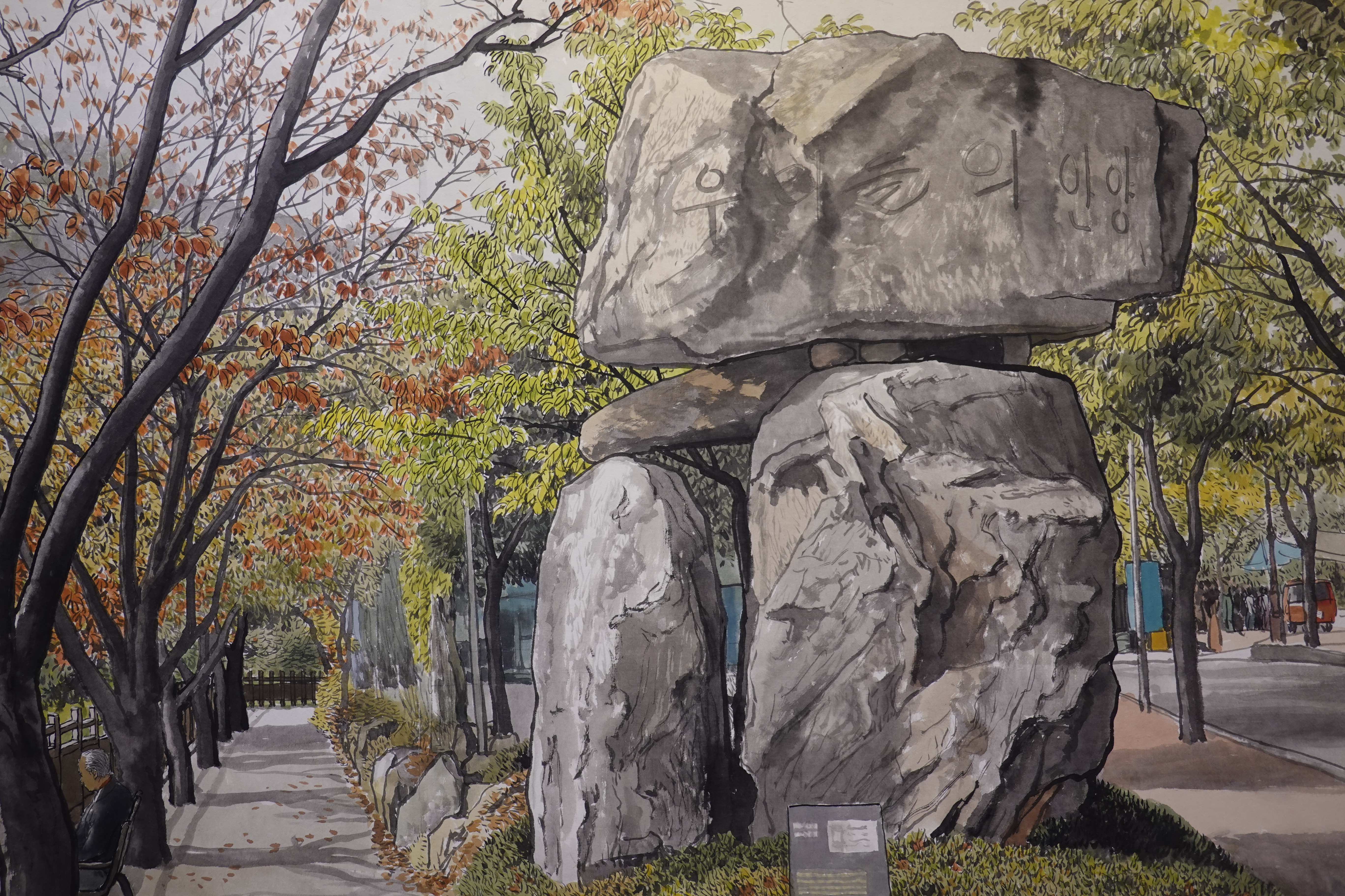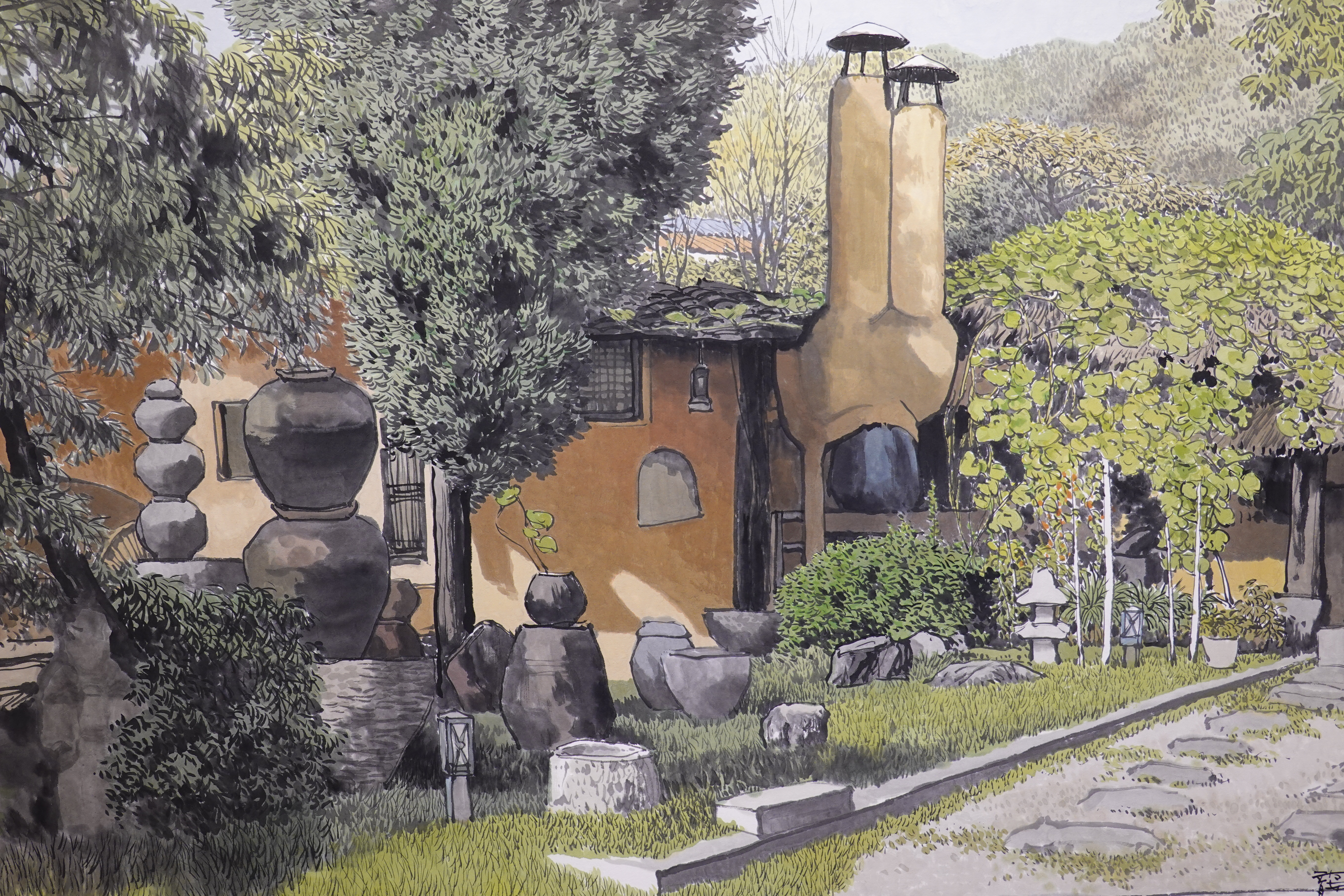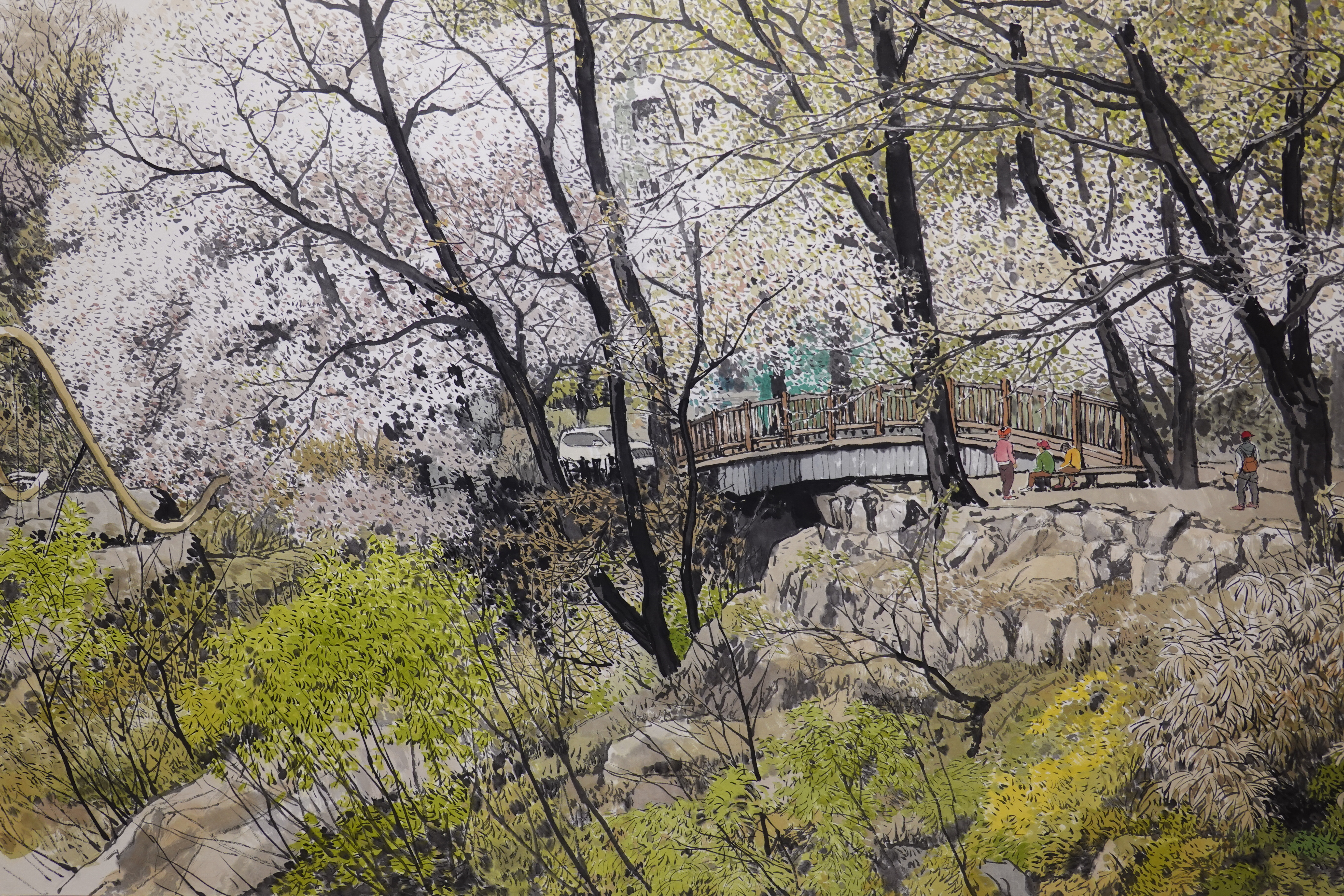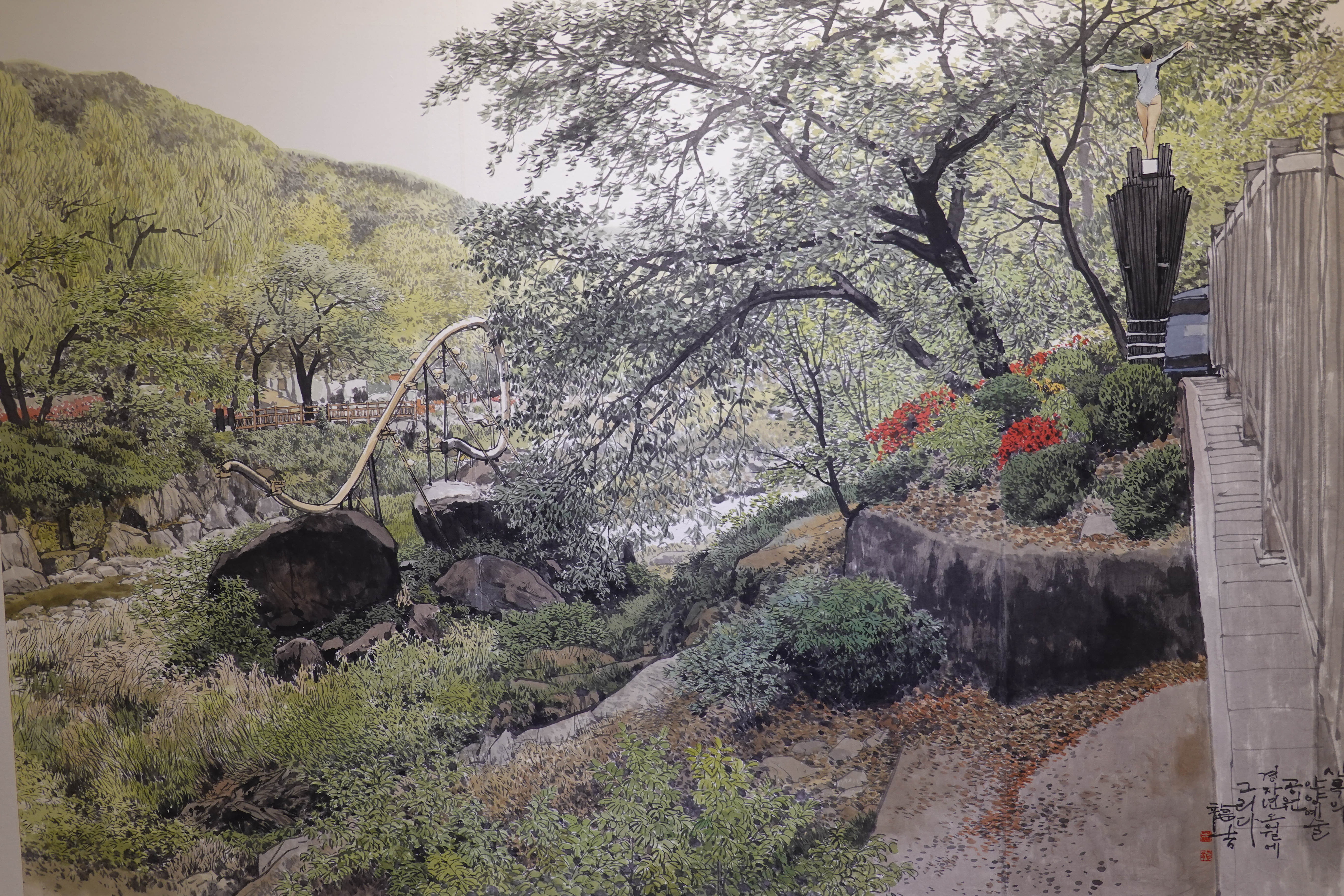 그를 실경화가로 부르기도 하지만 그의 그림이 모두 실경은 아니다. 실제 가 본 곳도 있지만 사진으로만 본 곳도 있고, 실제 풍경에 사람을 그려 넣거나 아직 피지 않은 꽃을 그려 넣는 등 자신만의 '조경'으로 새로운 풍경을 만들어내기도 한다.