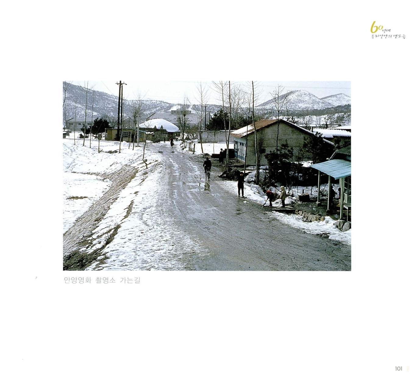 이 사진들은 1960년대 당시의 생생한 생활상을 이해할 수 있으며 역사적인 보존가치가 큰 안양시가지(항공사진), 초가 지붕의 정육점, 빨래하는 아이들 등 안양의 발자취와 발전상을 담고 있는 103점이다.