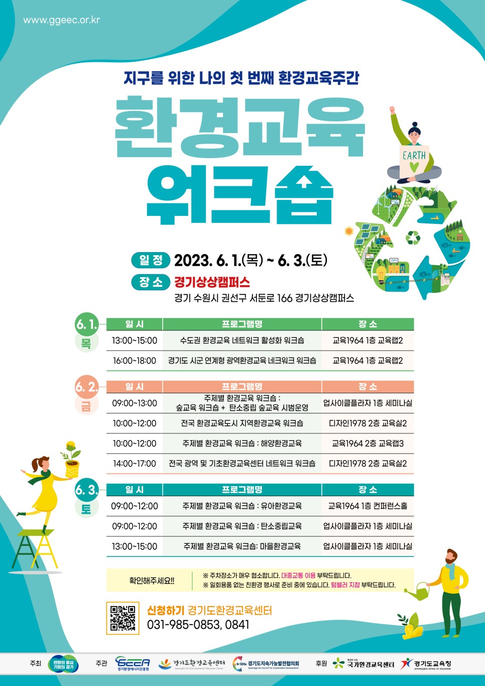 또한 탄소중립교육, 해양환경교육, 유아환경교육, 마을환경교육, 숲교육 등 5개 주제별 워크숍이 열리고, 경기환경에너지진흥원과 수원환경운동연합, 녹색환경지원센터 등이 참여해 탄소중립과 기후위기 등과 관련한 세미나를 비롯 환경교구경진대회, 환경정책한마당, 경기도지속가능발전박람회 등 다채롭게 진행된다.