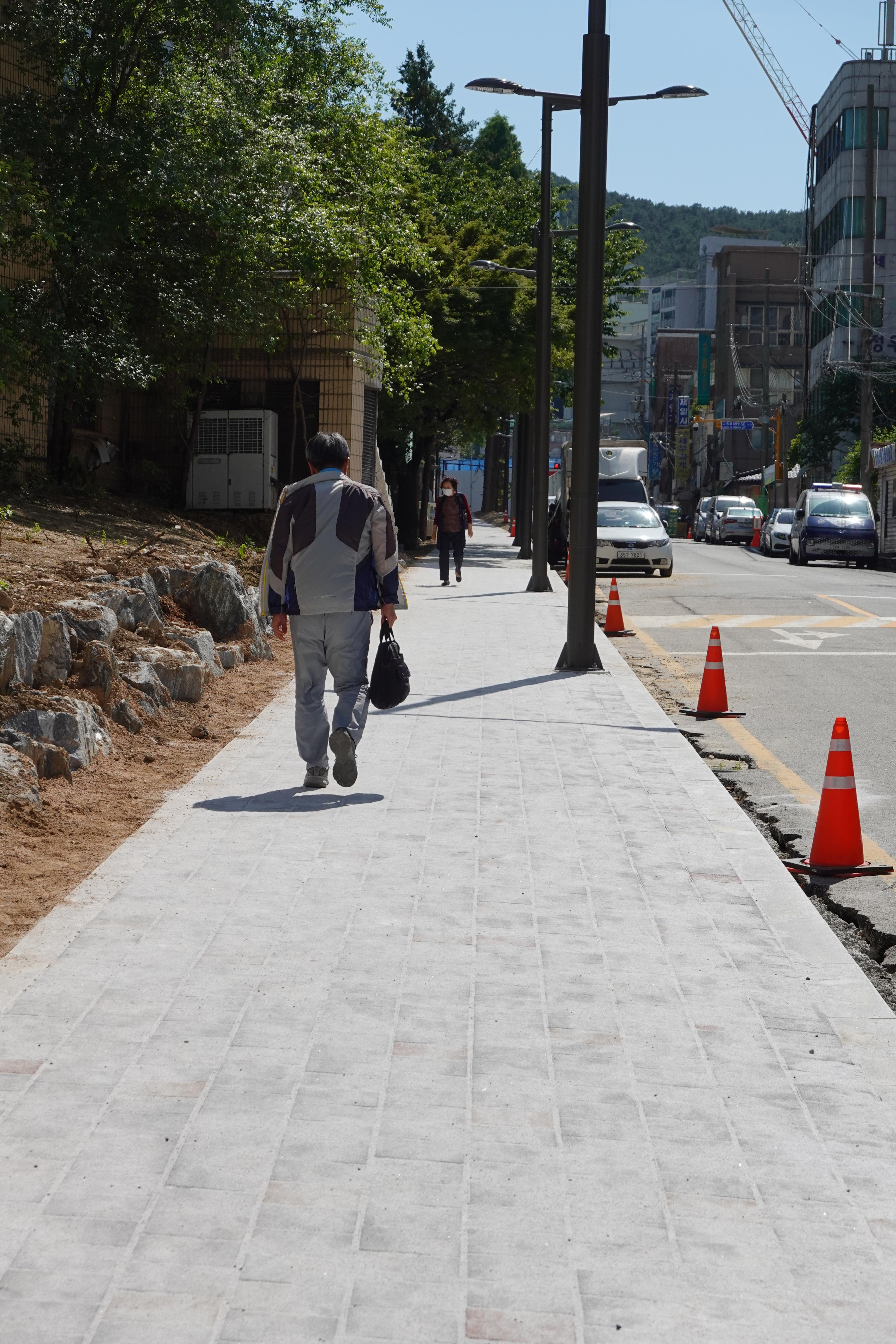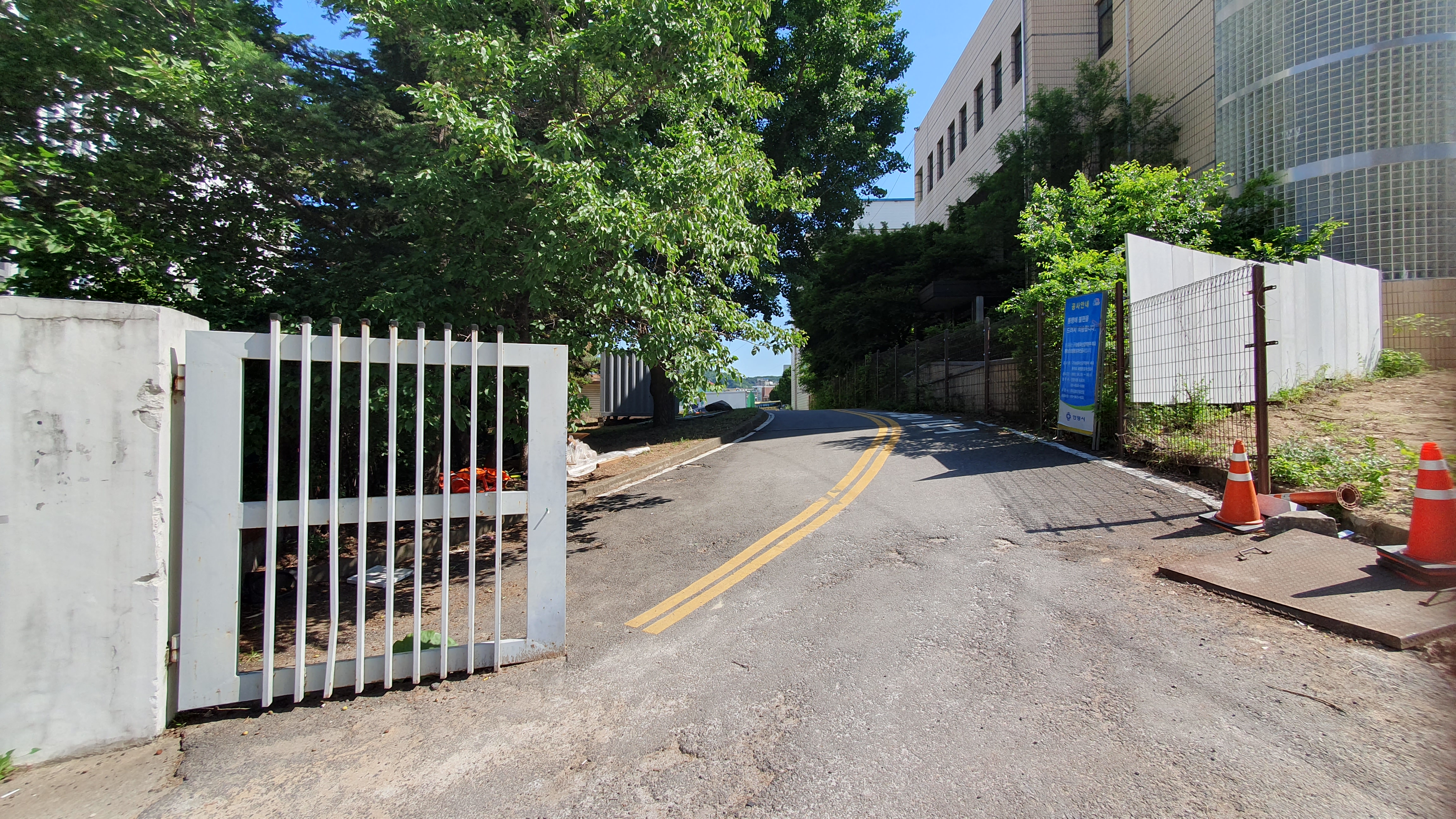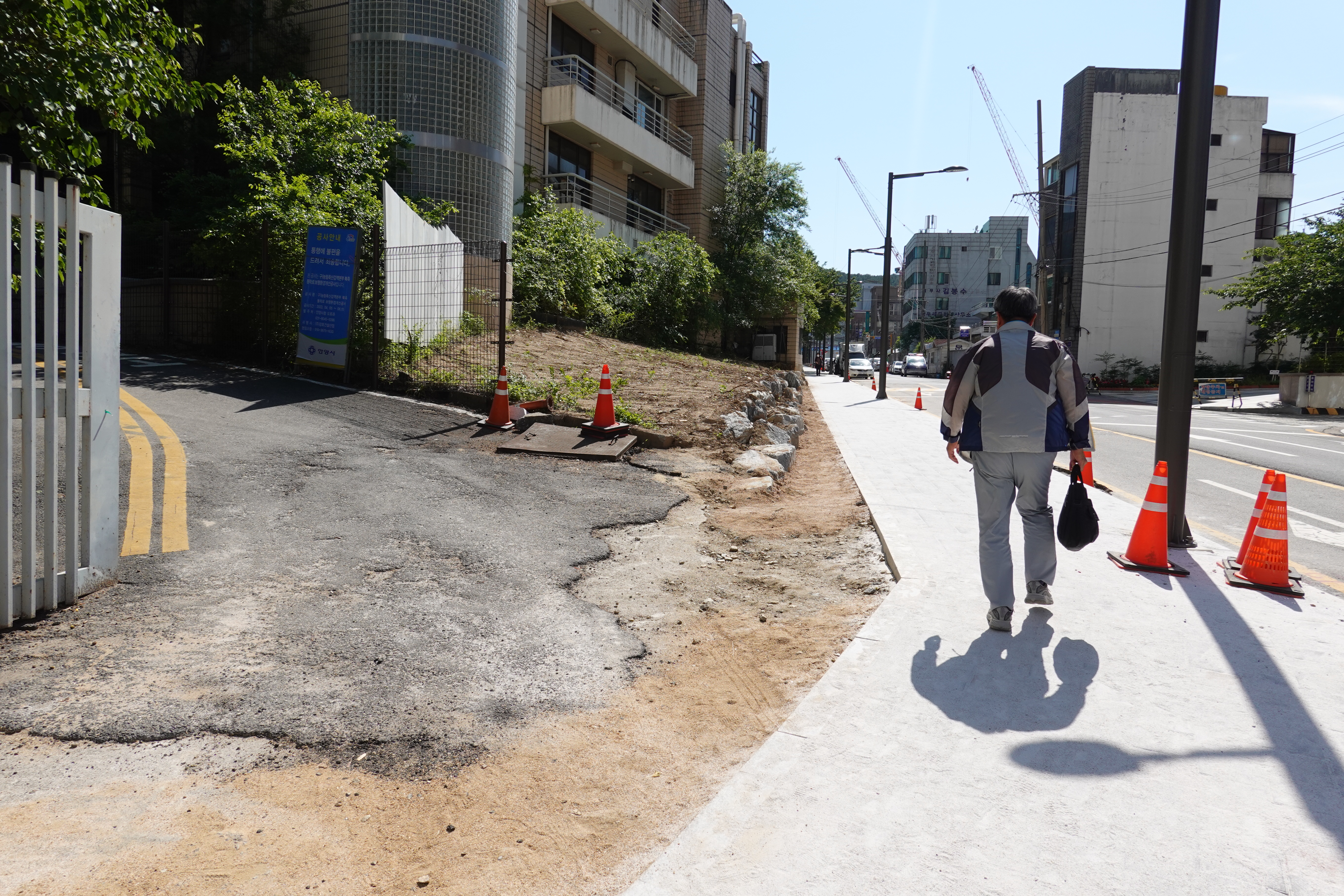 2013.06.03/ #도시기록 #안양 #안양6동 #소곡로 #인도 #통학로/ 앙양6동 소곡로에 인도가 생겨 소곡자이아파트 등 안양6동에서 안양초교, 옛검역원버스정류장에서 신성중.고교로 통학하는 학생들이 안전하고 편리하게 걸어다닐수 있게됐다. 안양세무서 끝자락에서 중앙로(은혜와진리교회 남쪽사거리)와 연결되는 이 도로는 소곡천을 복개하여 만든 길로 길폭이 좁아 인도가 없었다. 특히 이 길은 안양6동 소곡 씨엘포레자이아파트와 인근 거주 어린이들이 안양초등학교로 오가는 통학로 길로 학생들의 안전을 이유로 통학로를 개선해 달라는 민원이 제기되어 왔다. 이에 시는 검역원 담장을 허물고 부지 안쪽으로 보행로를 만들기로 결단을 내려 공사에 착수했다. 담장을 허문 일부 구간에는 기존에 심어져있던 메타쉐콰이어 가로수가 자라고 있어 나무숲 그늘이 있는 멋진 보행길이 조성돼 땡볕 여름에도 그늘 사이로 쾌적하게 다닐 수 있는 걷고싶은 길로 유명해질듯 싶다.
