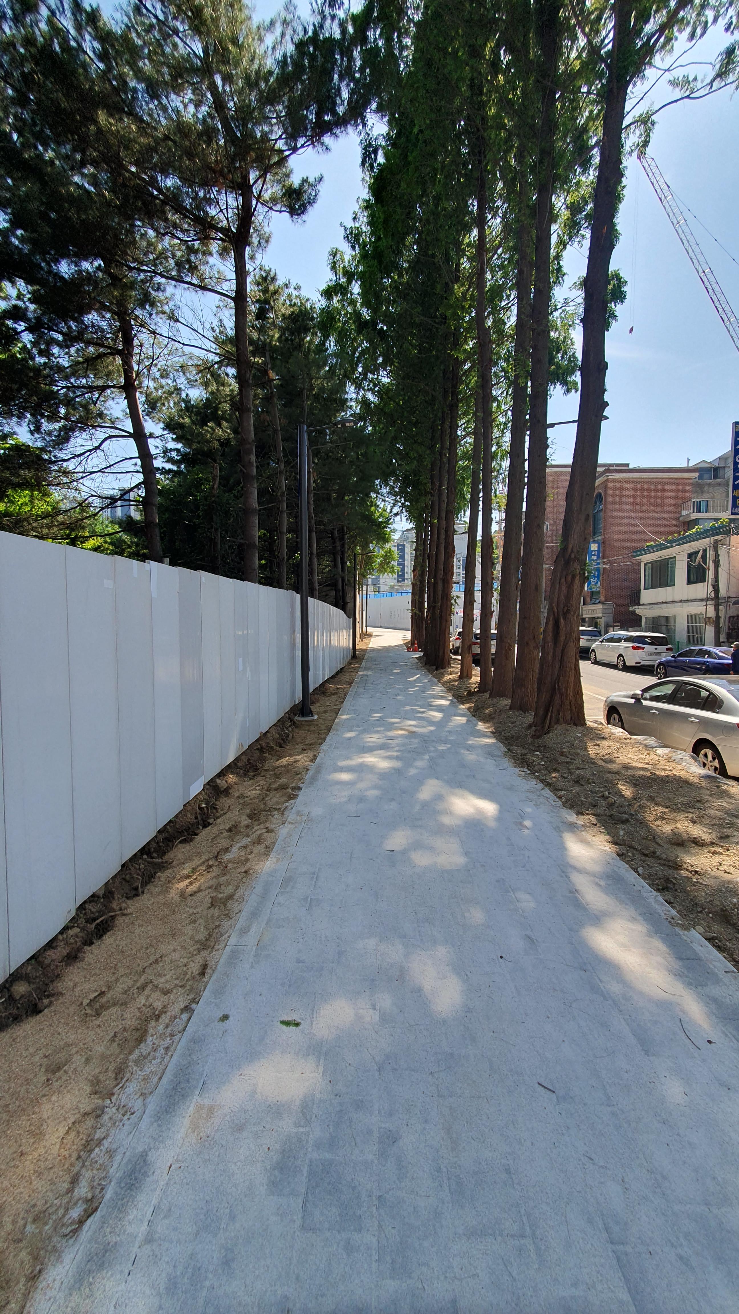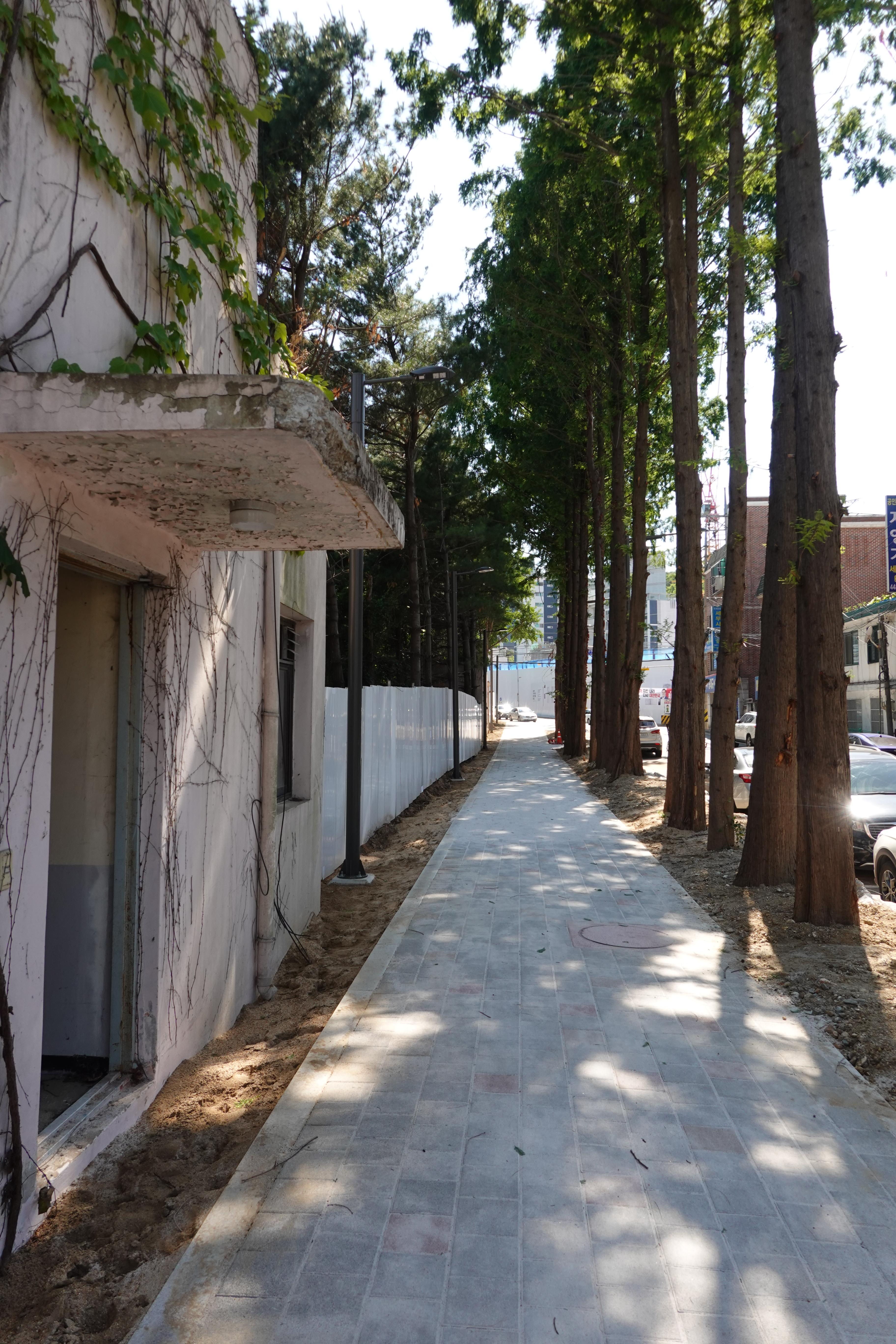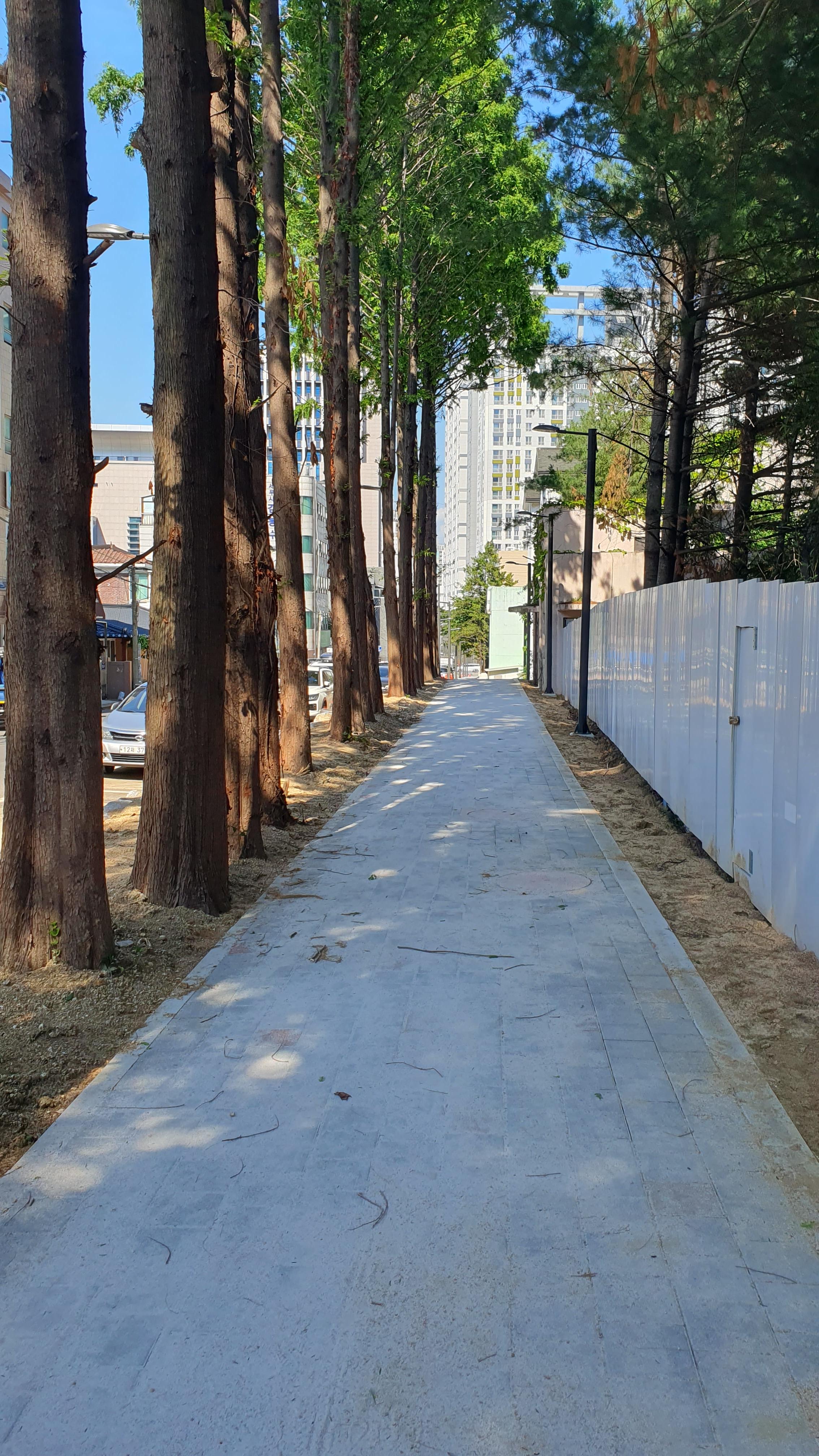 2013.06.03/ #도시기록 #안양 #안양6동 #소곡로 #인도 #통학로/ 앙양6동 소곡로에 인도가 생겨 소곡자이아파트 등 안양6동에서 안양초교, 옛검역원버스정류장에서 신성중.고교로 통학하는 학생들이 안전하고 편리하게 걸어다닐수 있게됐다. 안양세무서 끝자락에서 중앙로(은혜와진리교회 남쪽사거리)와 연결되는 이 도로는 소곡천을 복개하여 만든 길로 길폭이 좁아 인도가 없었다. 특히 이 길은 안양6동 소곡 씨엘포레자이아파트와 인근 거주 어린이들이 안양초등학교로 오가는 통학로 길로 학생들의 안전을 이유로 통학로를 개선해 달라는 민원이 제기되어 왔다. 이에 시는 검역원 담장을 허물고 부지 안쪽으로 보행로를 만들기로 결단을 내려 공사에 착수했다. 담장을 허문 일부 구간에는 기존에 심어져있던 메타쉐콰이어 가로수가 자라고 있어 나무숲 그늘이 있는 멋진 보행길이 조성돼 땡볕 여름에도 그늘 사이로 쾌적하게 다닐 수 있는 걷고싶은 길로 유명해질듯 싶다.