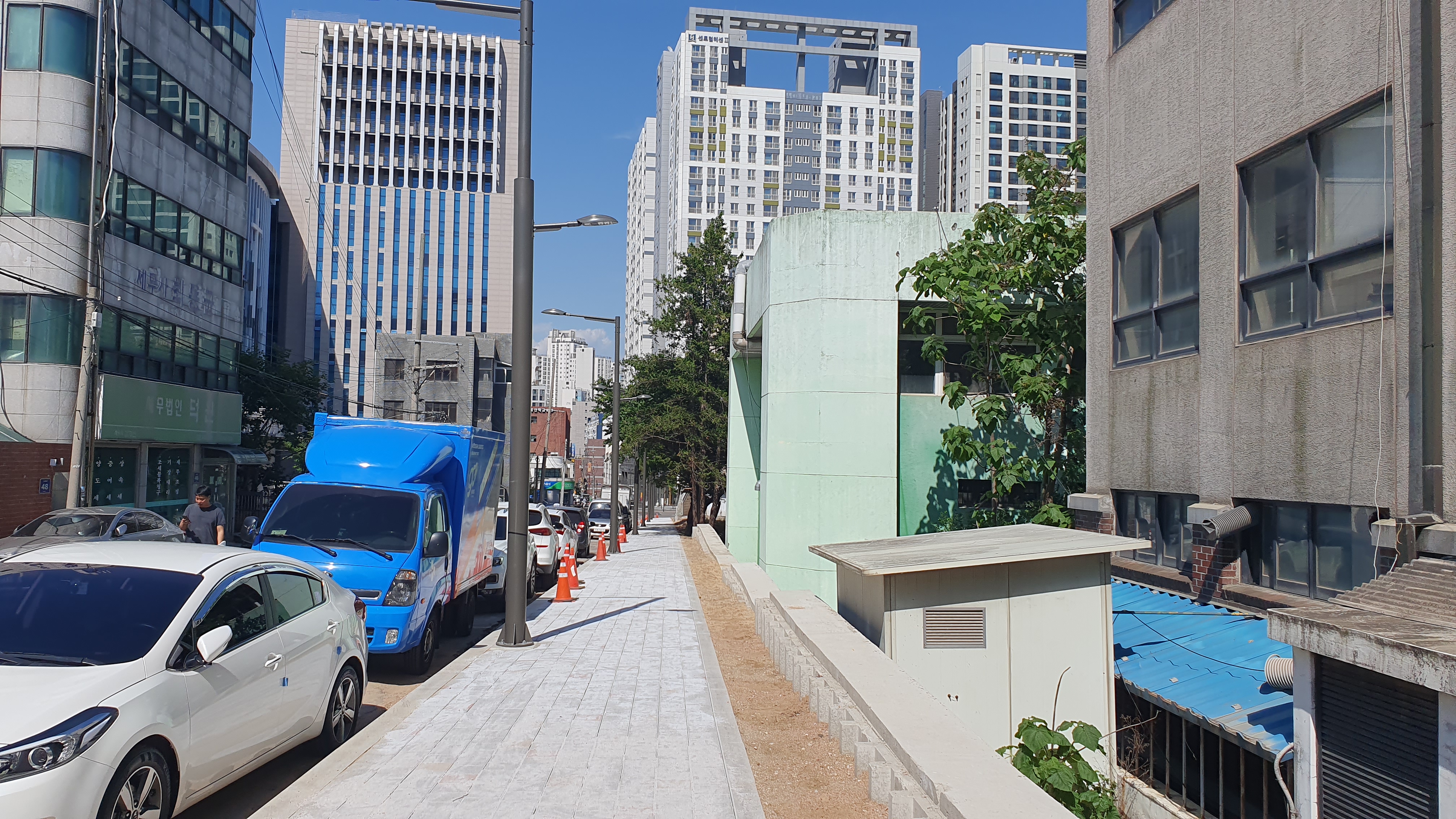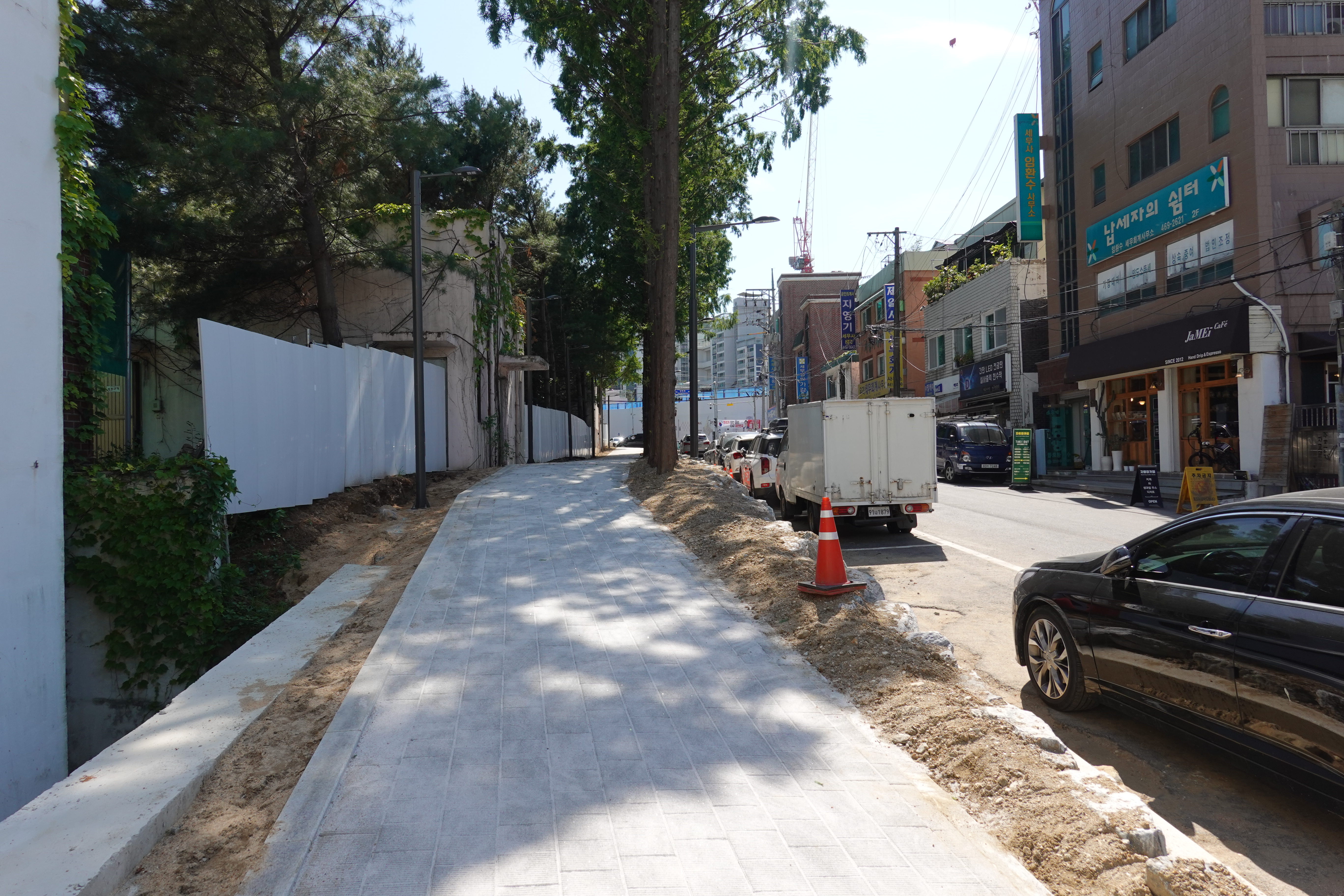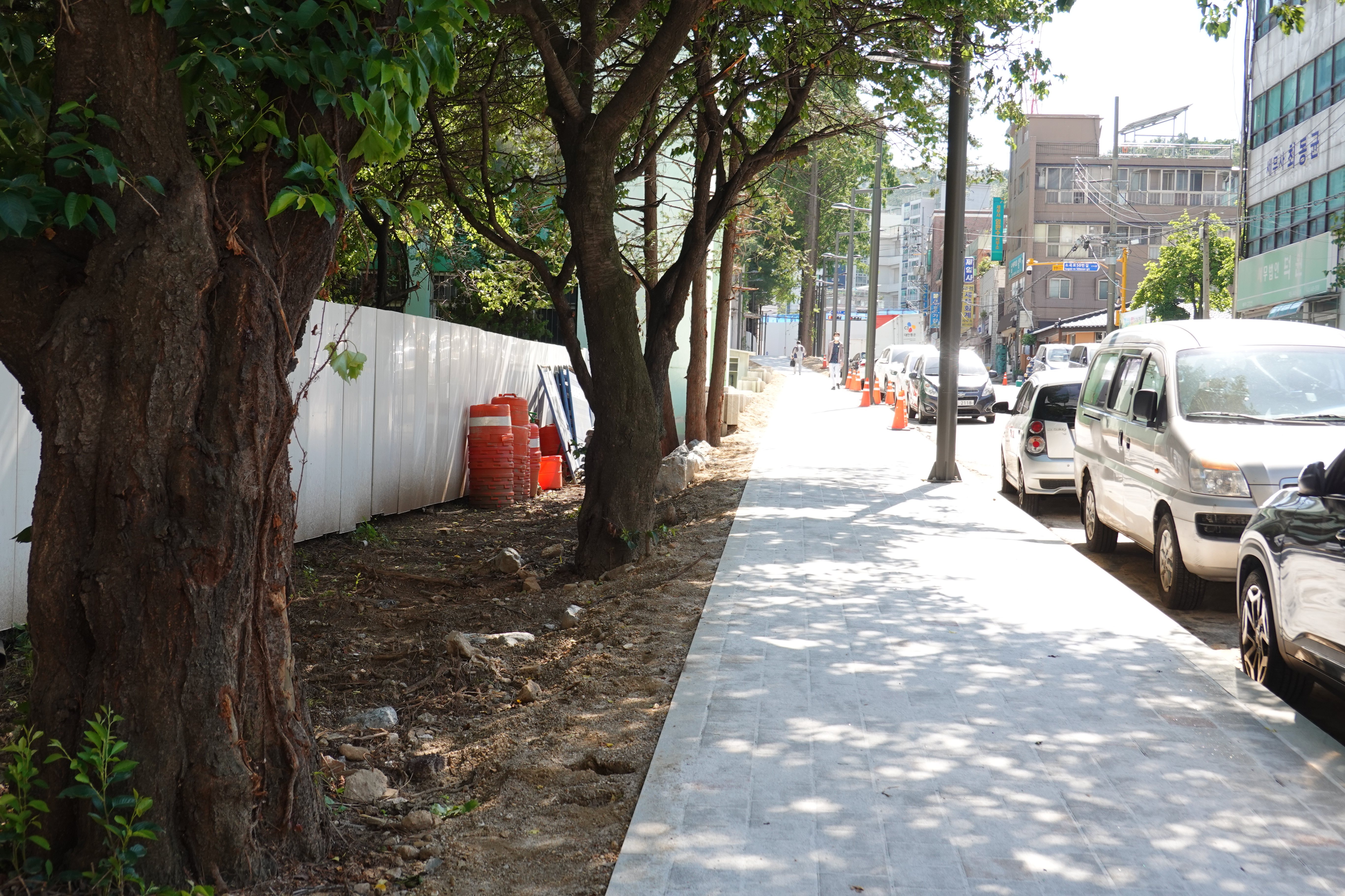 2013.06.03/ #도시기록 #안양 #안양6동 #소곡로 #인도 #통학로/ 앙양6동 소곡로에 인도가 생겨 소곡자이아파트 등 안양6동에서 안양초교, 옛검역원버스정류장에서 신성중.고교로 통학하는 학생들이 안전하고 편리하게 걸어다닐수 있게됐다. 안양세무서 끝자락에서 중앙로(은혜와진리교회 남쪽사거리)와 연결되는 이 도로는 소곡천을 복개하여 만든 길로 길폭이 좁아 인도가 없었다. 특히 이 길은 안양6동 소곡 씨엘포레자이아파트와 인근 거주 어린이들이 안양초등학교로 오가는 통학로 길로 학생들의 안전을 이유로 통학로를 개선해 달라는 민원이 제기되어 왔다. 이에 시는 검역원 담장을 허물고 부지 안쪽으로 보행로를 만들기로 결단을 내려 공사에 착수했다. 담장을 허문 일부 구간에는 기존에 심어져있던 메타쉐콰이어 가로수가 자라고 있어 나무숲 그늘이 있는 멋진 보행길이 조성돼 땡볕 여름에도 그늘 사이로 쾌적하게 다닐 수 있는 걷고싶은 길로 유명해질듯 싶다.
