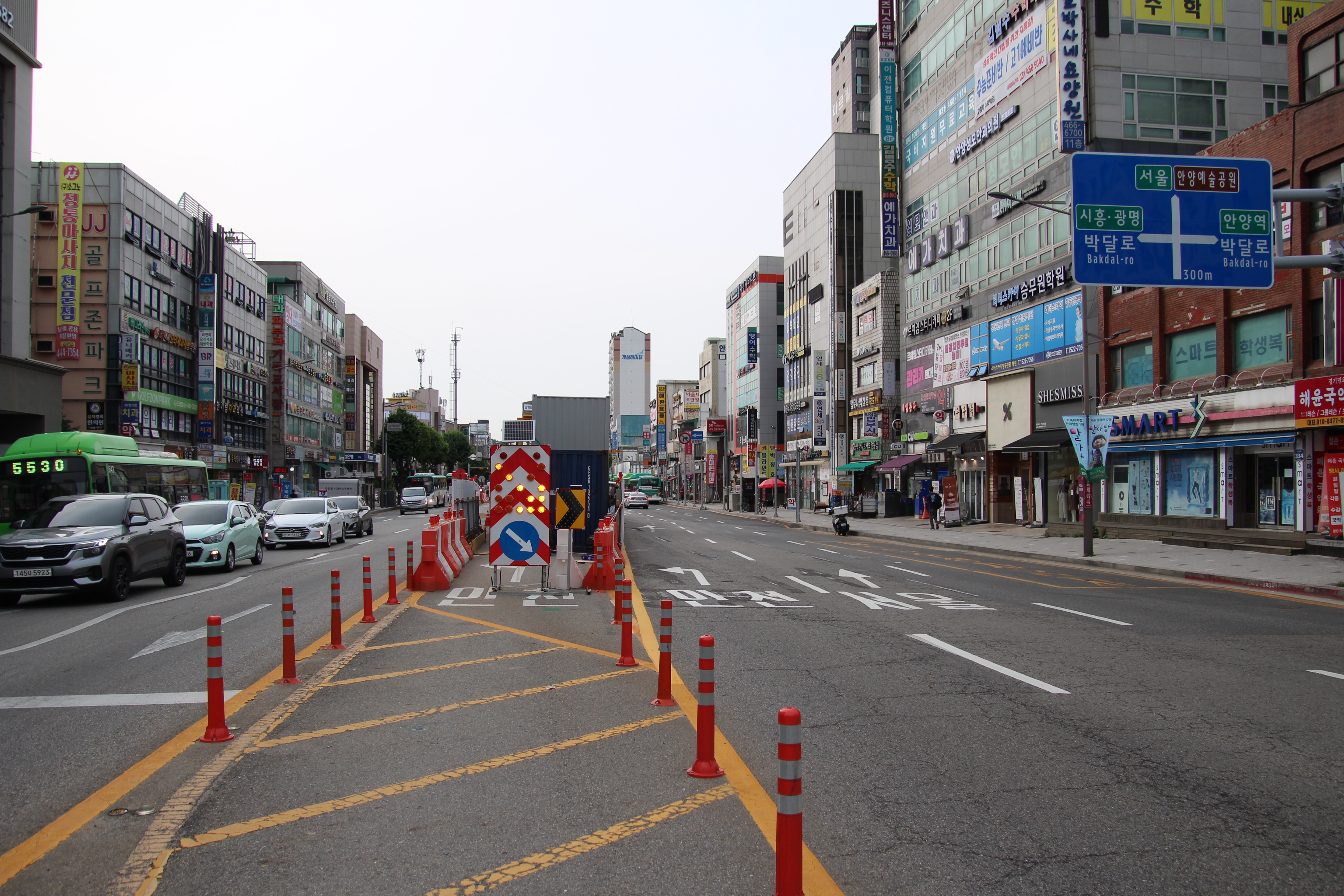 2023.06.19/ #도시기록 #안양 #공사중/ 안양 일번가는 중앙로 관통하는 월곶-판교선 지하철 공사로 차선은 즐어들고 버스정류장 이전하는 등 혼잡.