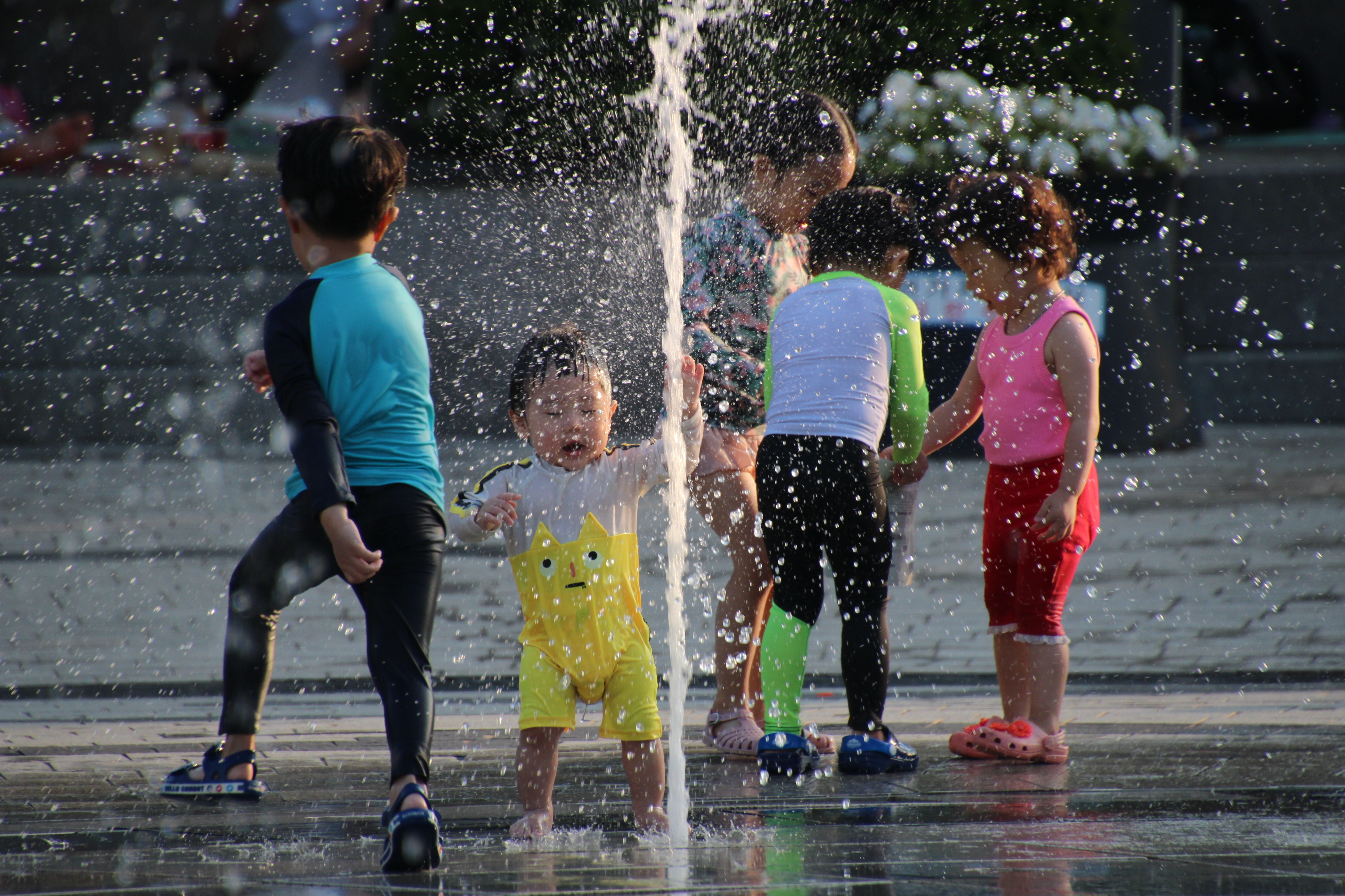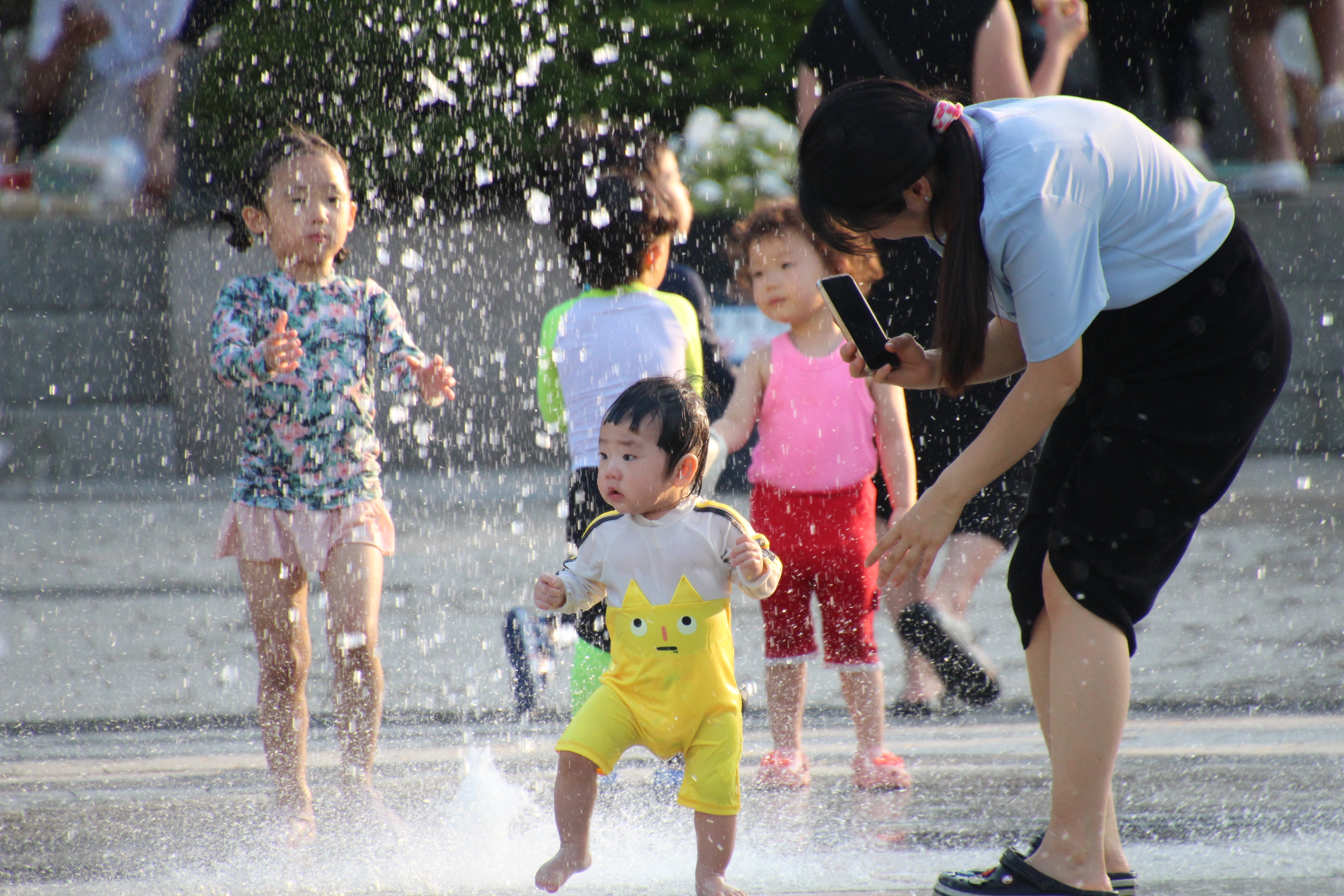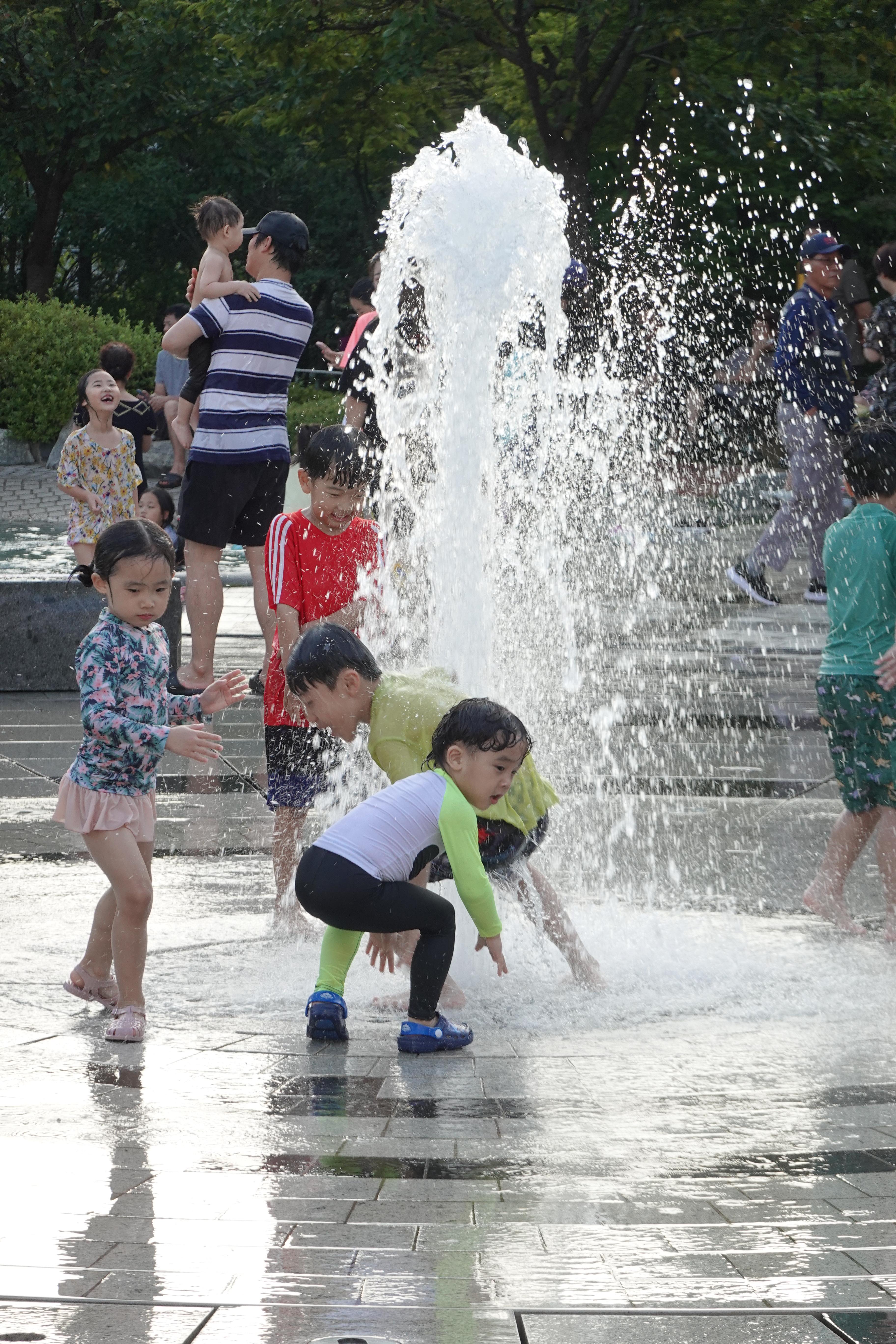 2023.07.01/ #도시기록 #삼덕공원/ 폭염 경보가 내려진 무더운날 삼덕공원 분수가 시원한 물줄기를 쏘아 올립니다. 바닥 분수는 어린이들에게 최고의 놀이터이지요