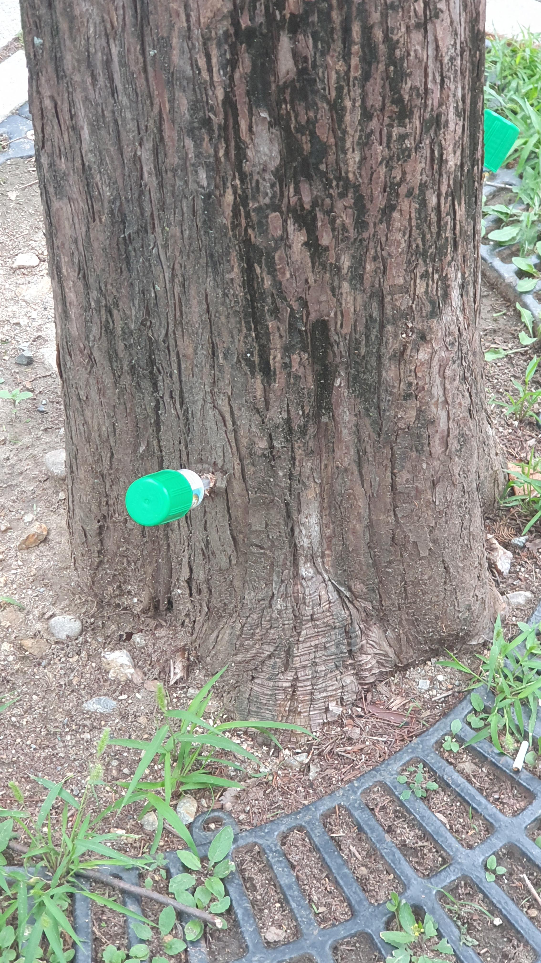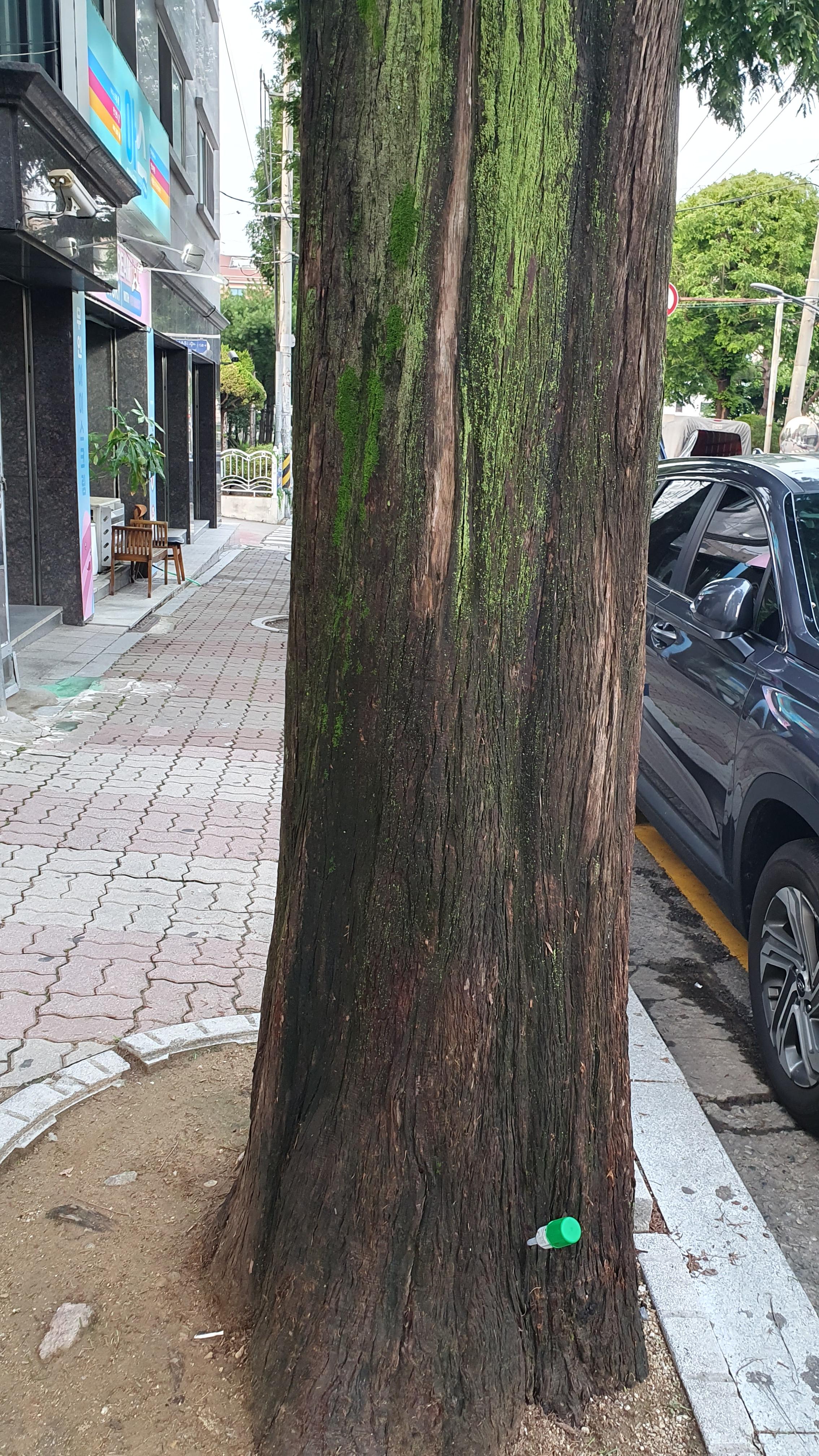 2023.07.01/ #도시기록 #가로수 #안양 #문예로 #수간주사/ 안양6동과 8동 경계인 안양 문예로. 아냥에서 가로수가 아름다운길중 한곳으로.양쪽 길가에 심어진 메타쉐콰이어가 하늘로 쭉쭉 뻗은것이 멋집니다. 그런데 이들 나무들이 어딘가 아픈 모양입니다. 최근 지나다보니 가로수 밑둥에 수간주사를 맞고 있네요. 약명을 보니 트리파워라 적혀있는데 자료를 찾아보니 늘푸른 활력과 내병성 강화, 영양결핍으로 인한 생리병 예방. 소나무, 대형목,특수목,보호수에 많이 사용되는 영양제입니다. 나무 대부분이 기둥에 초록의 이끼로 잔뜩 덮여 있어 쳇GPT에 물어보니 메타쉐콰이어가 원래 이끼가 많이 끼는 나무라 설명하네요.