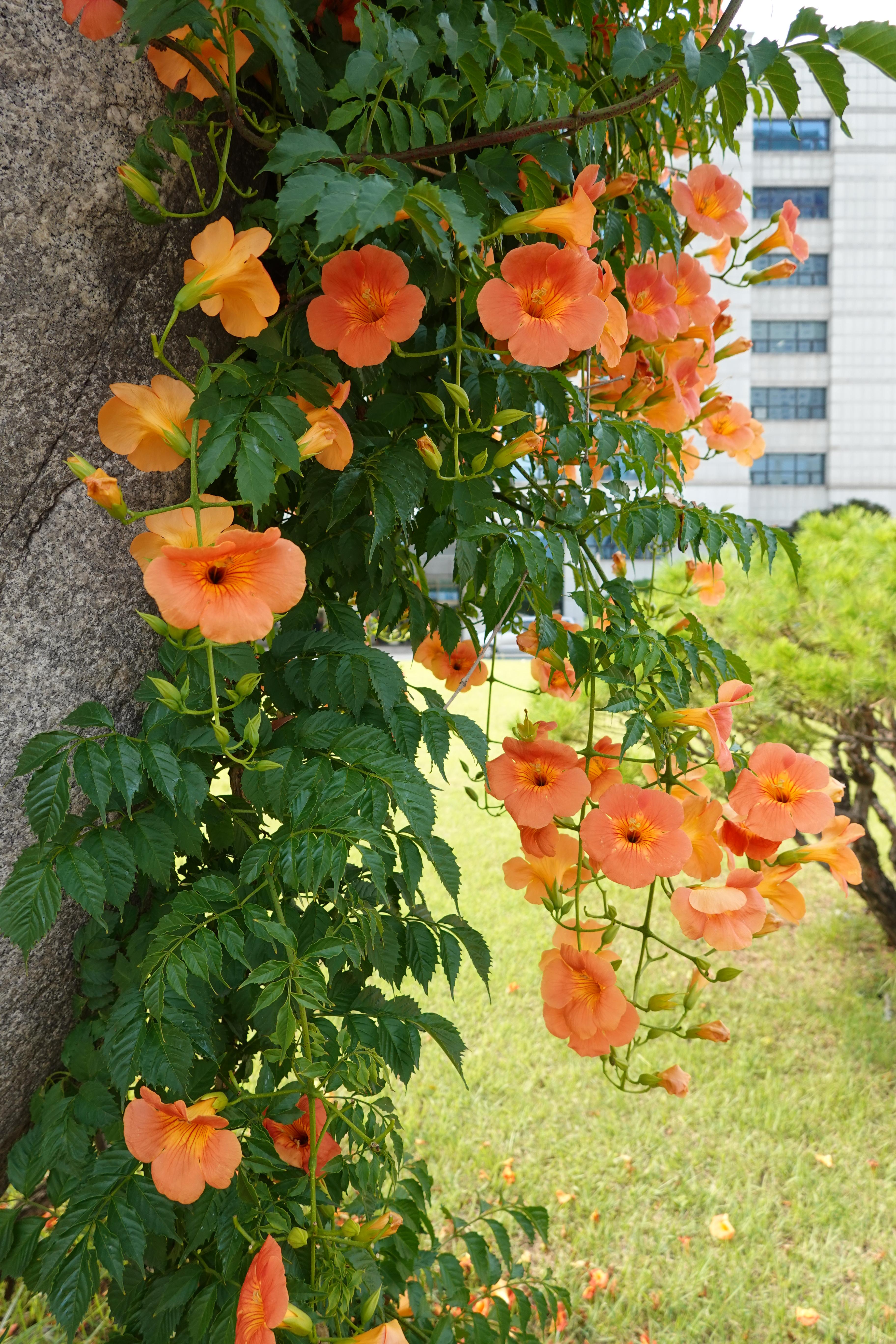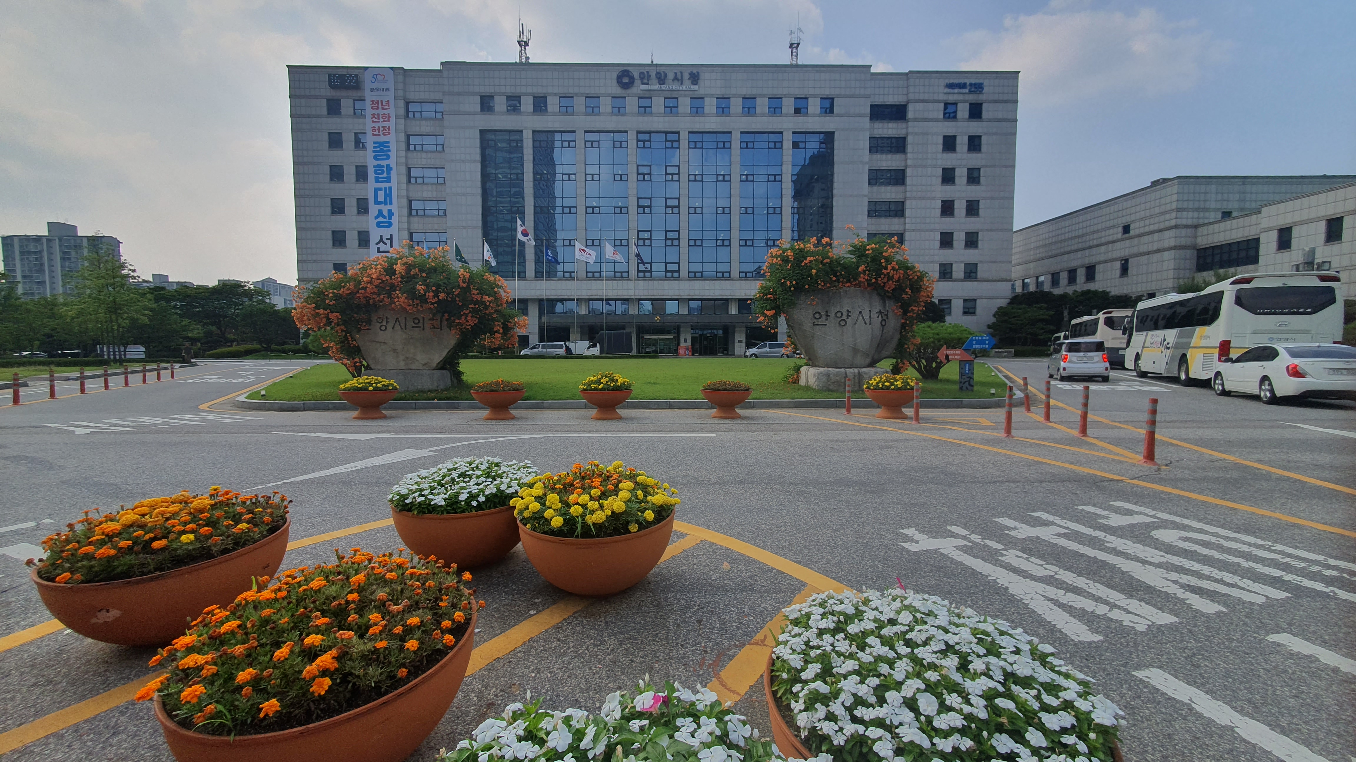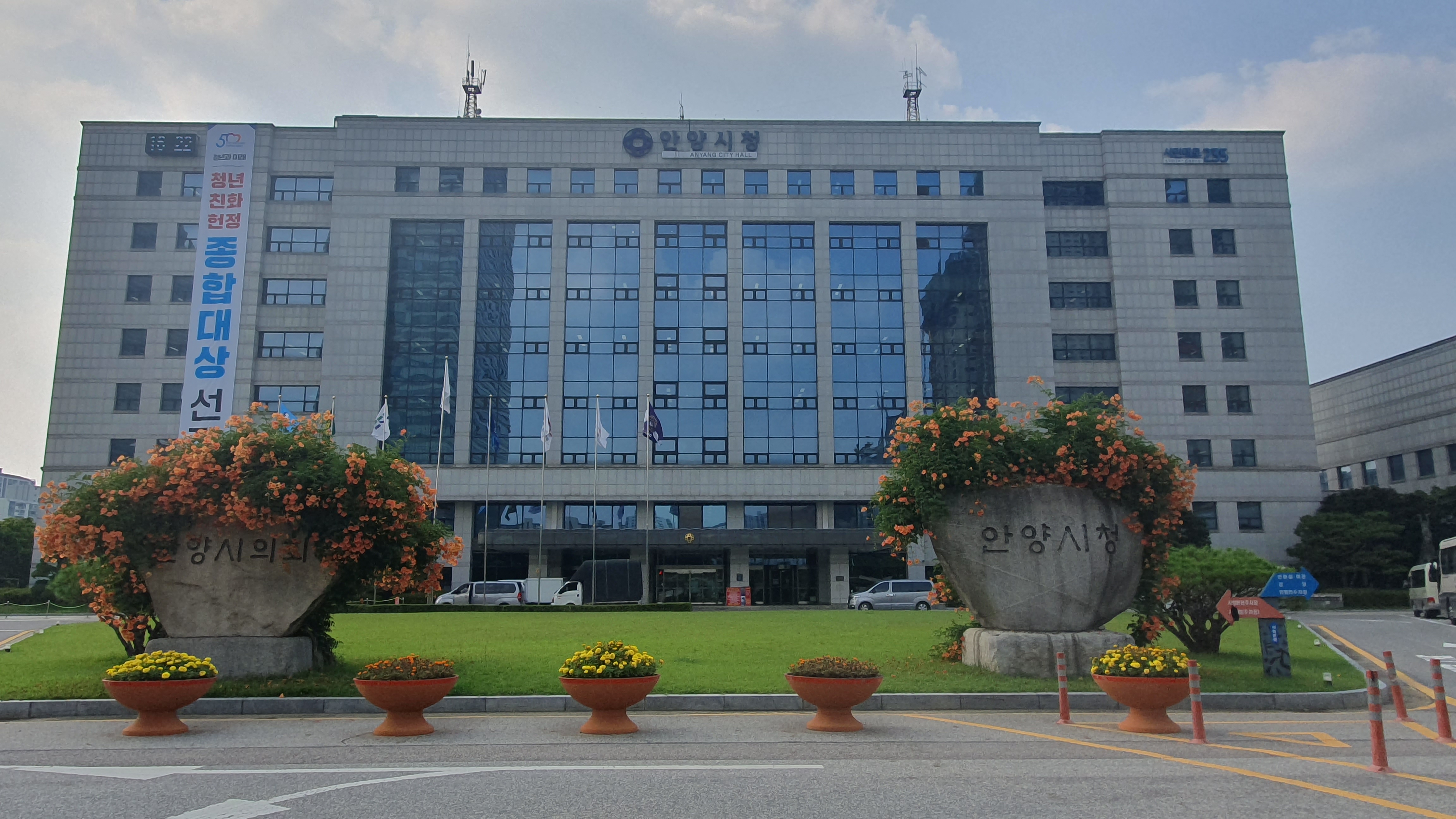 2023.07.03/ #도시기록 #안양시청 #눙소화 #여름꽃/ 매년 능소화가 멋지게 피는 곳 안양시청앞 마당의 시청.시의회 표지석