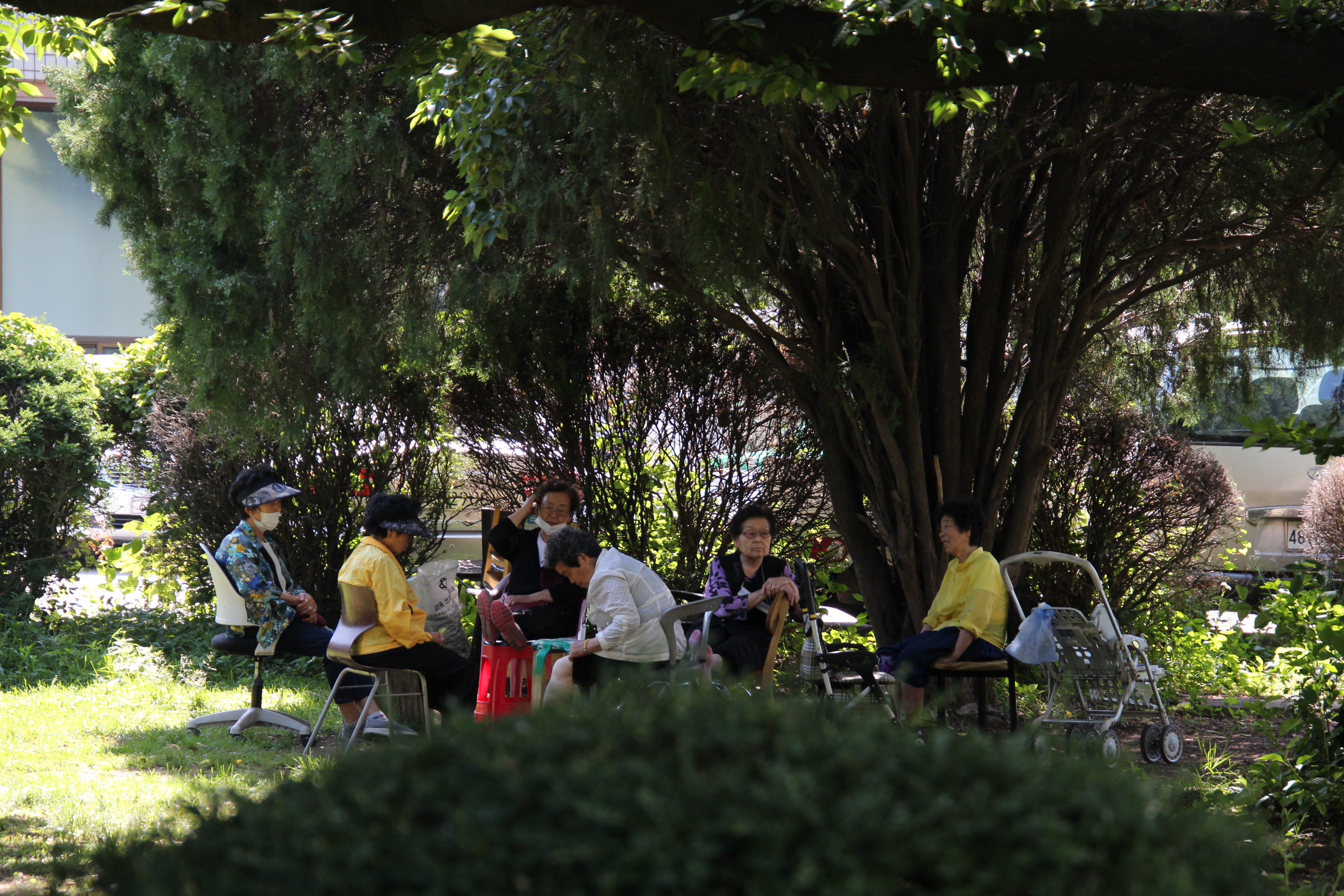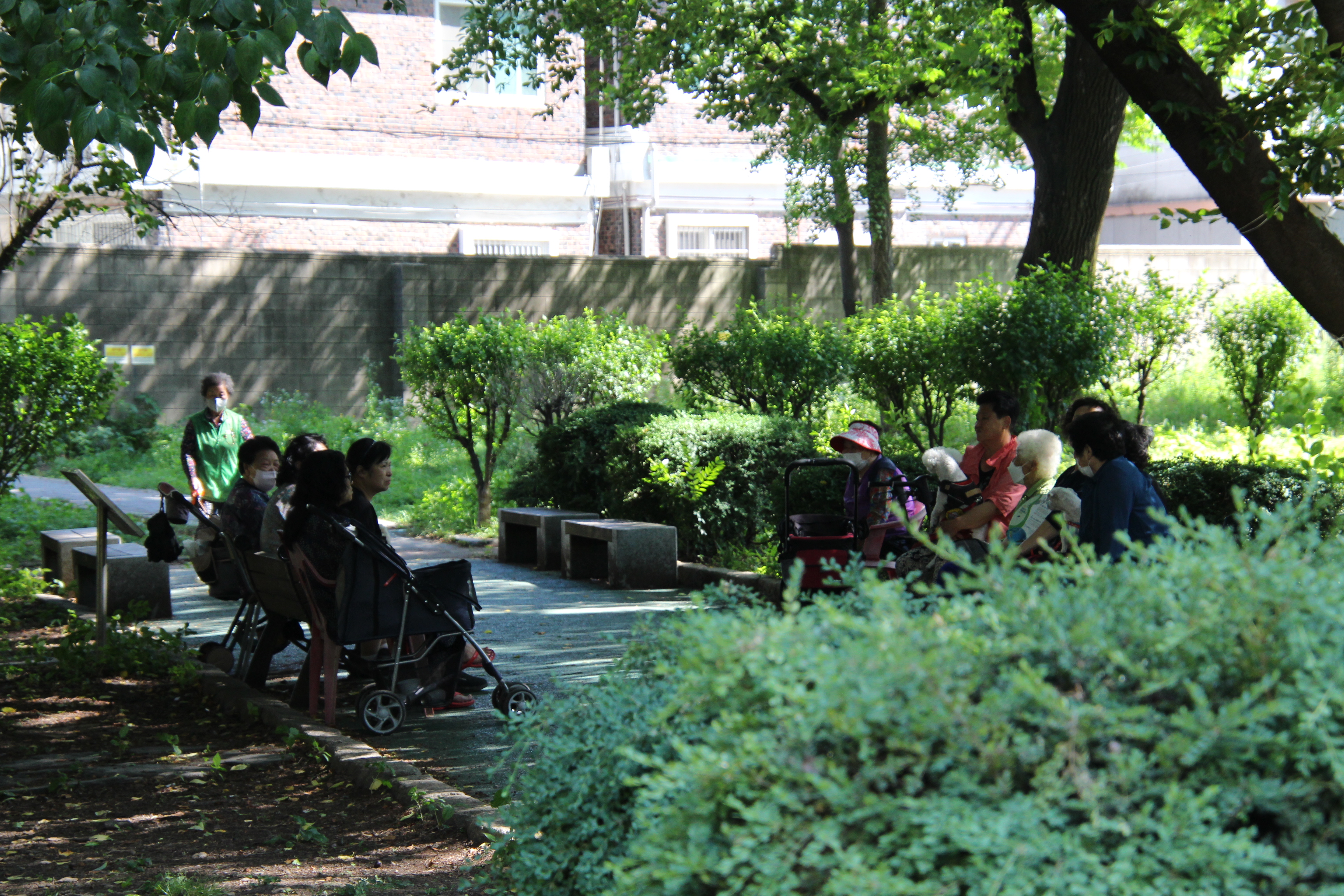 2023.07/ #도시기록 #안양6동 #옛검역원 #도심정원/ 햇살 뜨거운 찜통더위지만 그늘진 곳에는 사람들이 있다. 도심숲의 소중함. 안양시청을 이전하려는곳.