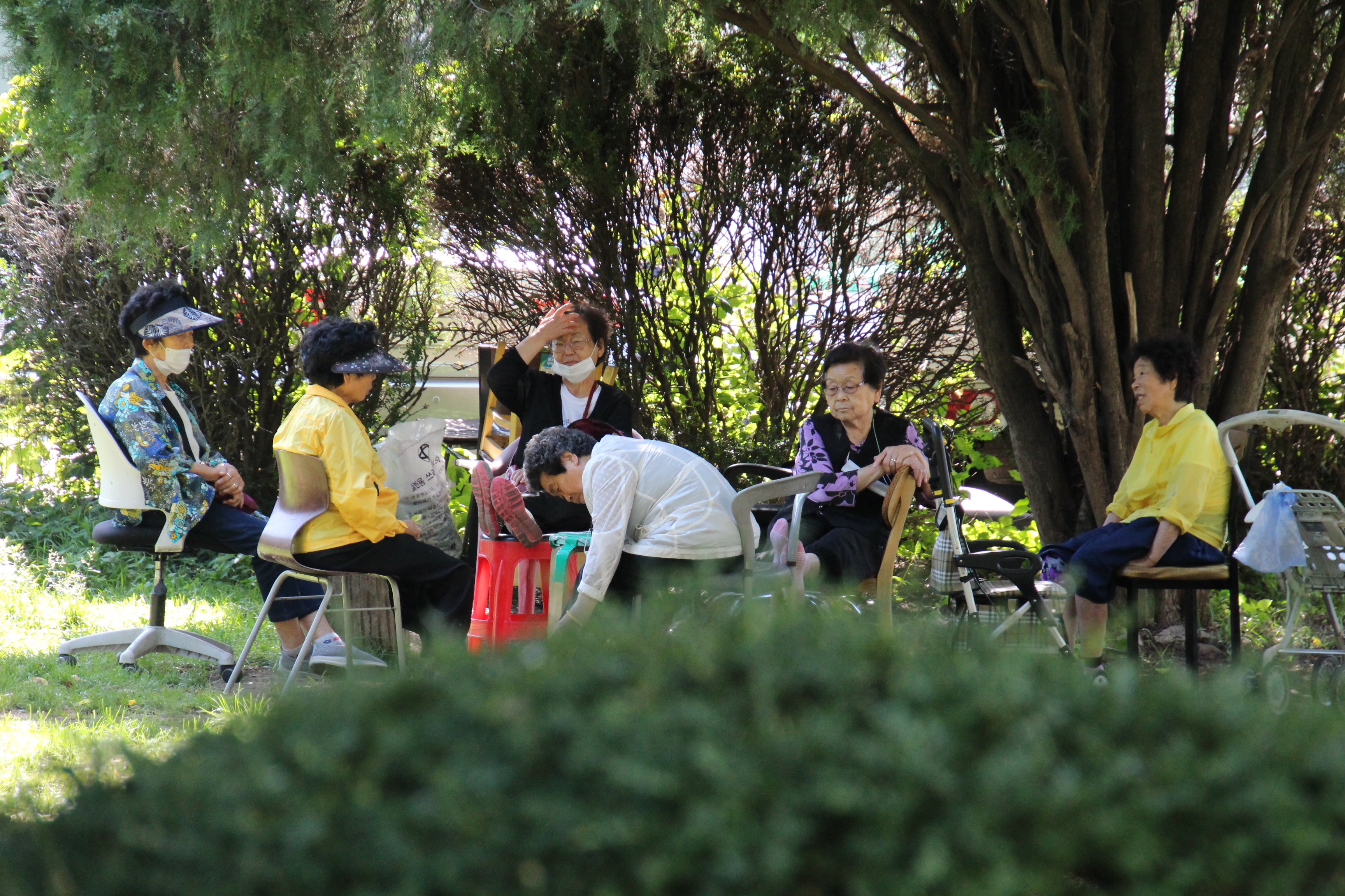 2023.07/ #도시기록 #안양6동 #옛검역원 #도심정원/ 햇살 뜨거운 찜통더위지만 그늘진 곳에는 사람들이 있다. 도심숲의 소중함. 안양시청을 이전하려는곳.