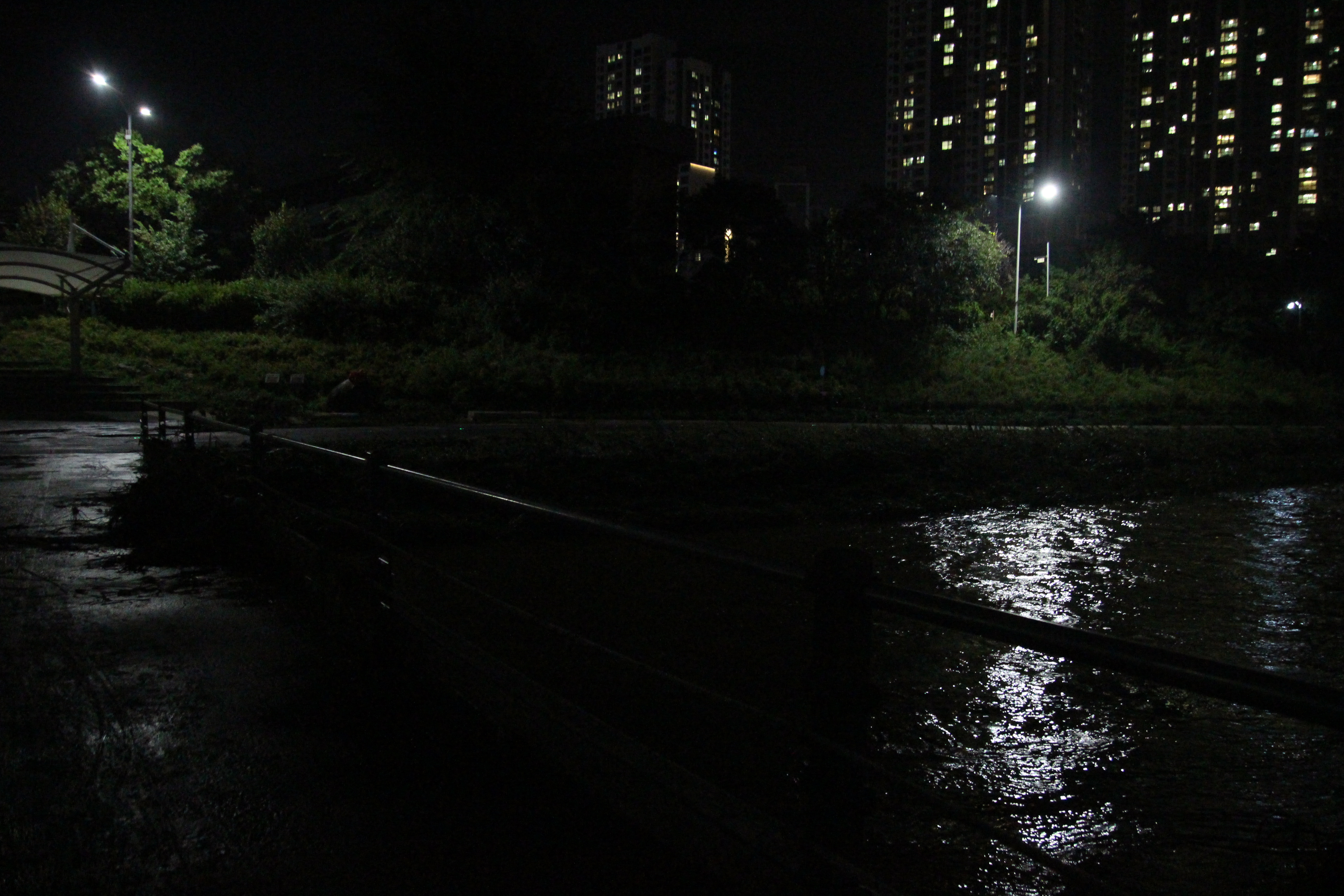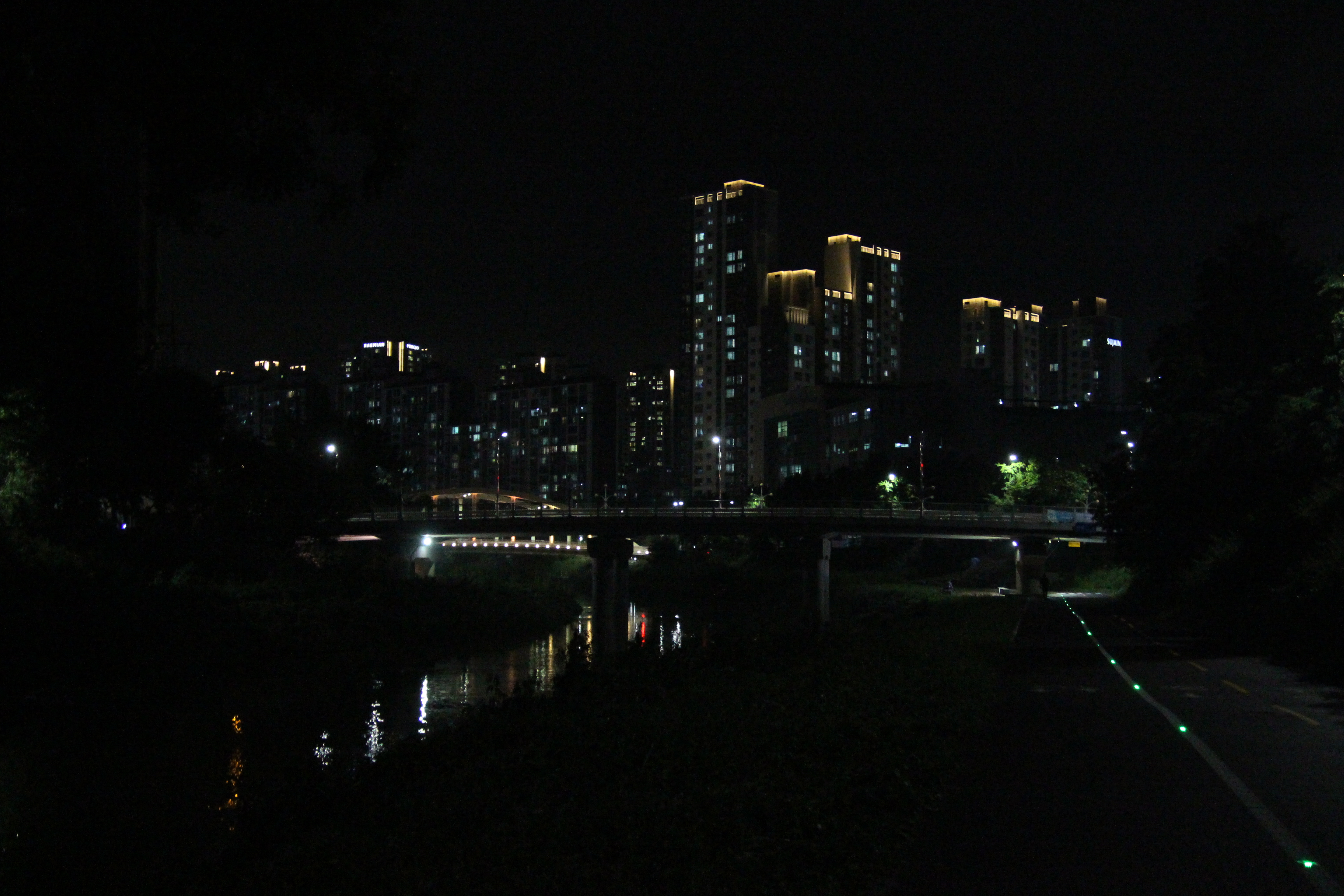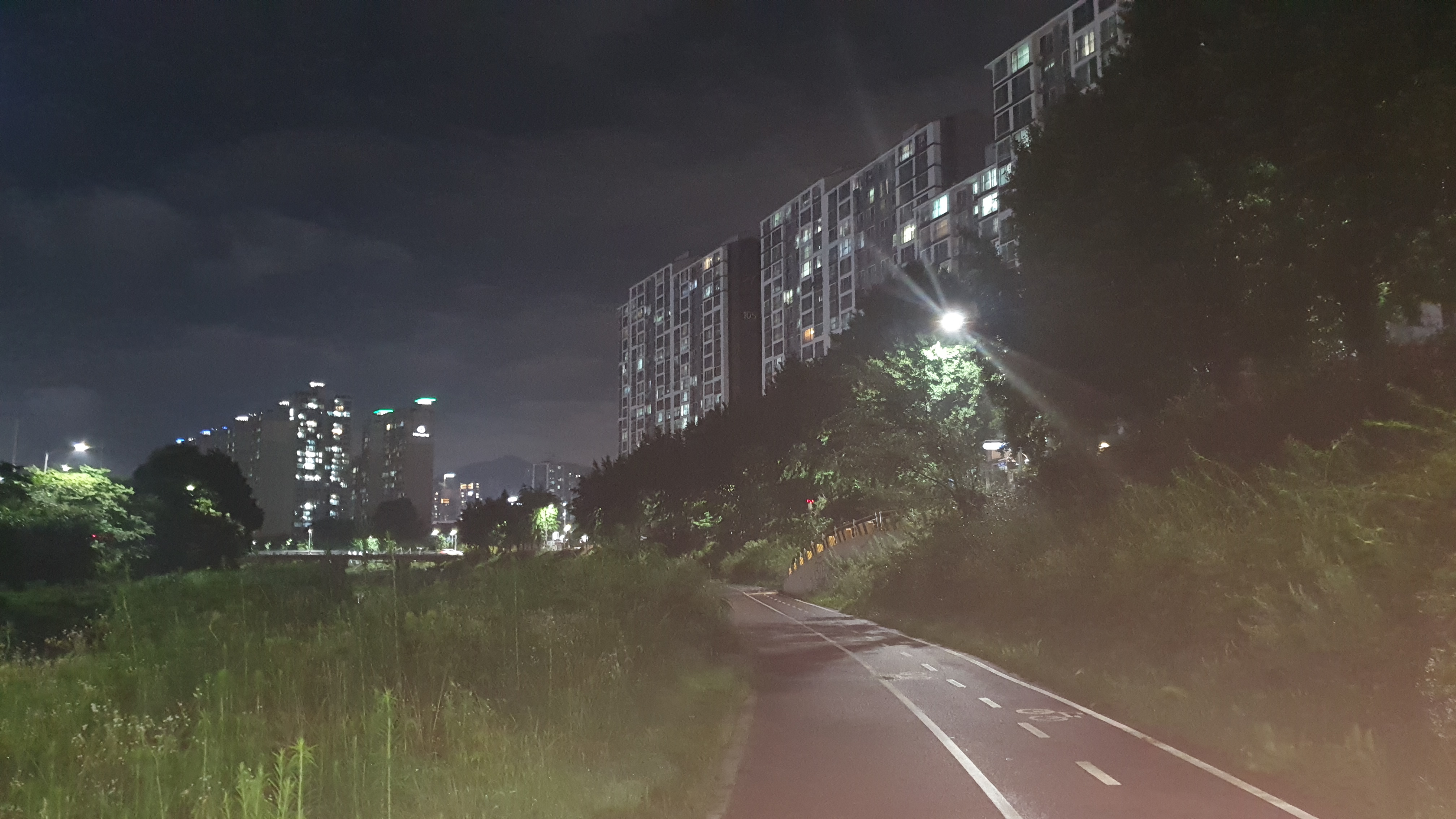 2023.07.11/ #도시기록 #안양천 / 전파교-서로교-덕천교-쌍개울 구간 안양천 동로에서 본 밤풍경. 밤은 밤답게 적당히 어두워야 한다. 그레야 동식물들도 그들만의 시간을 갖지 않을까 싶다.